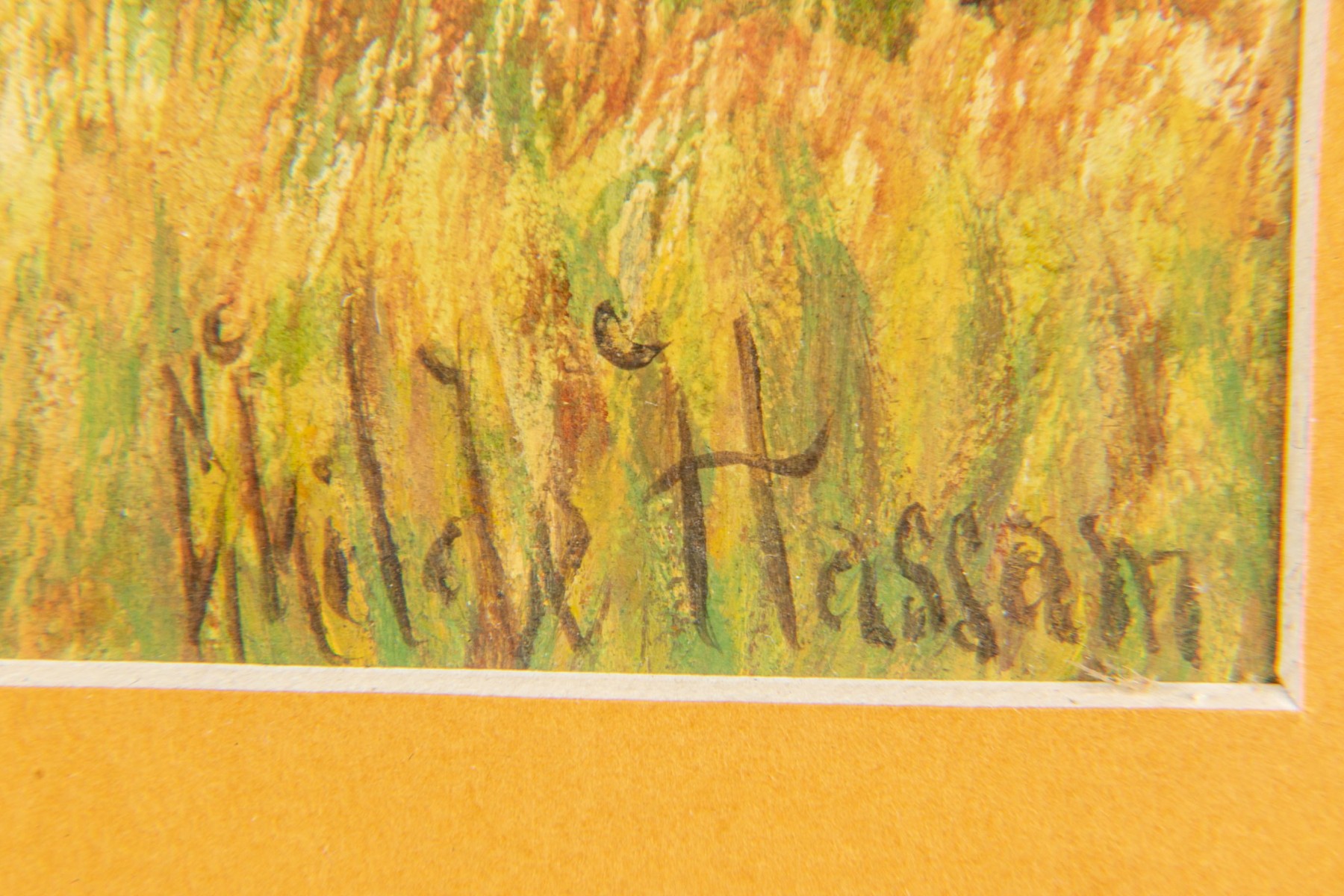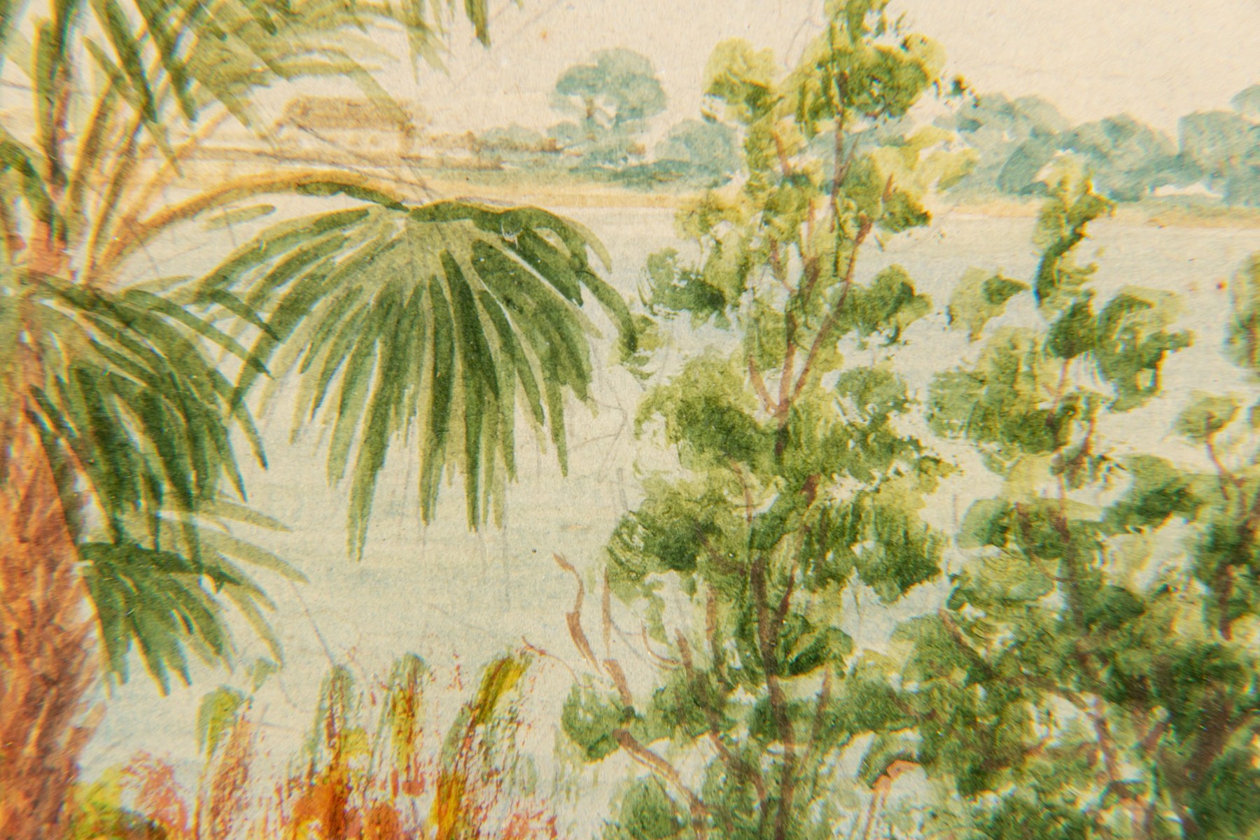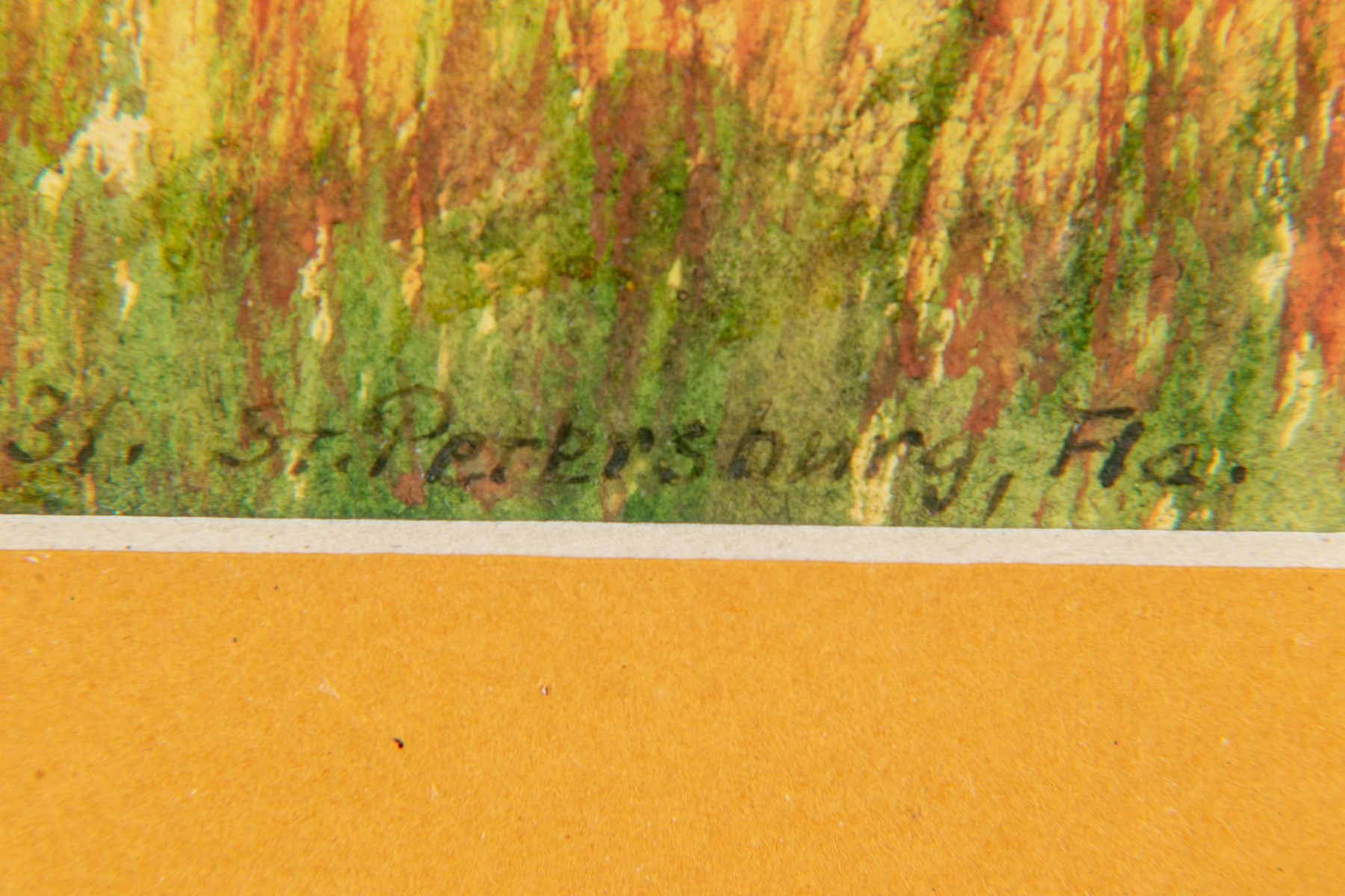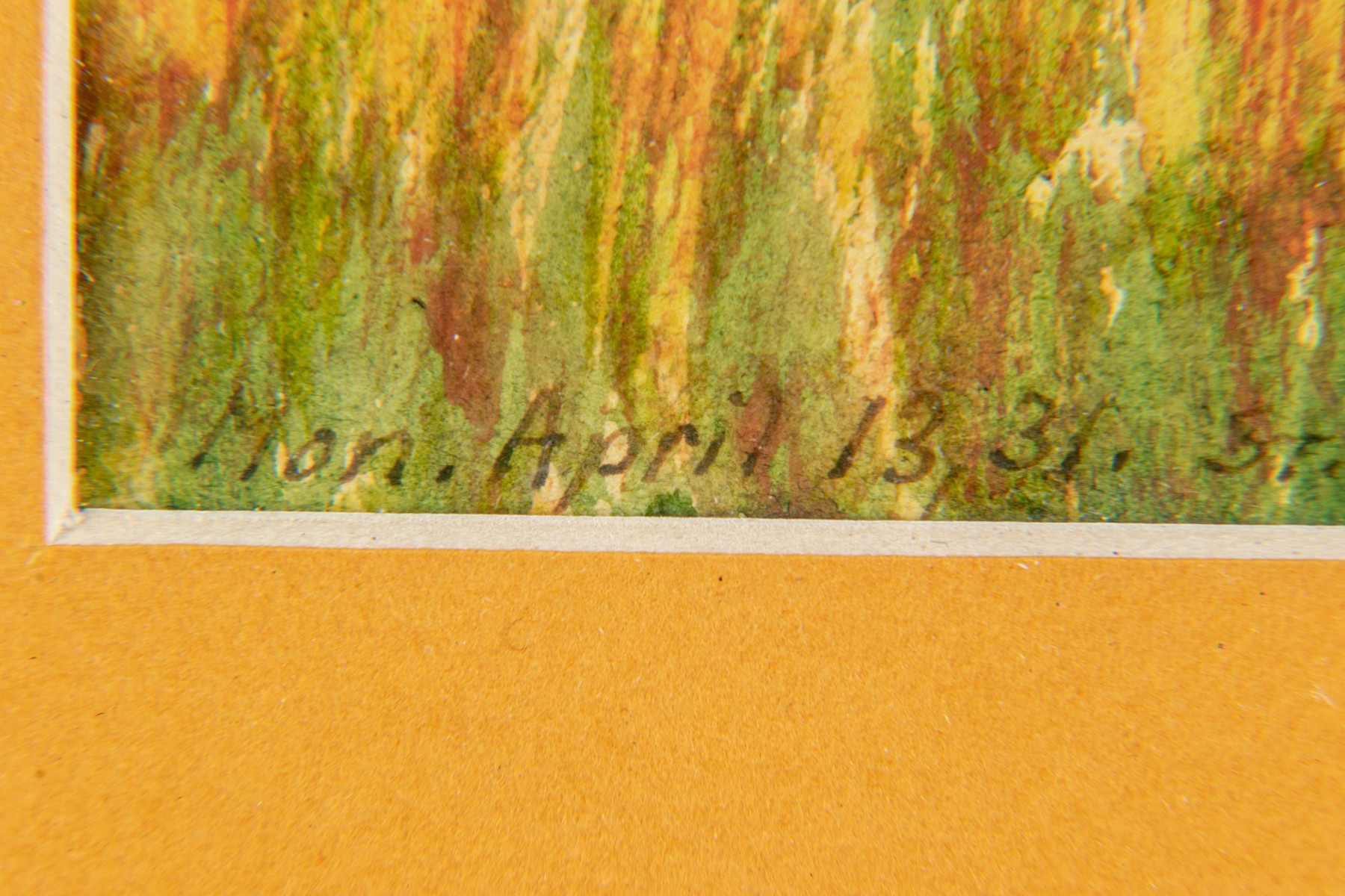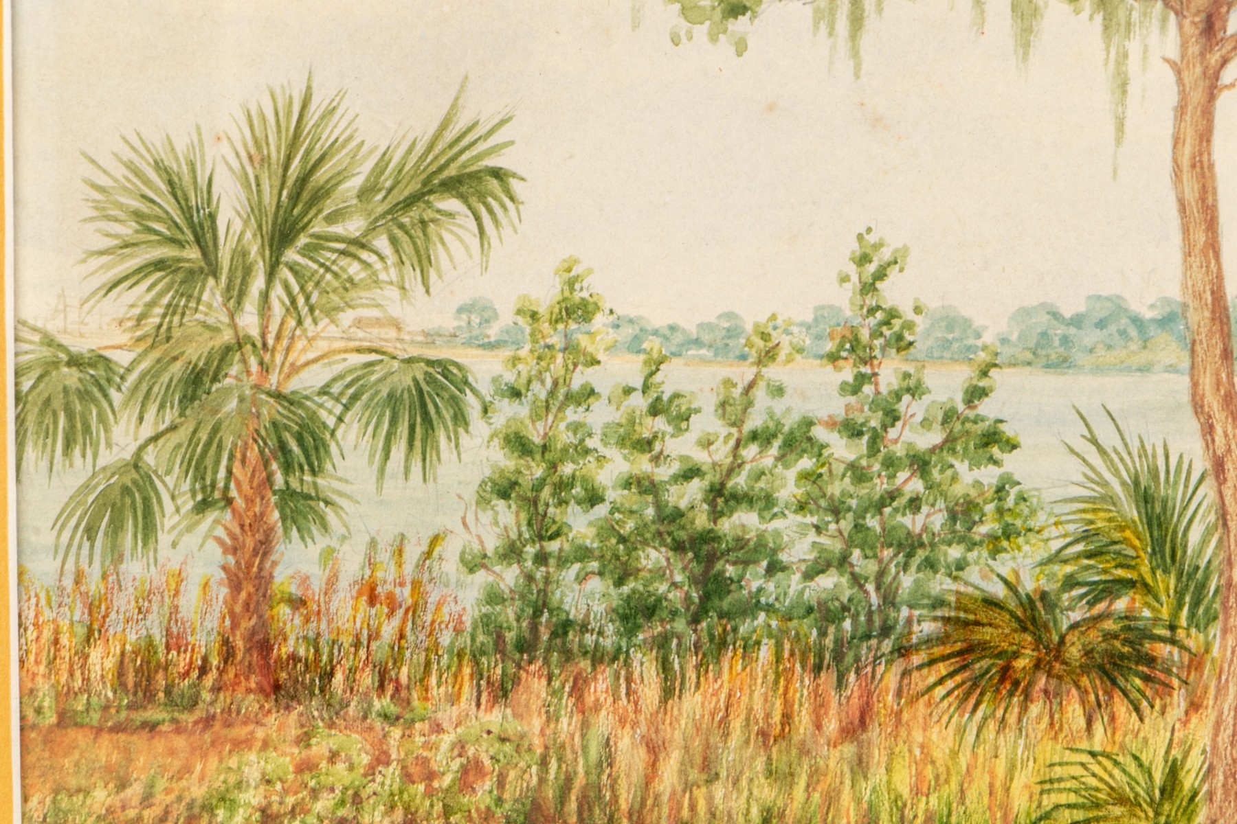 Condition: minor sporadic foxing, discoloration to work noting a 1/4" sunning difference to left side, trapped particle on mat under glass left side.