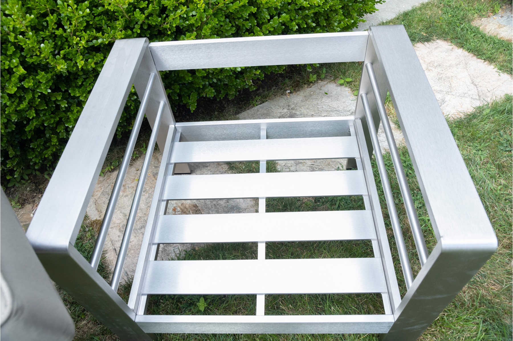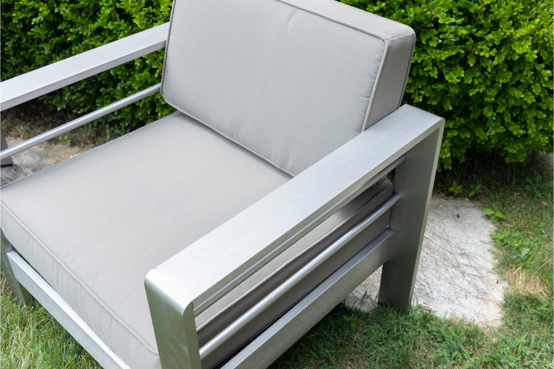Note: Cushions are sun and water resistant. Avoid prolonged exposure to sunlight and extreme weather conditions