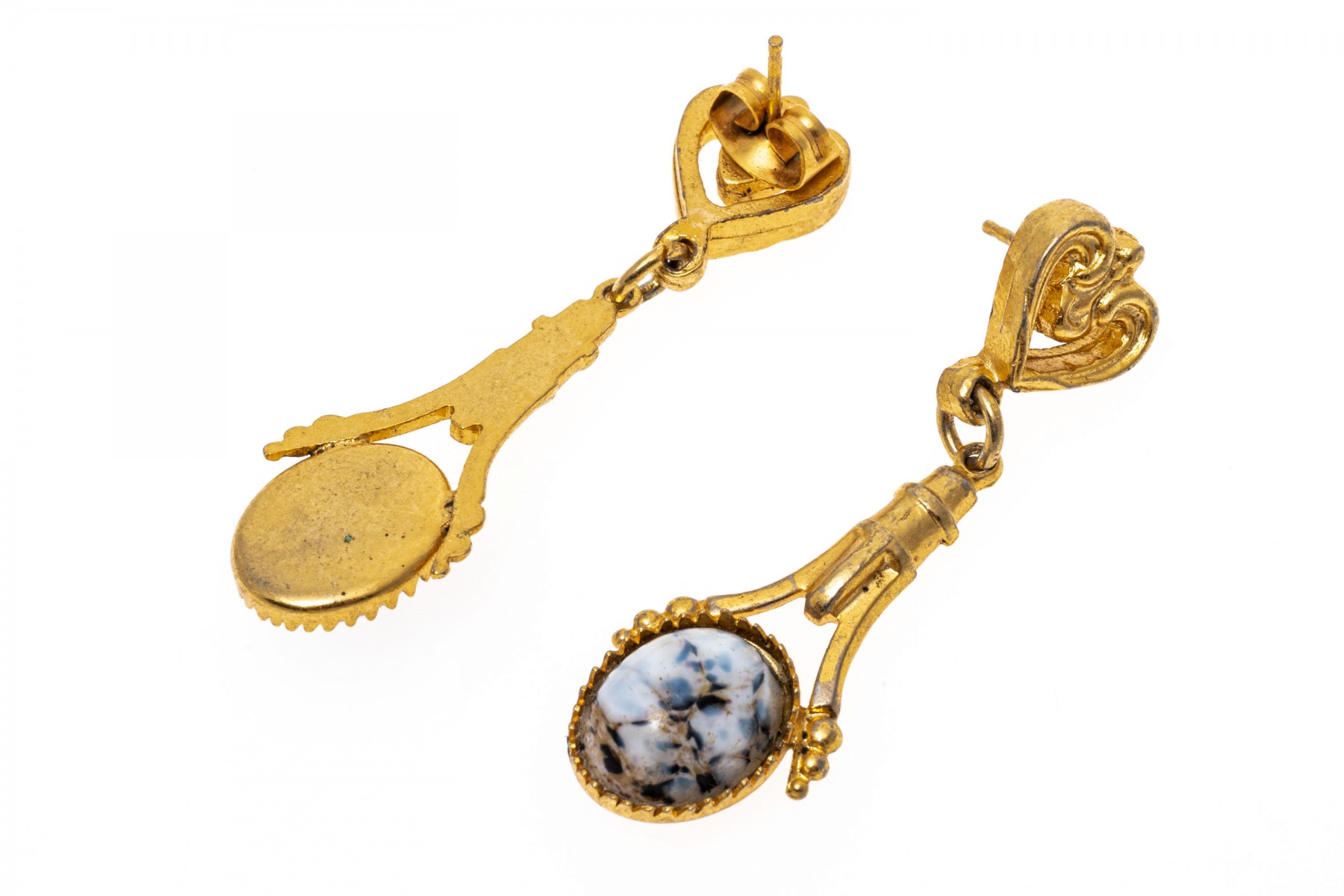Condition: Wear and tarnishing. The clutch backings are missing.