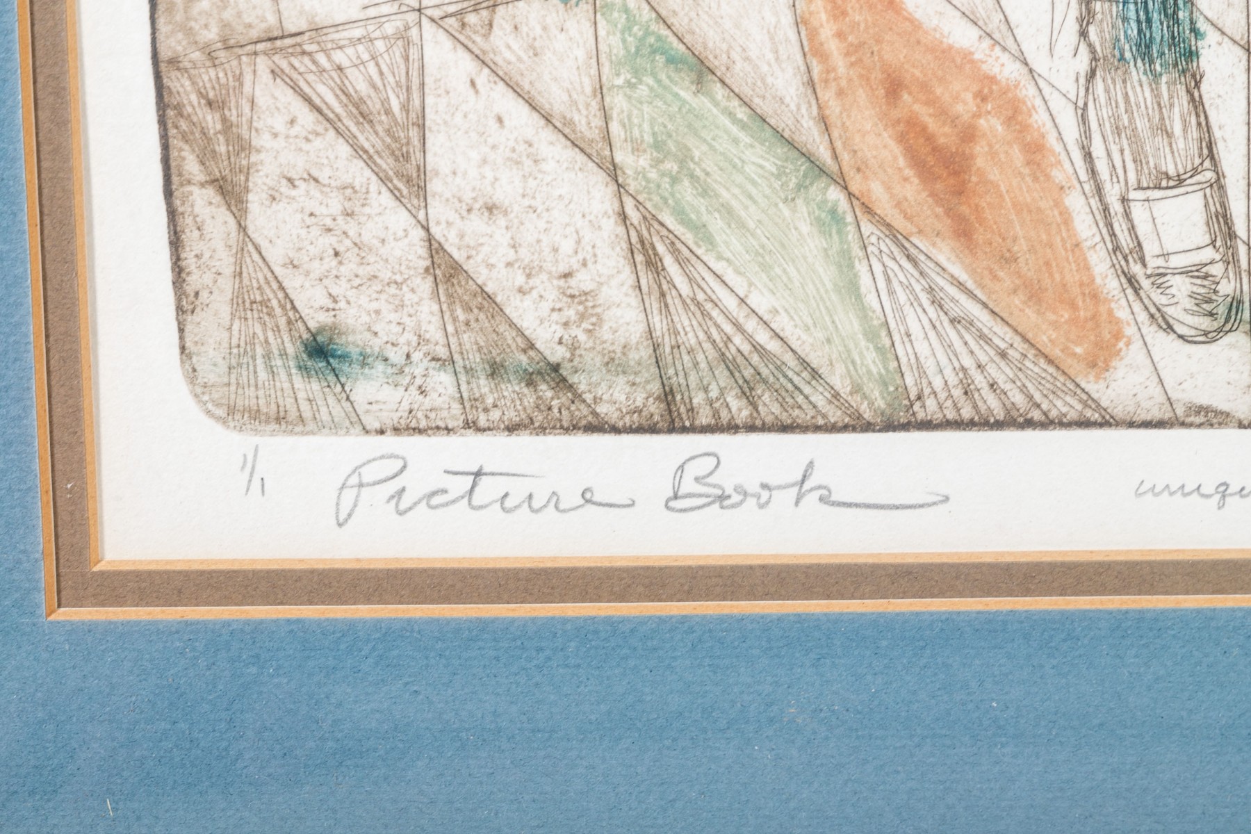 Colored Etching titled “Picture Book” pencil signed lower right, pencil signed 1/1, titled "Unique Color."