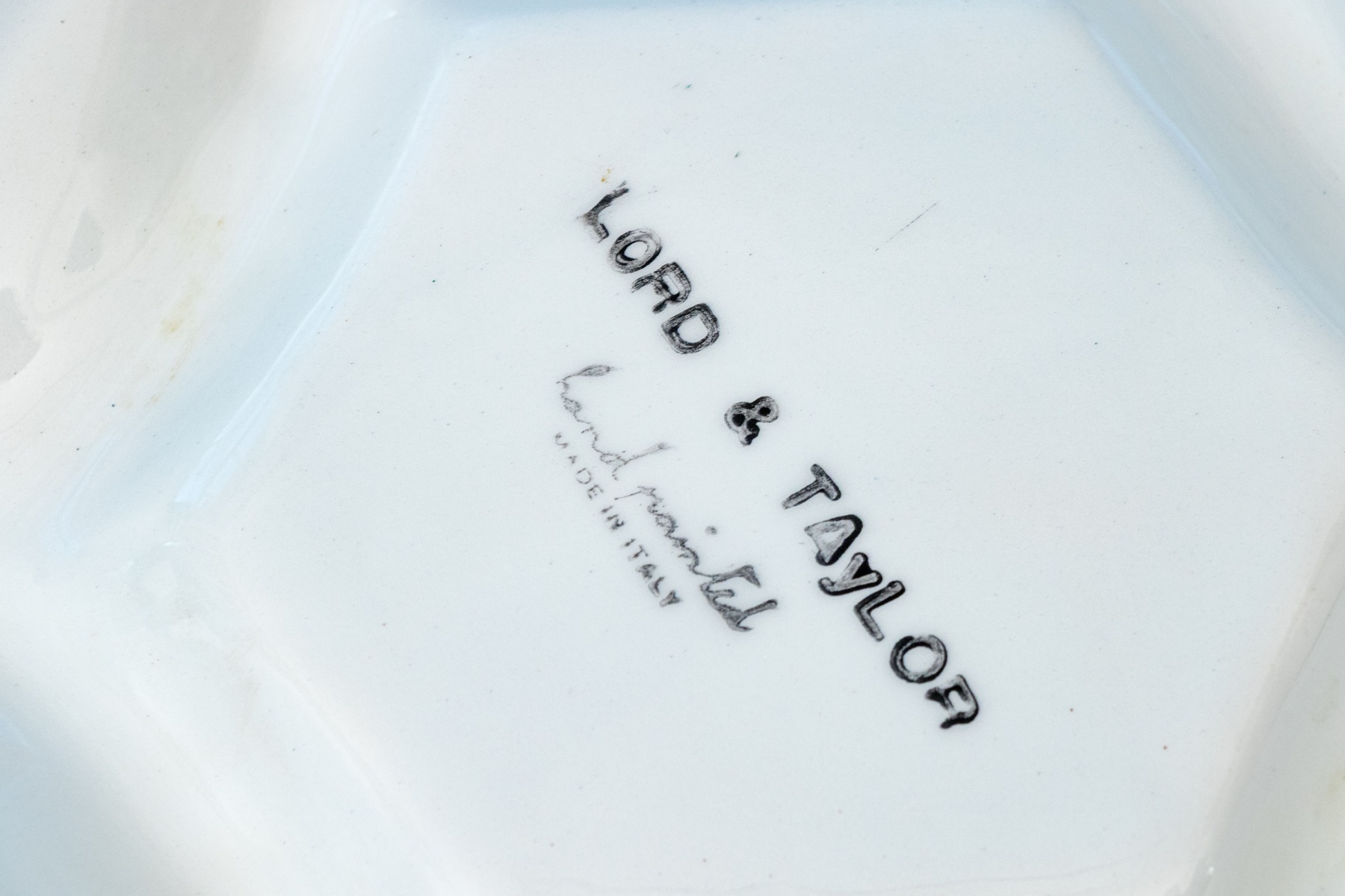 Marked Lord & Taylor, Hand-Painted and Made in Italy underneath.