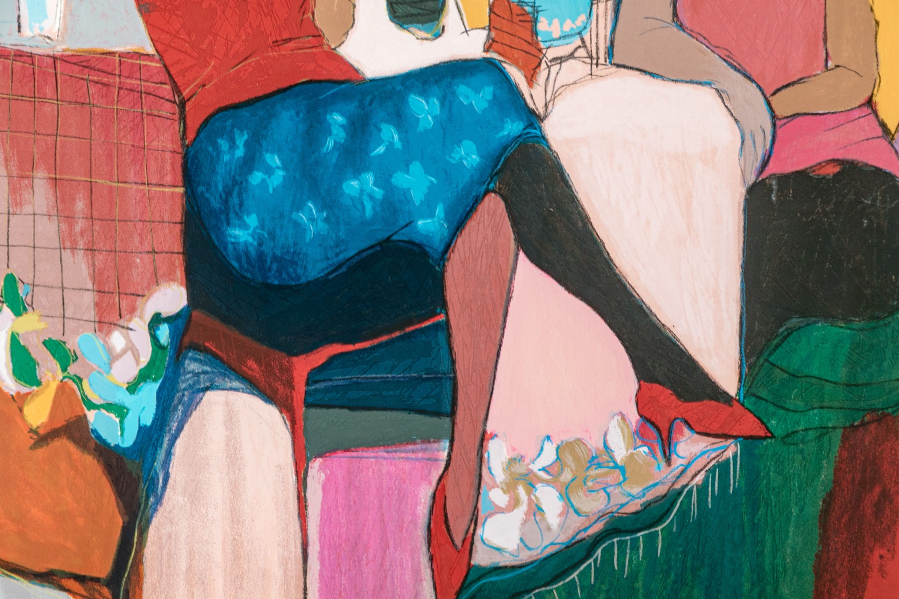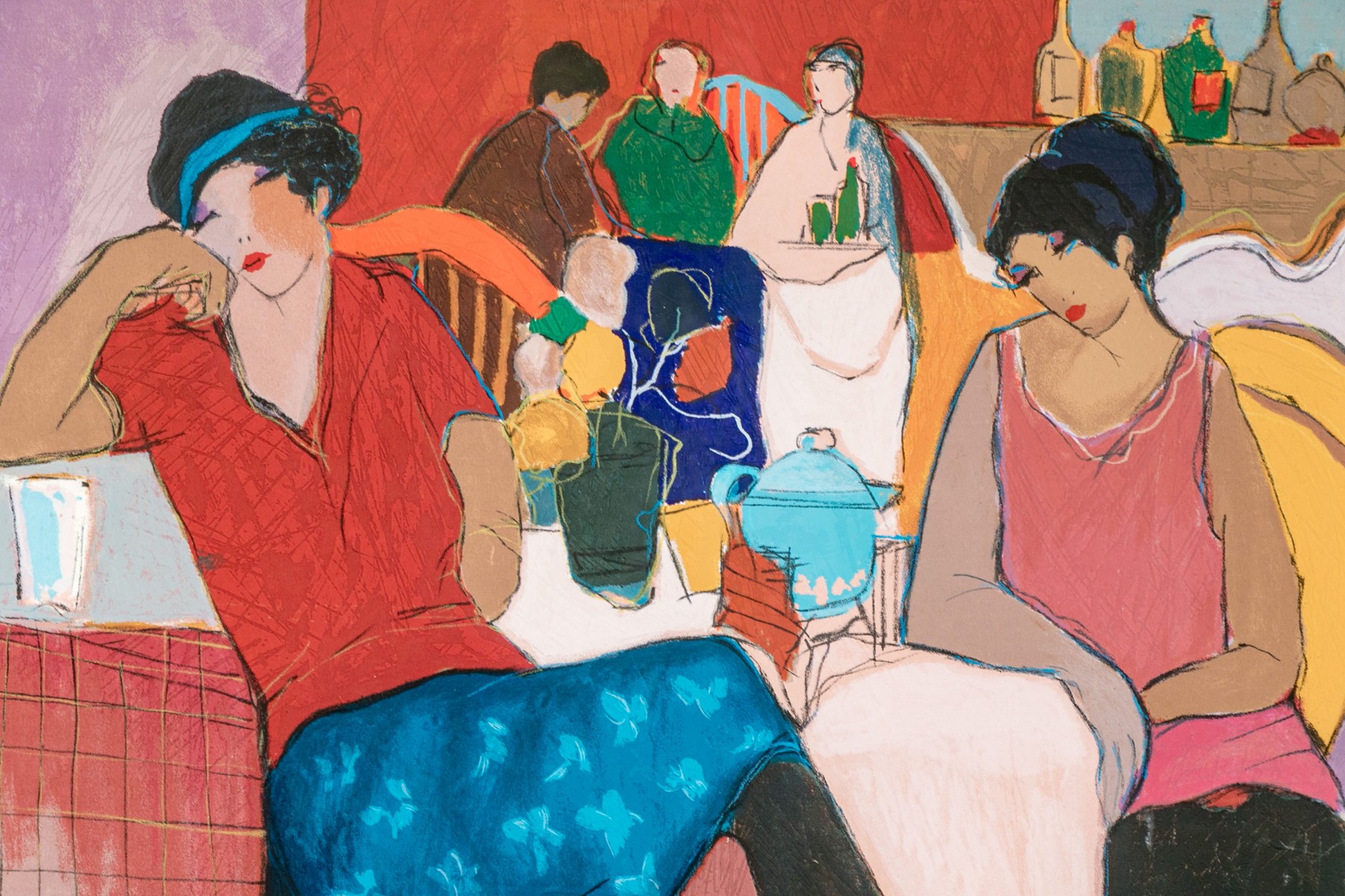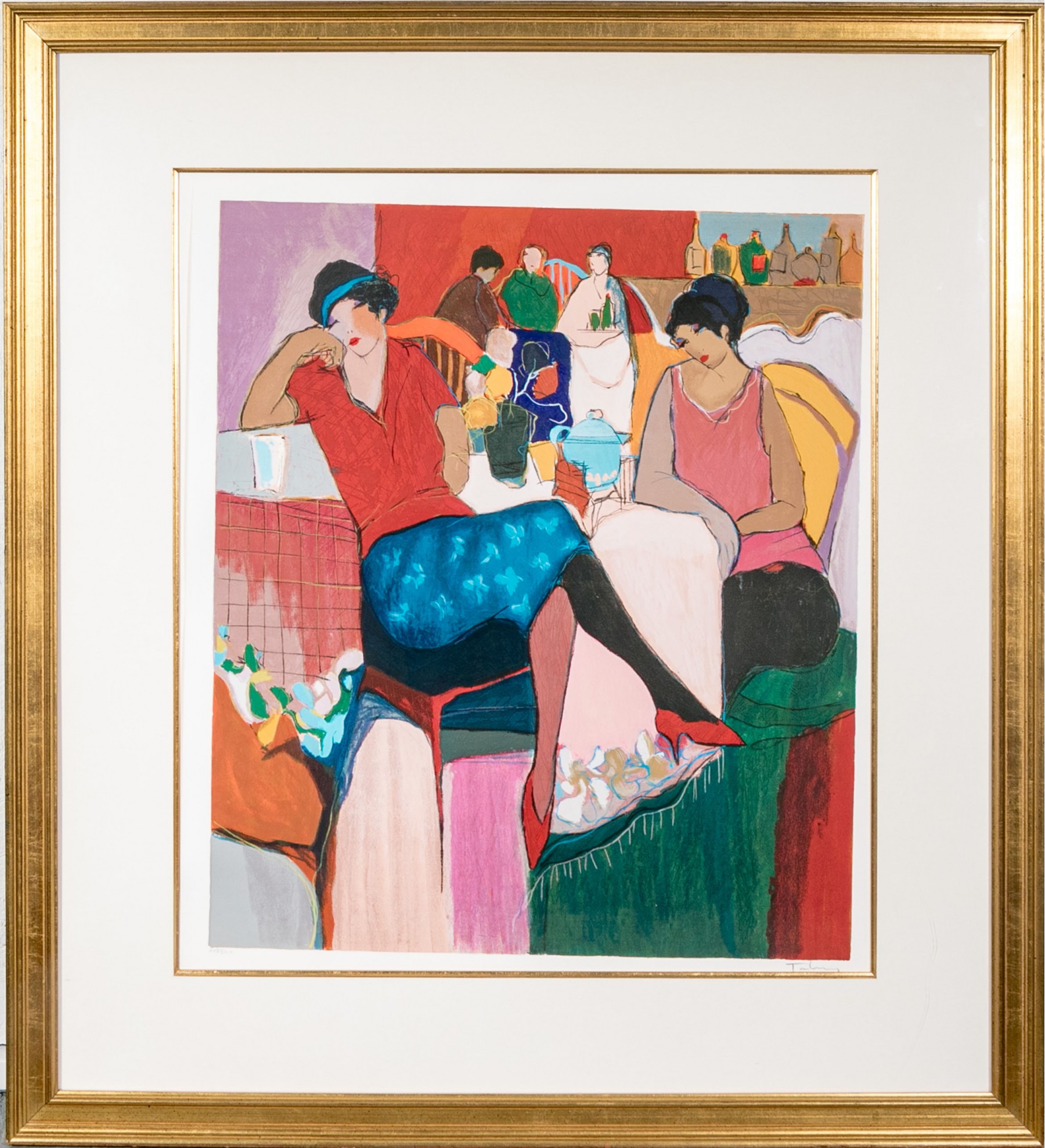 Label on verso. A wonderful large Parisian cafe scene with beauties. Pencil signed lower right, pencil numbered lower left 248/300. Custom matted and gilt framed with glass.