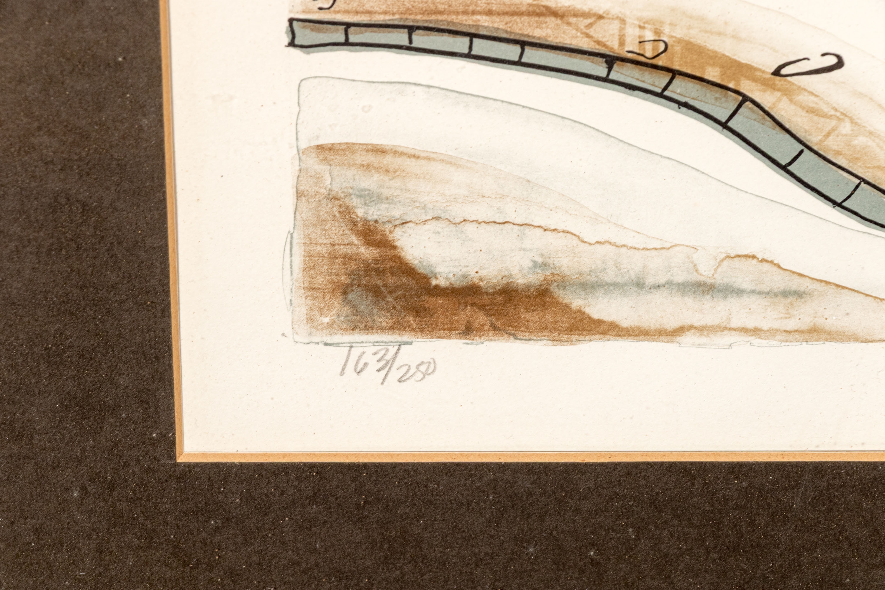 Pencil signed lower right and numbered 163/250 lower left trim. Custom framed with black mat, black frame and glazed.