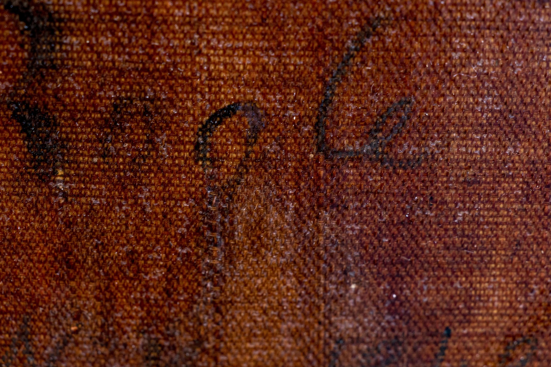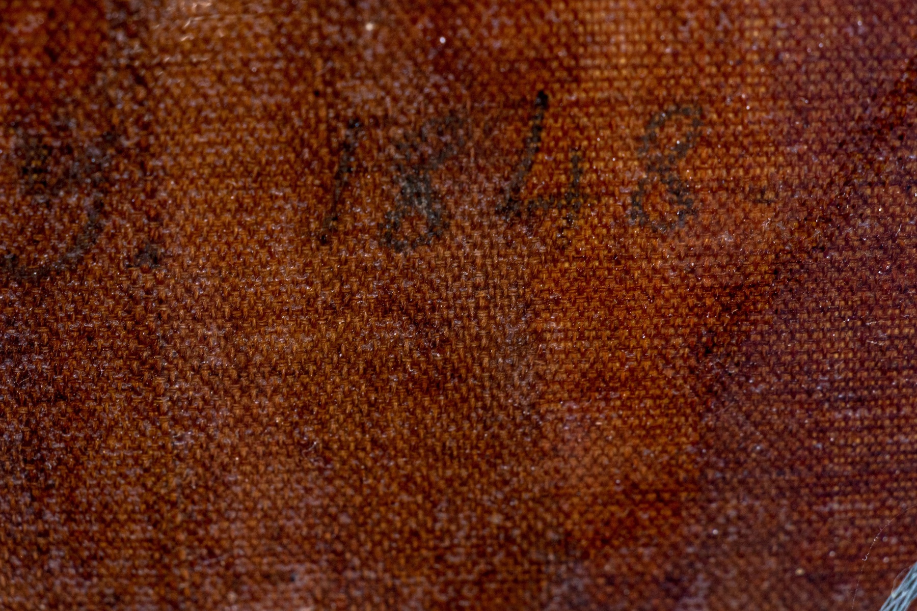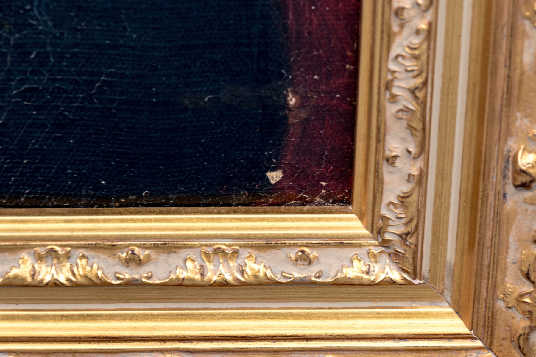 Fine craquelure and some small spots of paint loss but overall still presents very handsomely. Lined.
