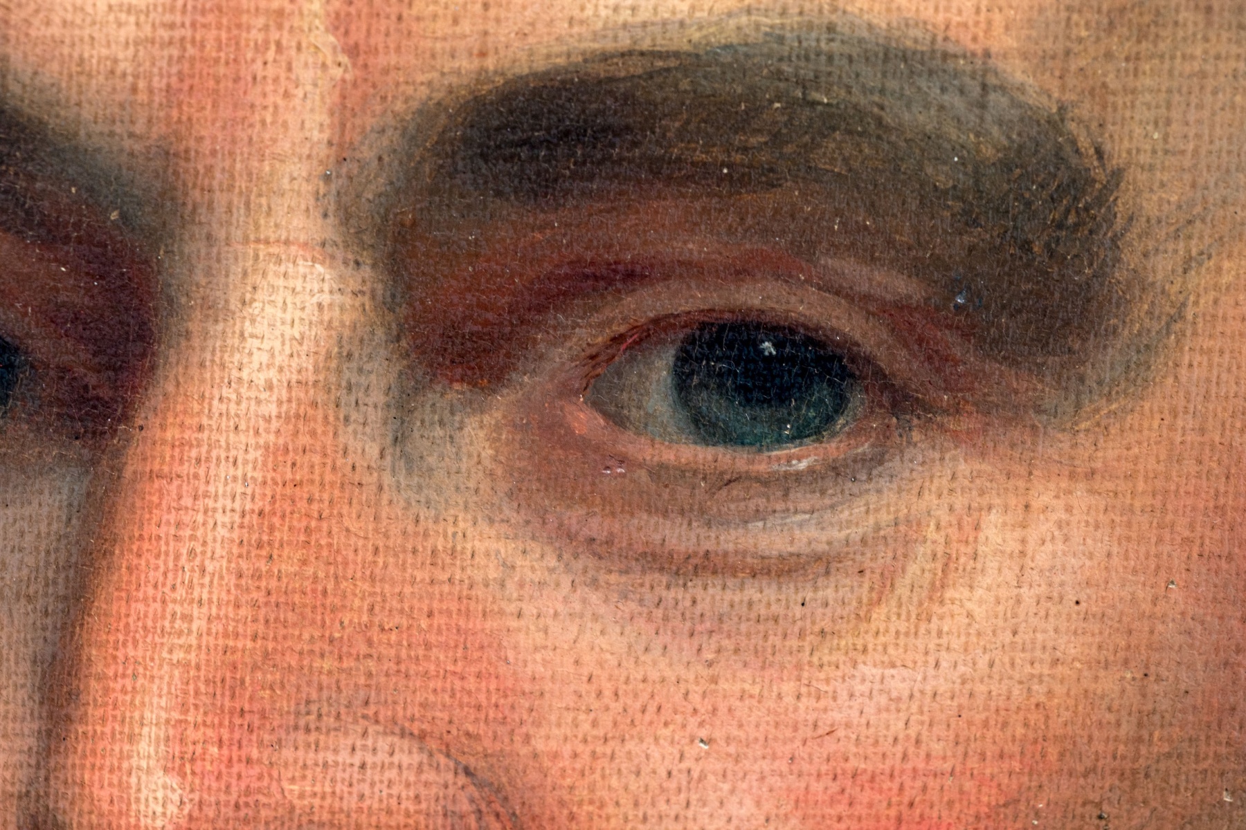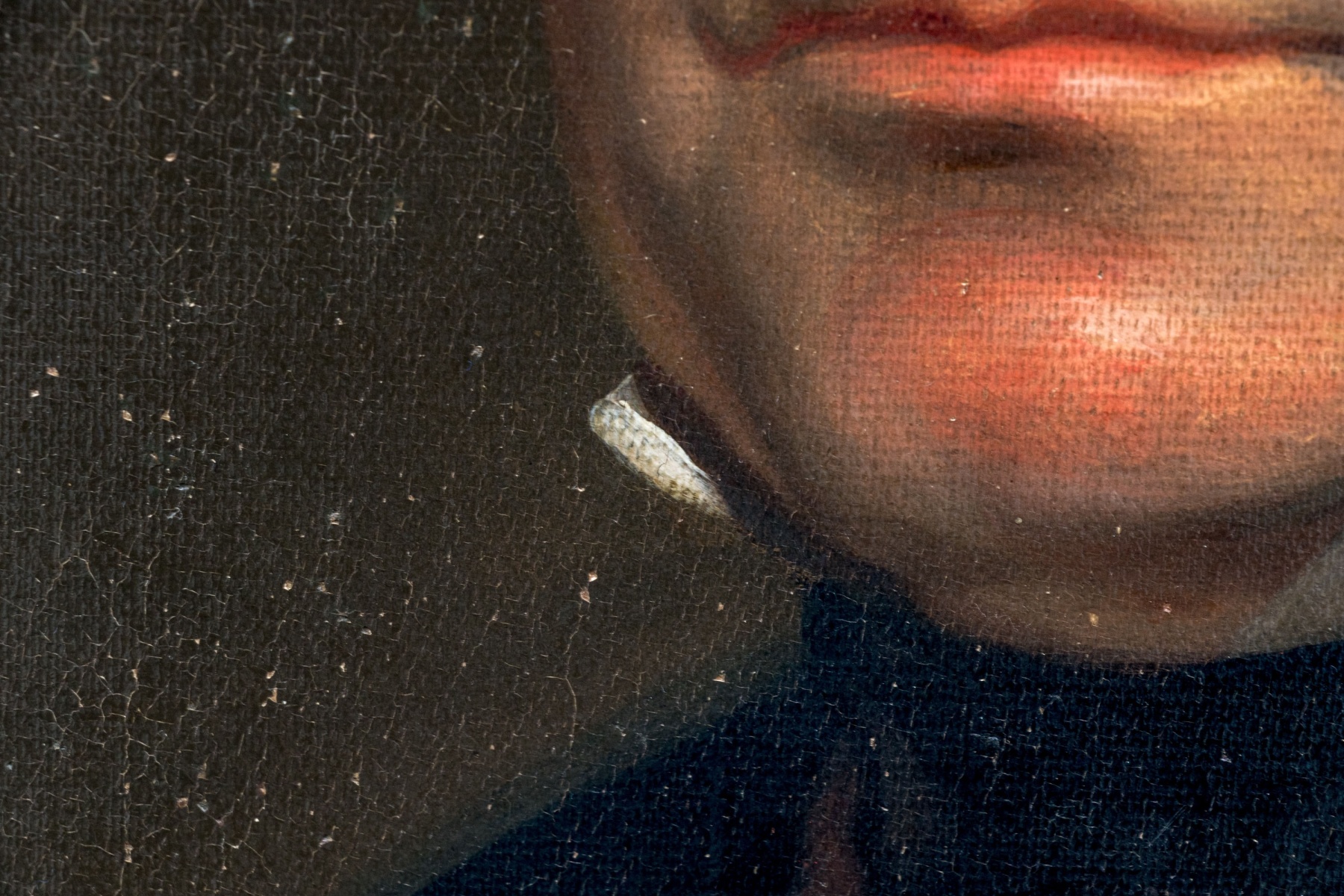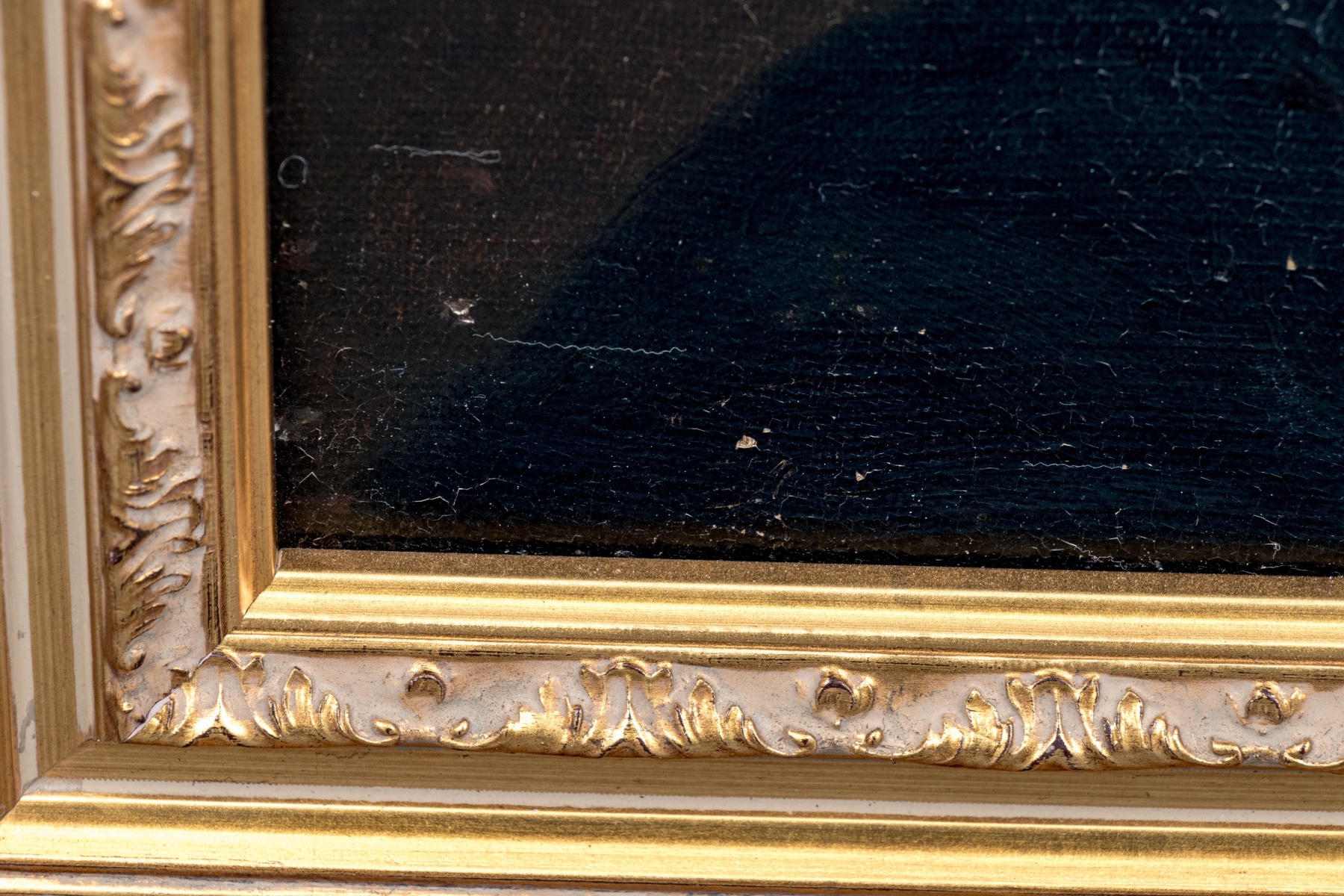Fine craquelure and some small spots of paint loss but overall still presents very handsomely. Lined.