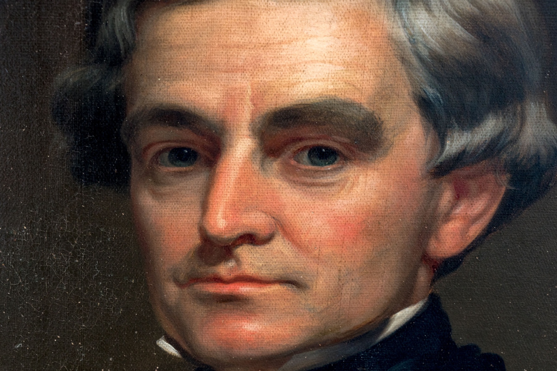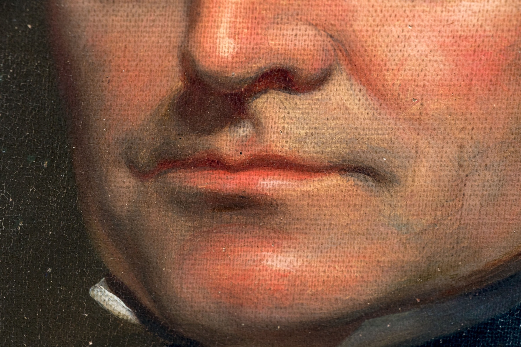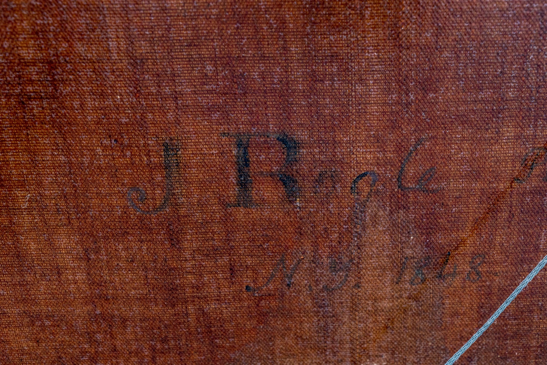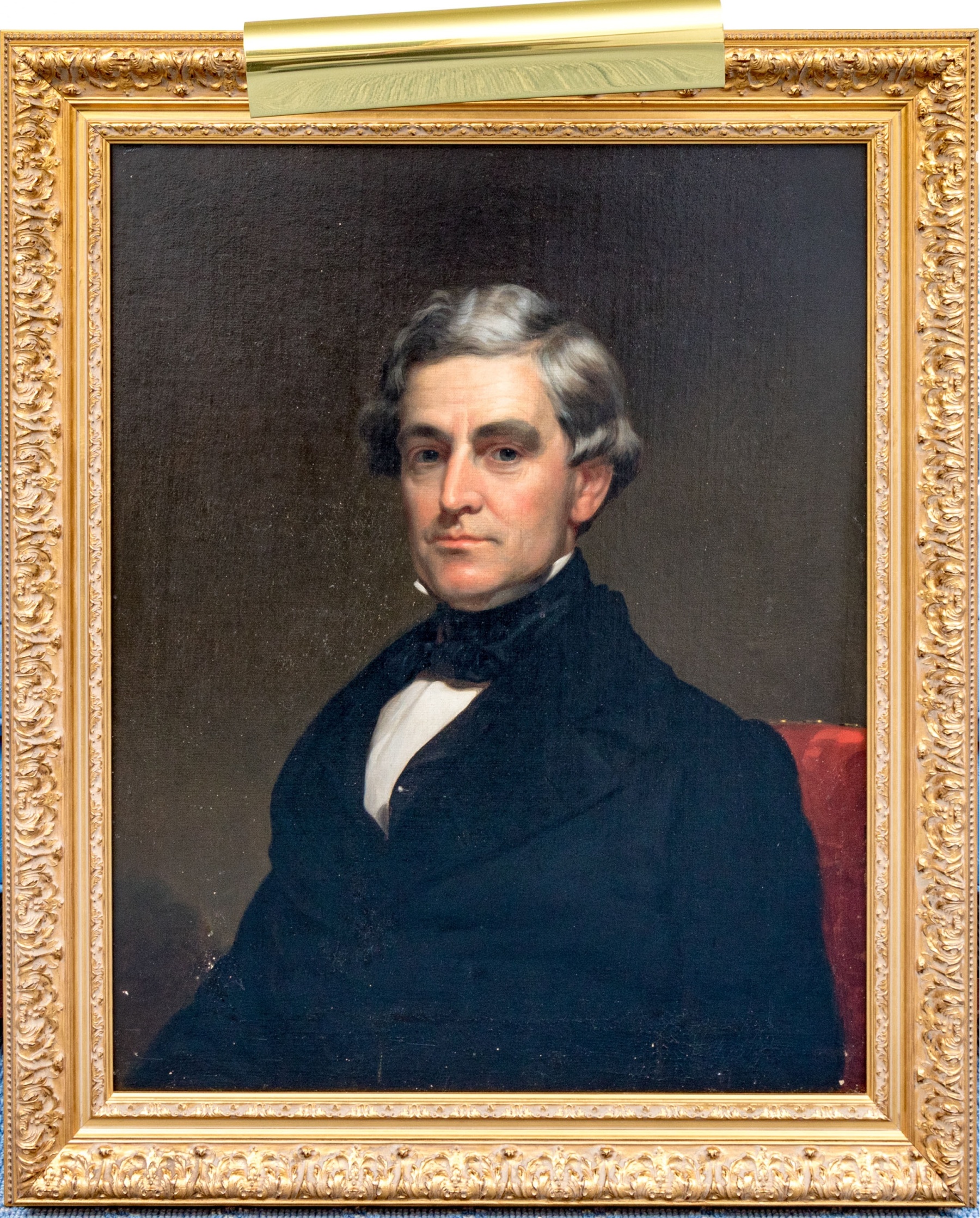 James Bogle (American [NY], 1817-1873) oil painting on canvas portrait of a gentleman portrayed seated, wearing formal attire. The sitter has neatly groomed grey hair and has his head tilted slightly left to meet the viewer's gaze. Signed and dated 1848 on the canvas verso.