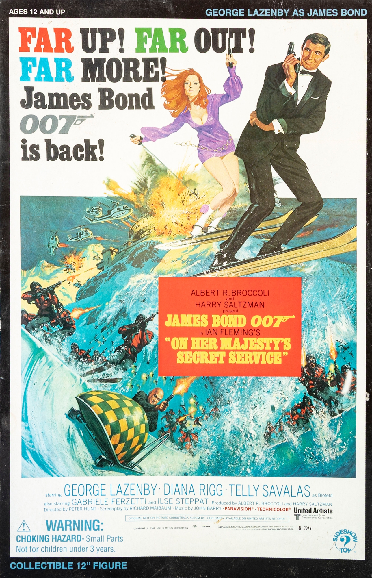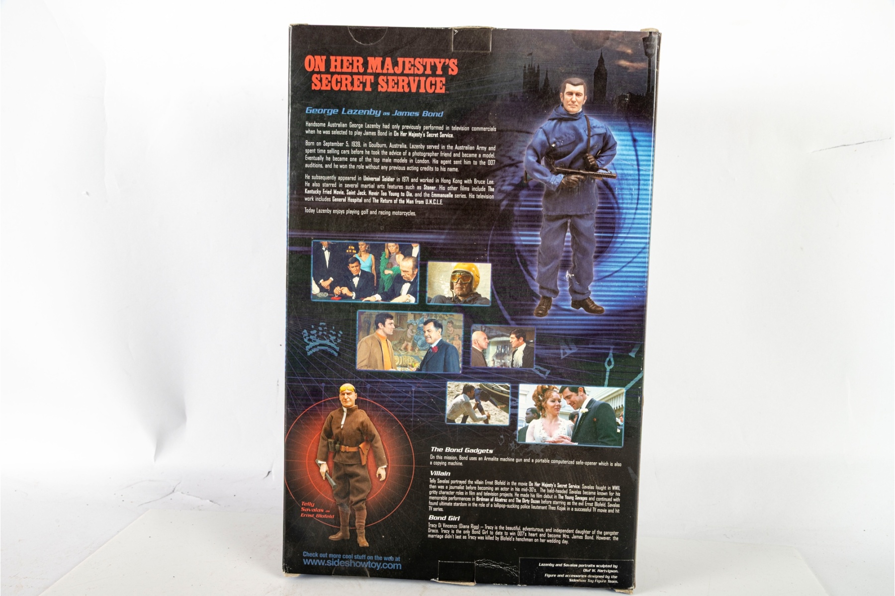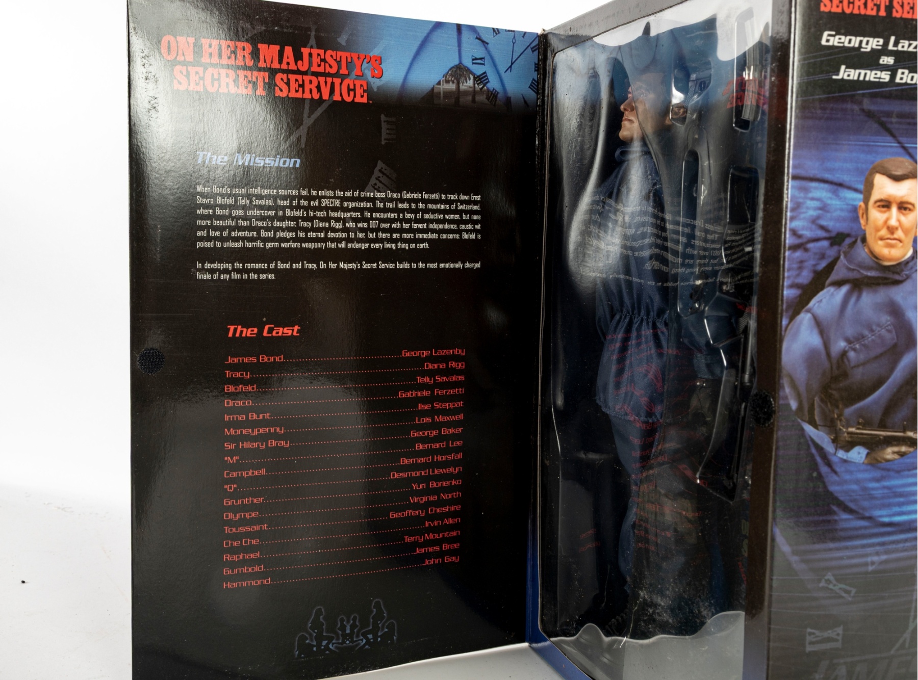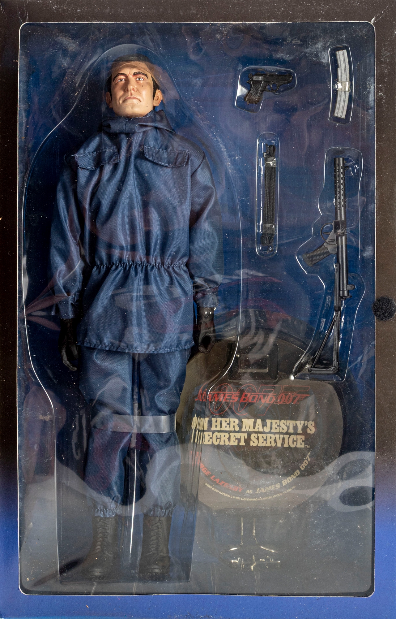 Highly detailed George Lazenby as James Bond 12-inch collectible action figure from On Her Majesty’s Secret Service, produced by Sideshow Toy in 2002. This officially licensed 007 collectible celebrates the only film appearance of George Lazenby as the iconic British secret agent.includes: