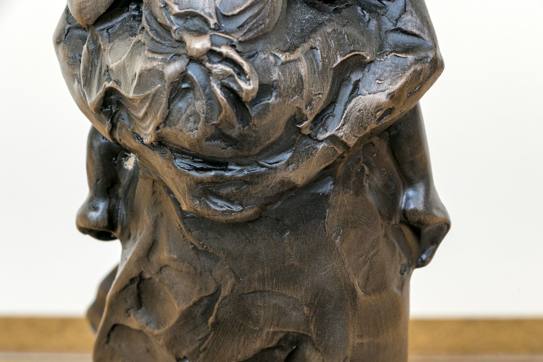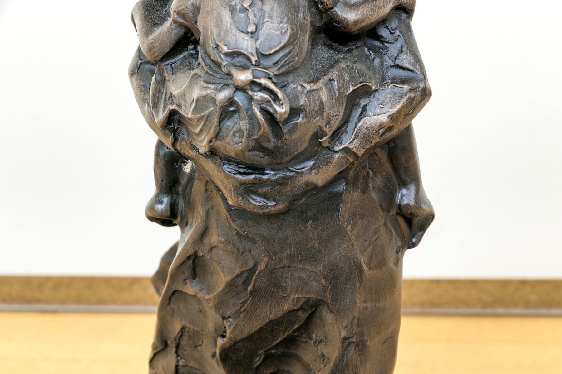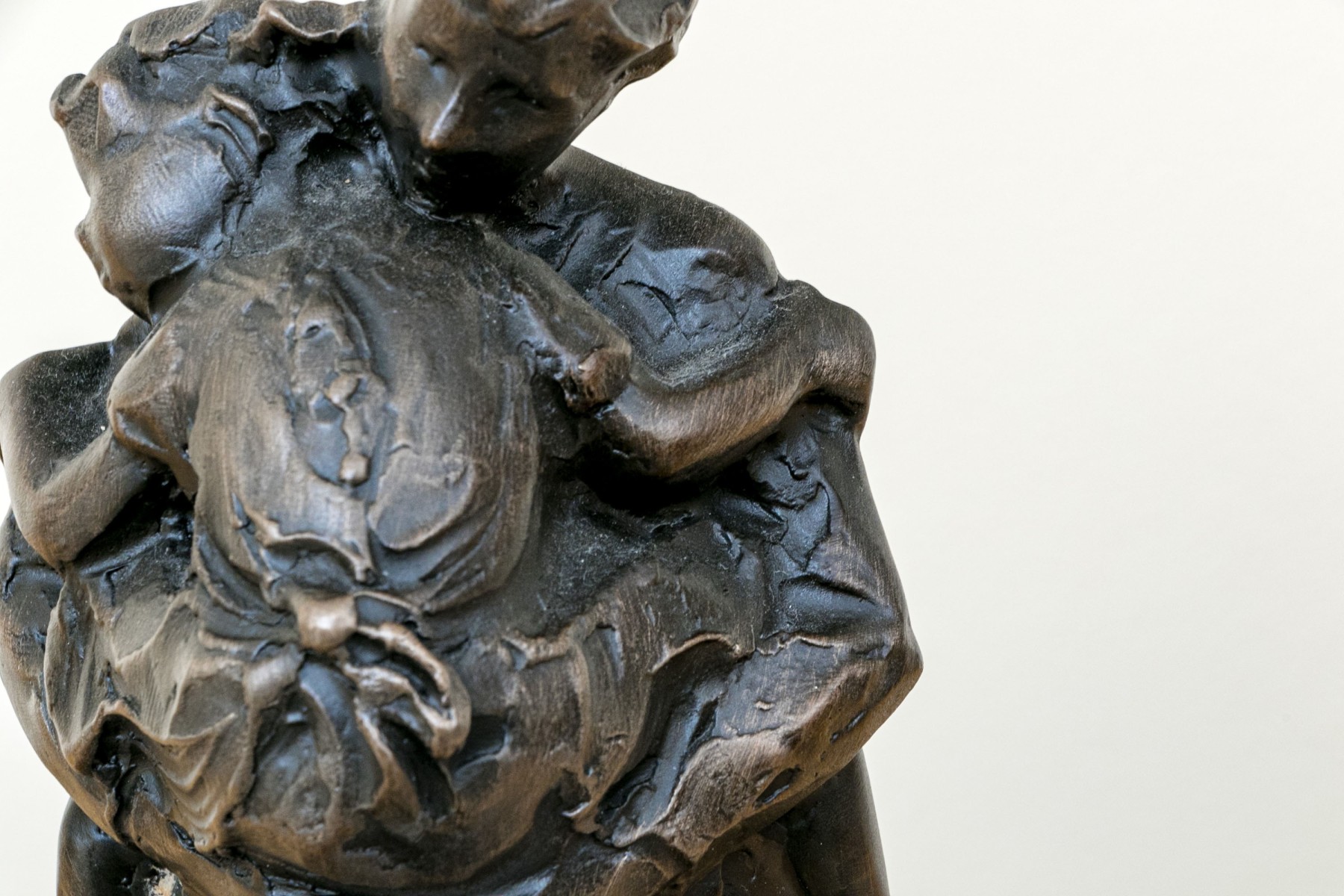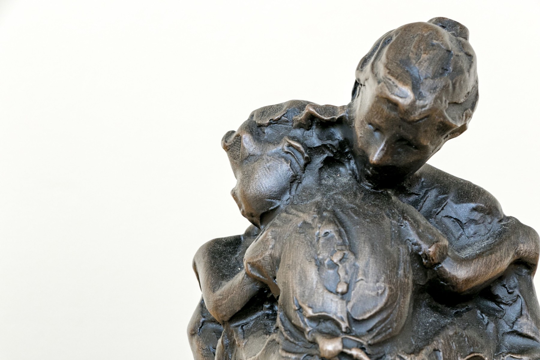 Jane DeDecker (American [IA], b. 1961) "Never Too Big" bronze sculpture depicting an impressionist mother holding a child in a tender carrying embrace, standing together over an oval naturalistic ground mounted to a green marble base. Signed and dated 1998.