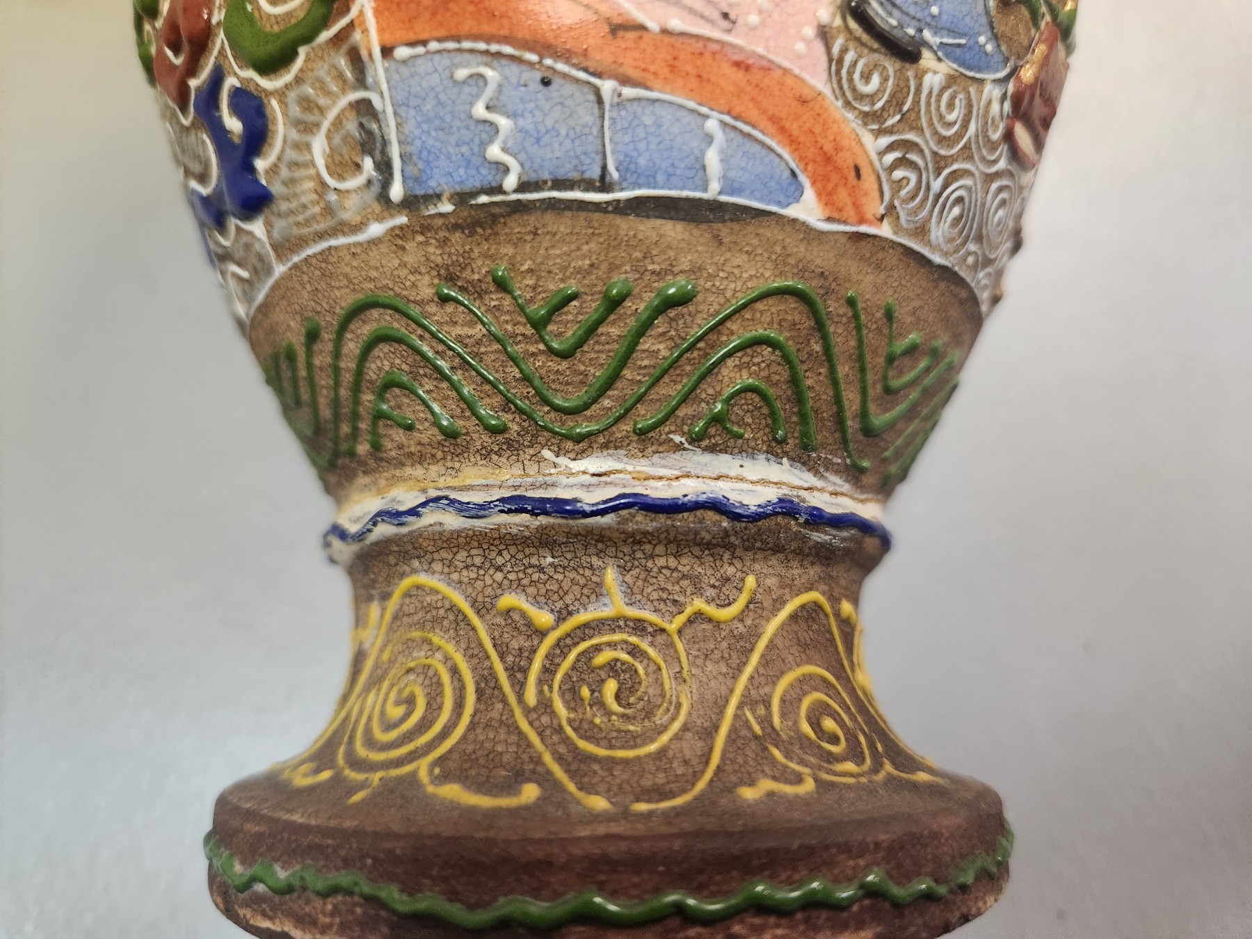 Displays well with light surface scratches, minor finish wear, faint crazing. A past repair where the body meets the foot that blends nicely. Please review the pictures as they are a part of the condition report.