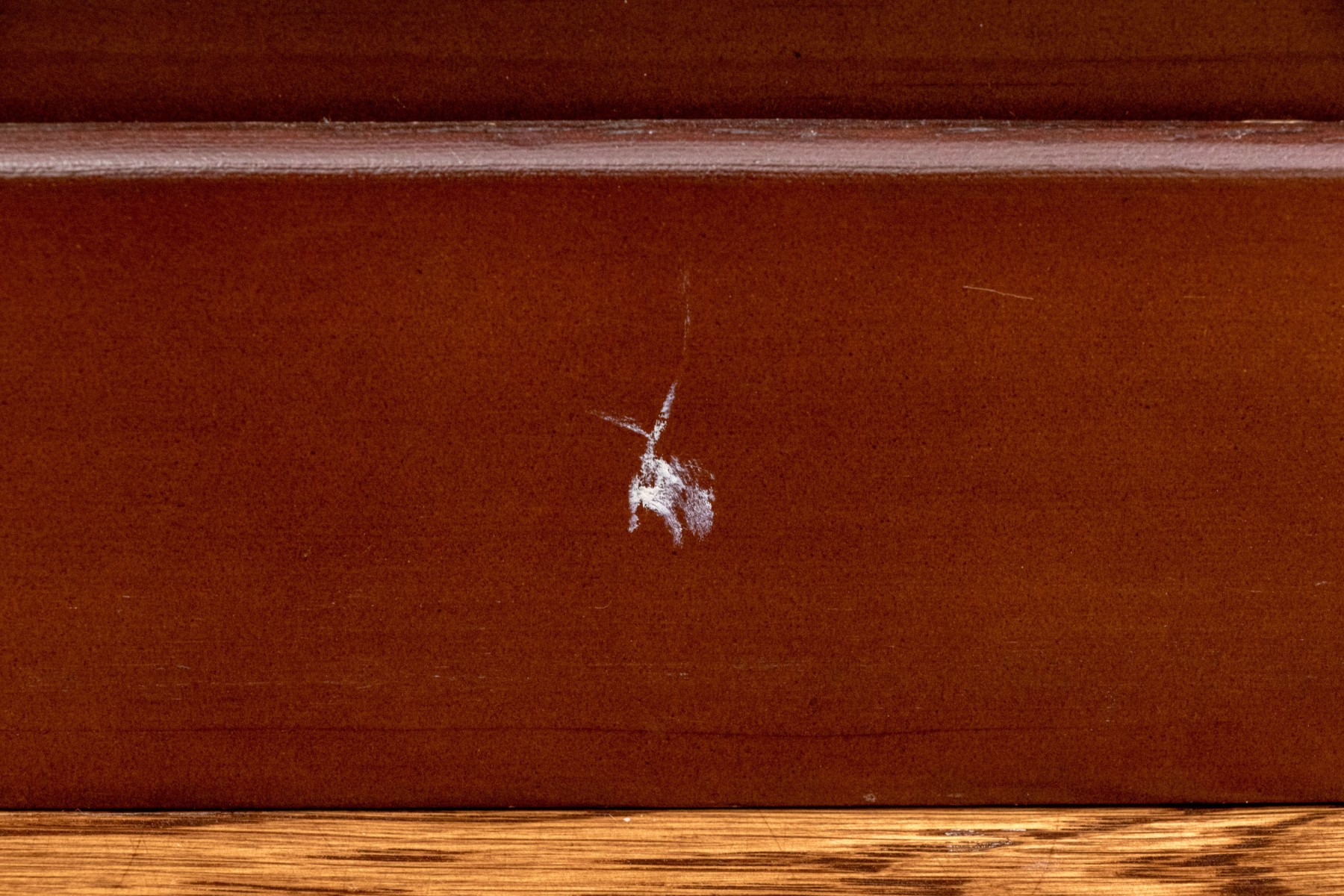 Finished on both sides. Functional storage. A few areas of wear, but quite minor.