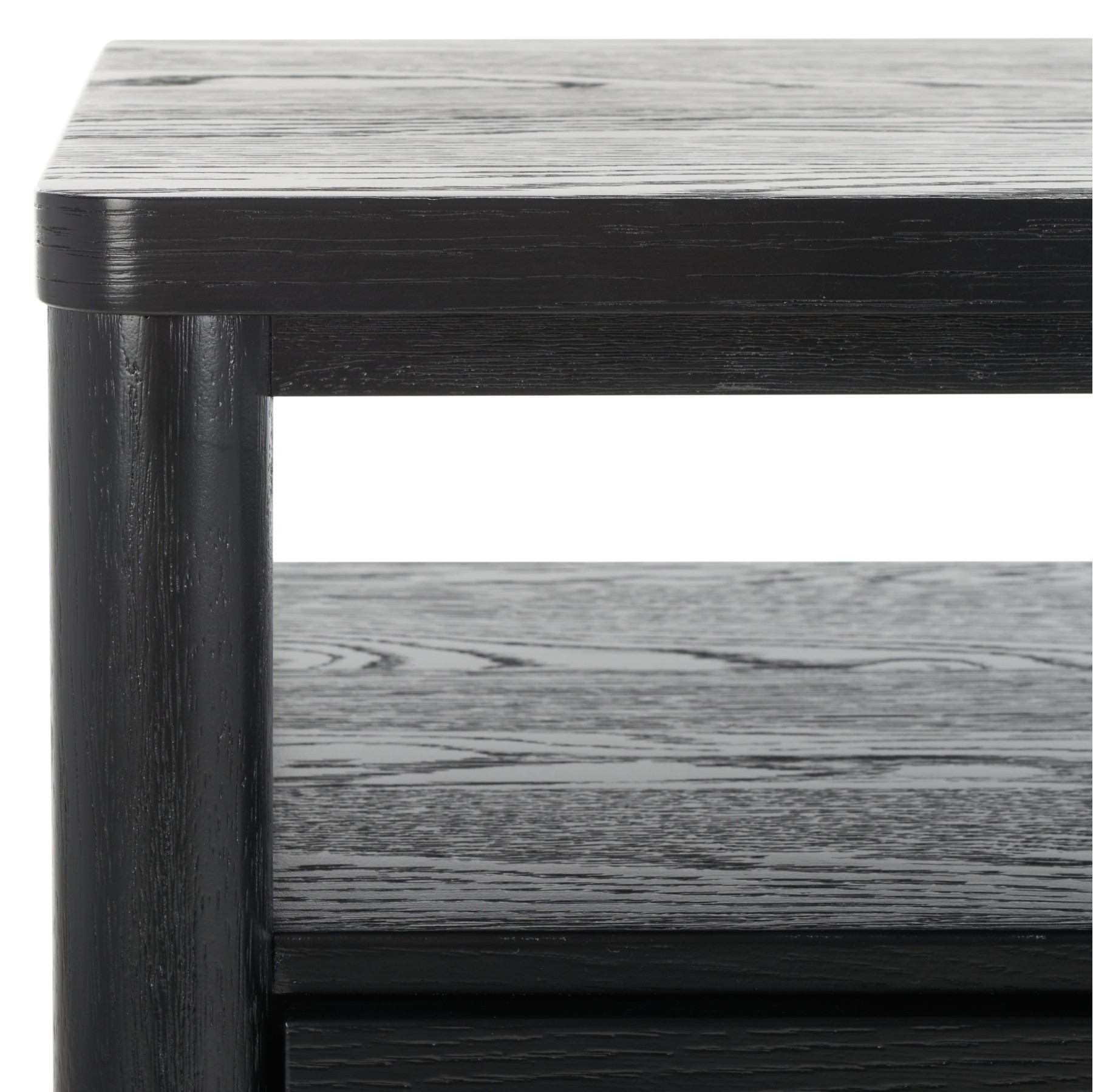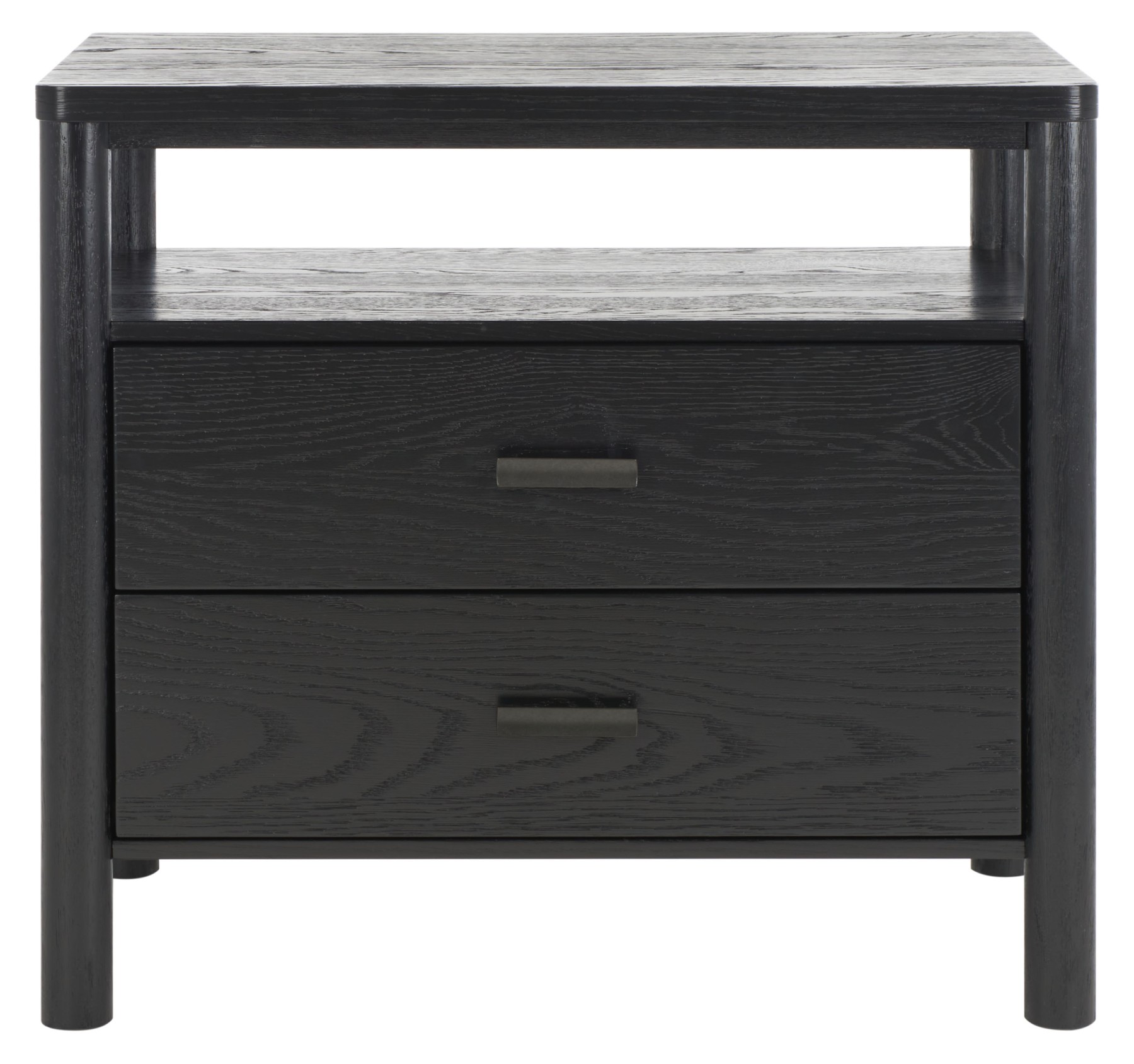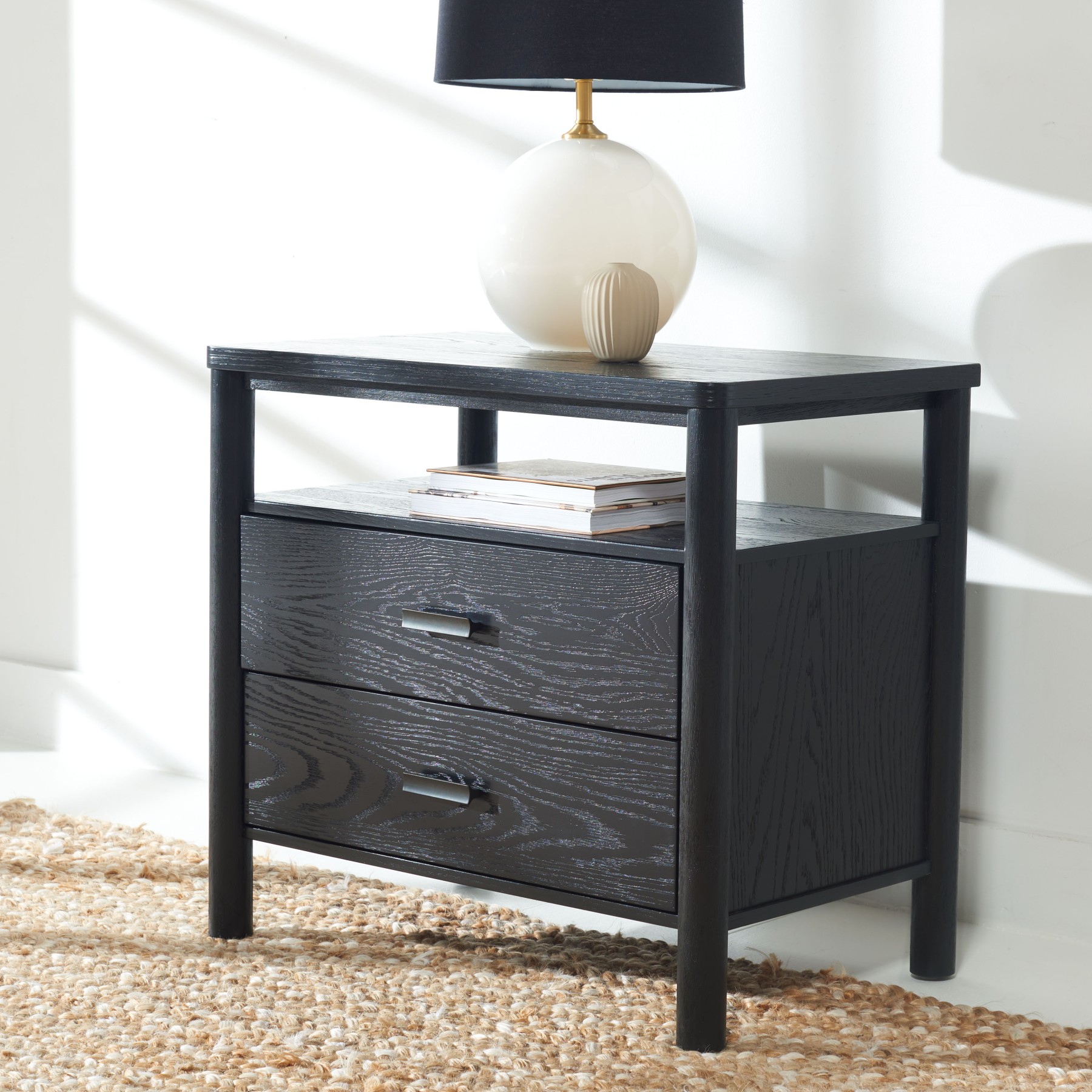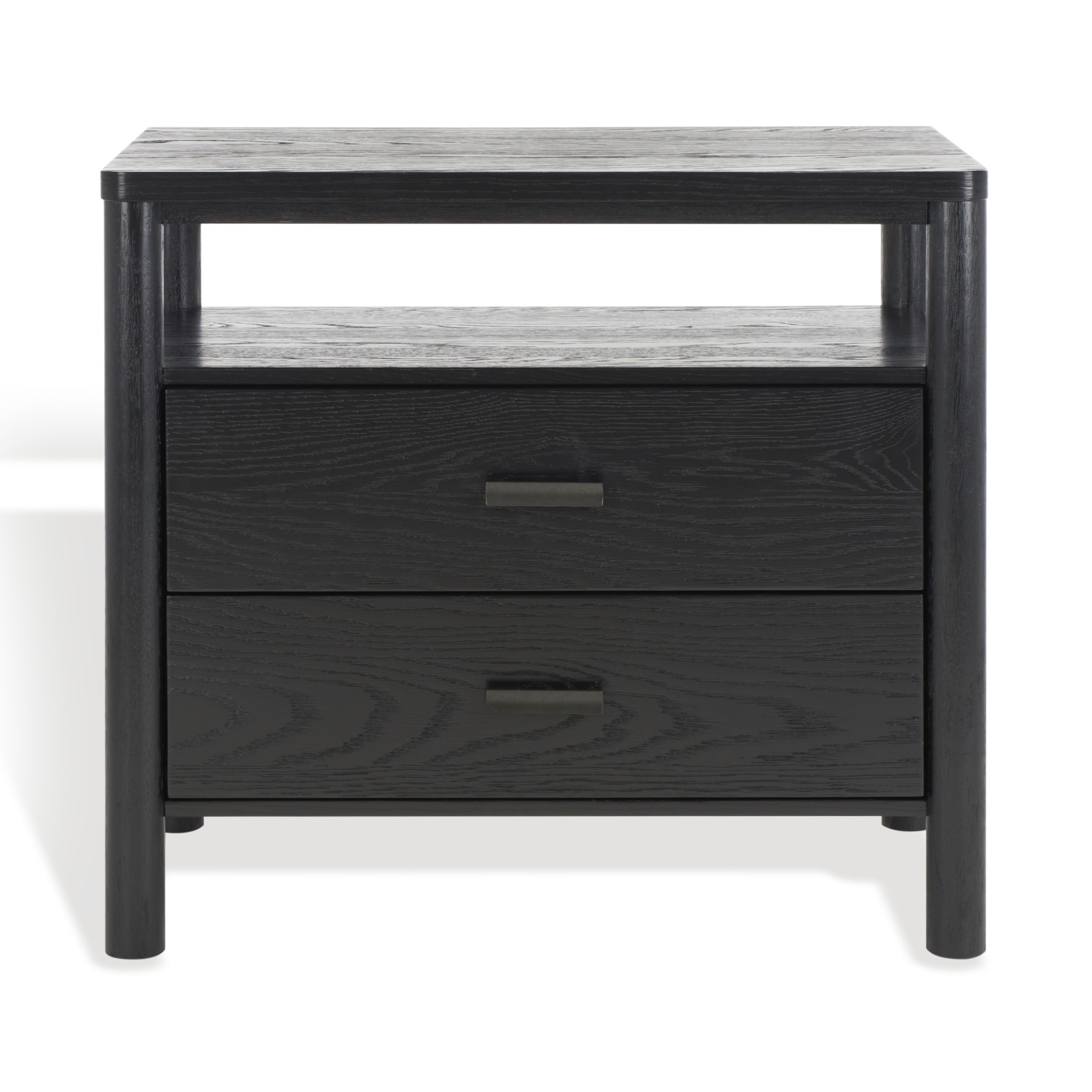 Liven up your bedroom with the rich textures and modern appeal of our Jaylessa nightstand. It beautifully recalls the timelessness of mid-century design with a tailored and streamlined profile. Expertly crafted in solid wood, the nightstand allows the rich grains of the material to stand out. Its slender curved legs serve as an elegant and charming detail. Finished off with sleek bronze metallic pulls, our nightstand adds character and warmth to a wide variety of settings. It includes two roomy drawers and an open shelf to display, store, and organize your decor item and essentials.