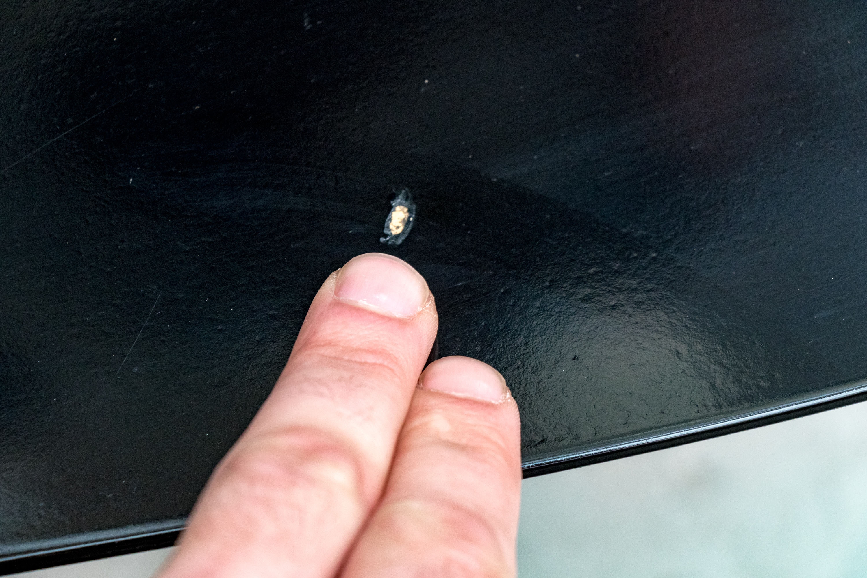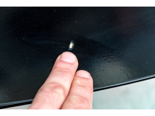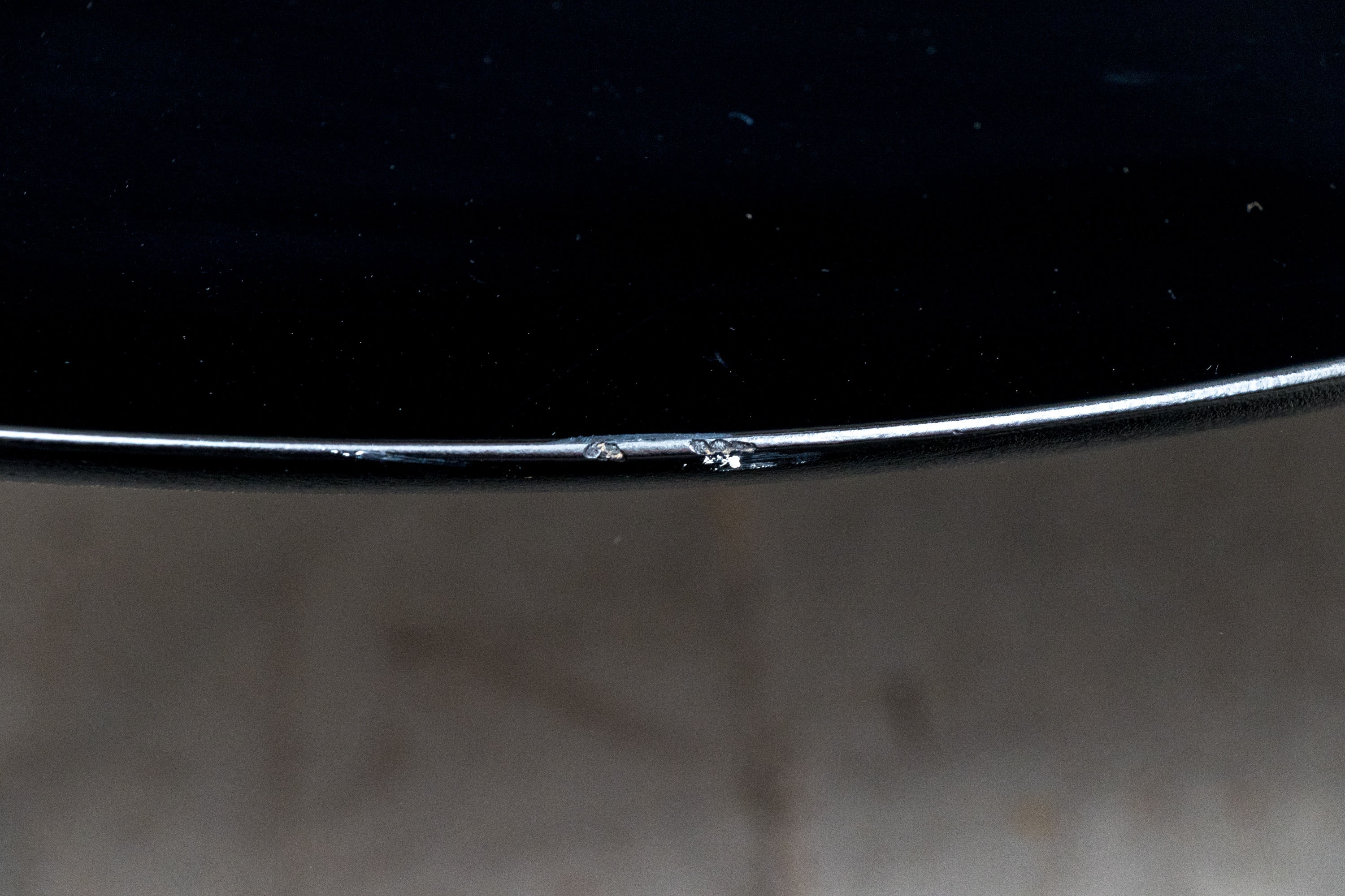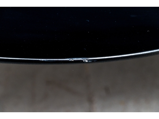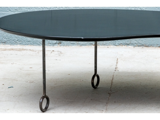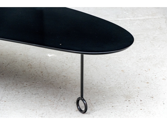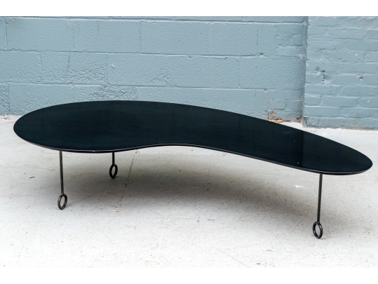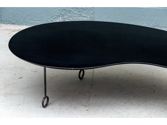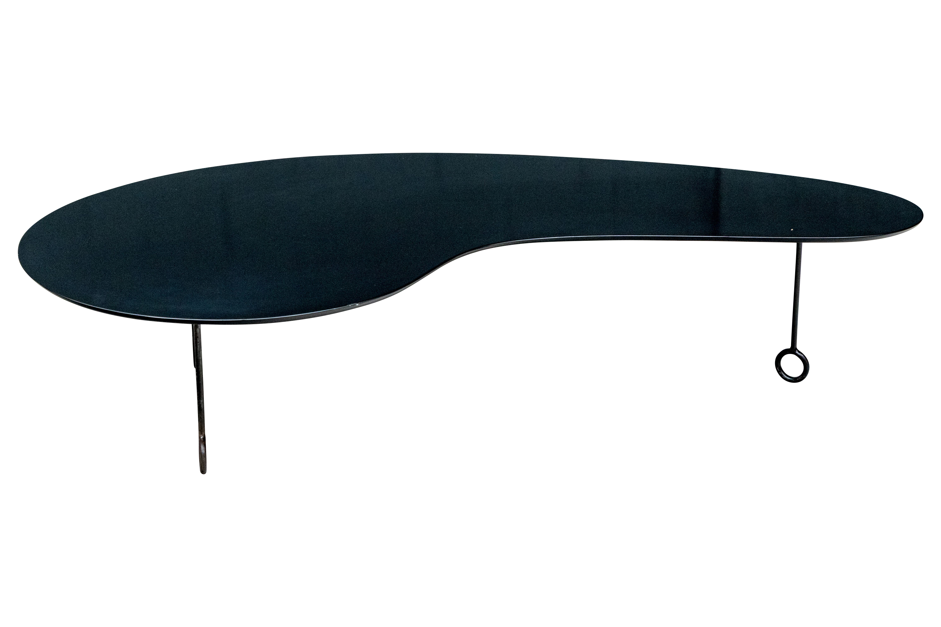 Condition: Please review the detail photos. There are marks and some smudges on the top with a small chip at the narrow end. There is some wear to the black surfaces on the legs. A fine example of this early Jean Royere design.