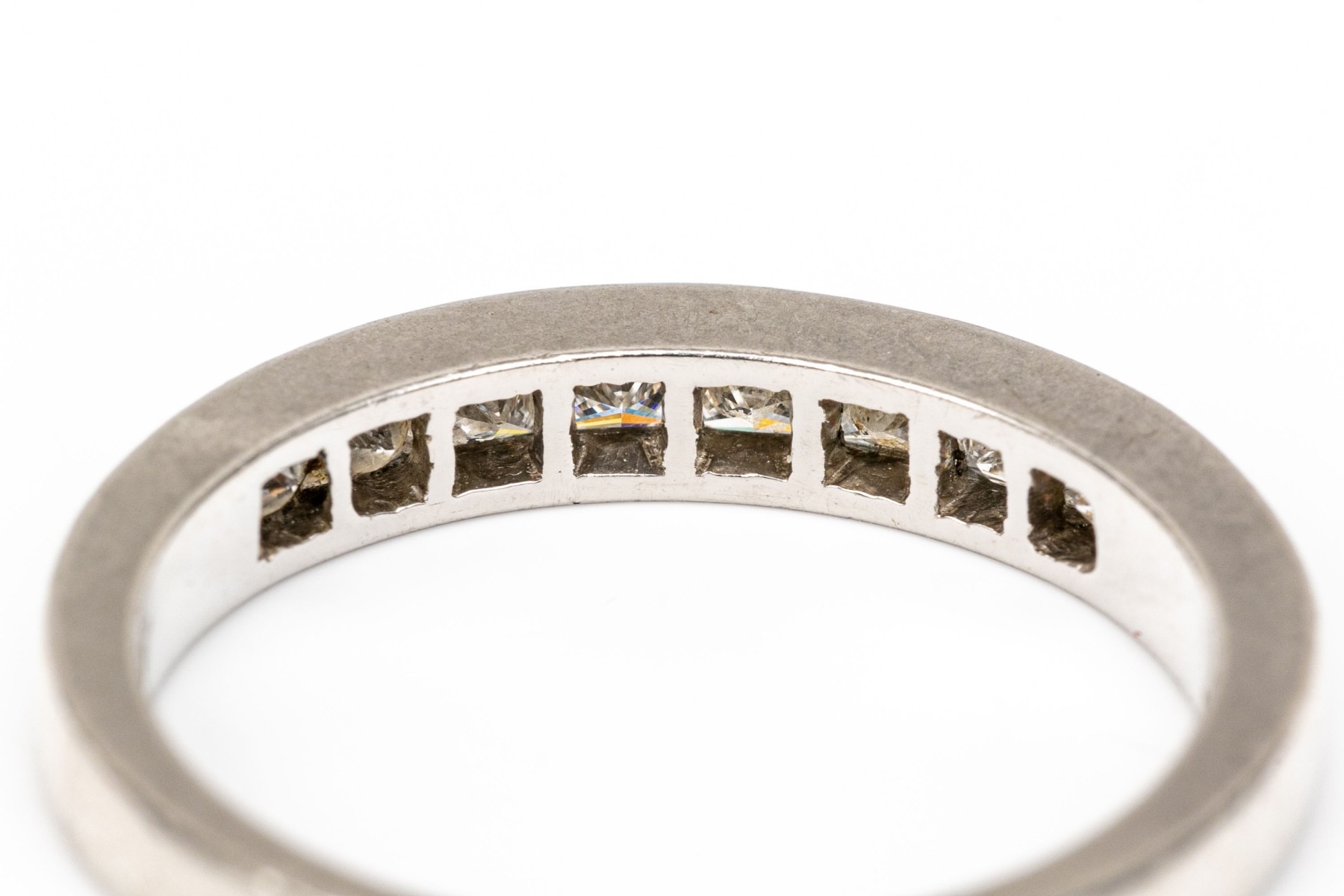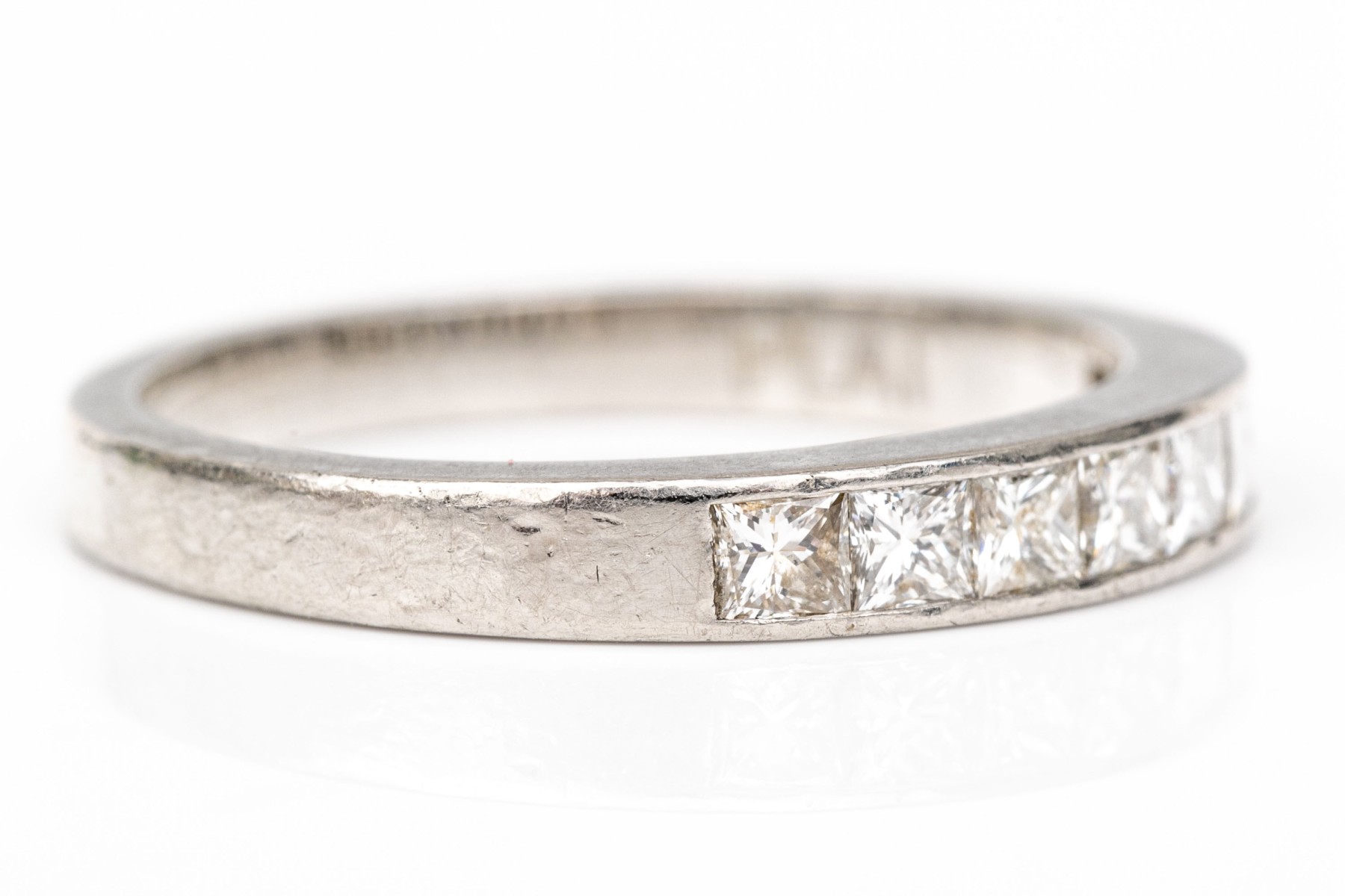 Jeff Cooper platinum hansome channel set princess cut diamond band ring, app. 0.64 TCW, size 8.5-. The diamonds are VS2 clarity, I to J color