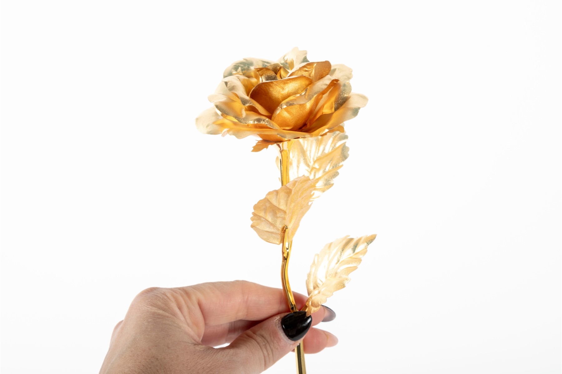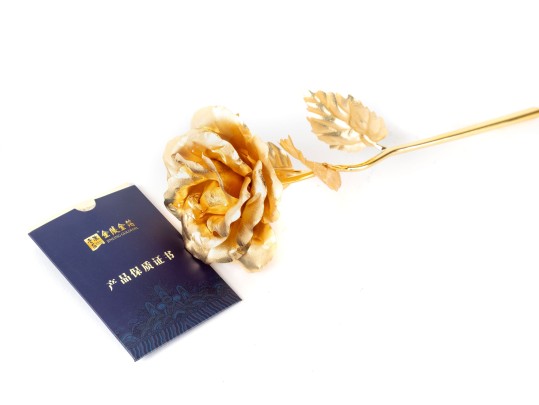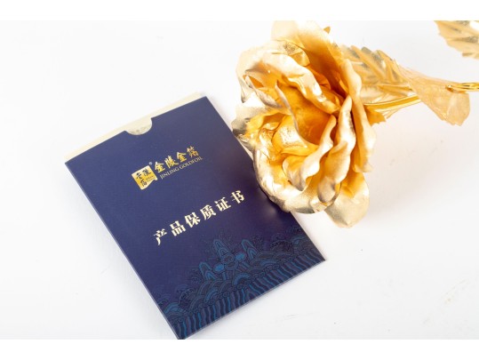 A 10" tall jingling gold foil flower -- featuring a pure 24k gold stem and gold foil petals. Certificate of authenticity included.