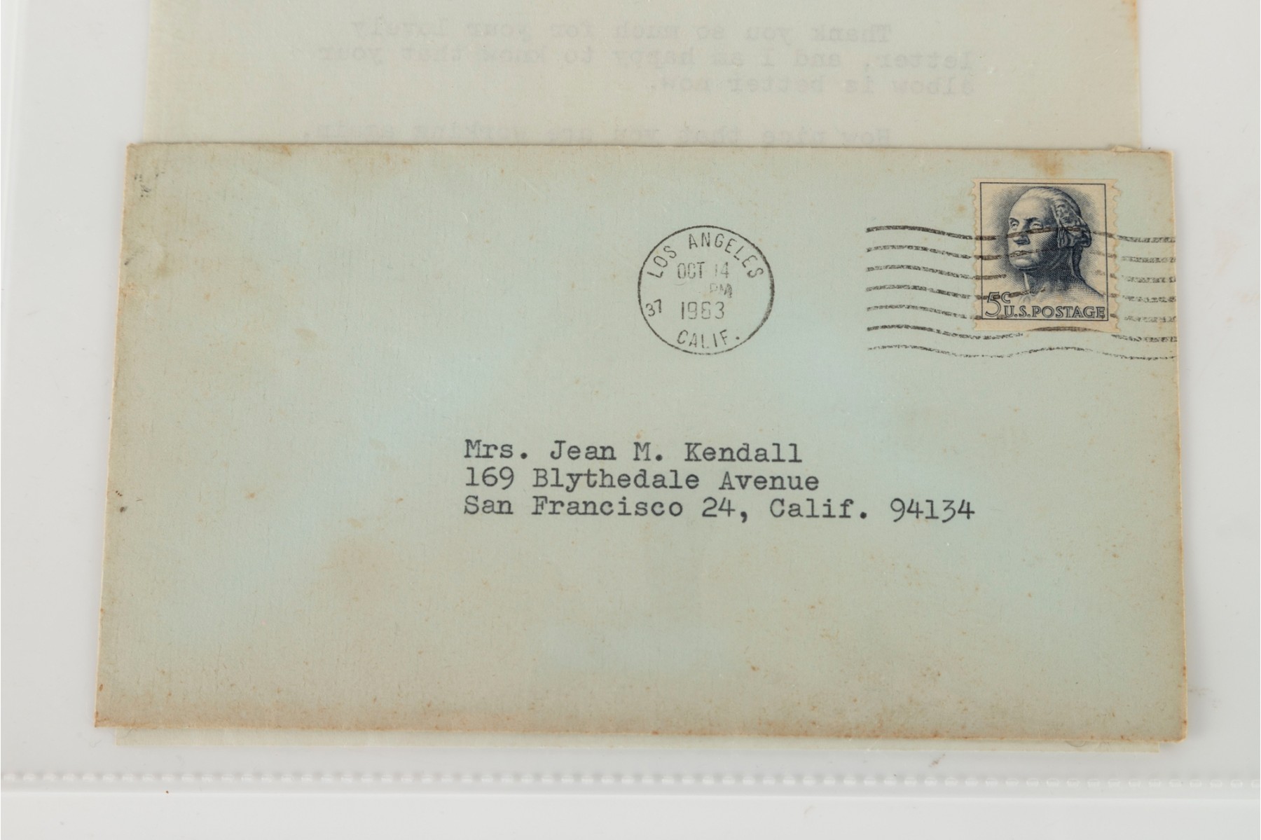Ink signed Joan lower left. Includes the original envelope. Displayed loose, within a protective blinder sleeve.