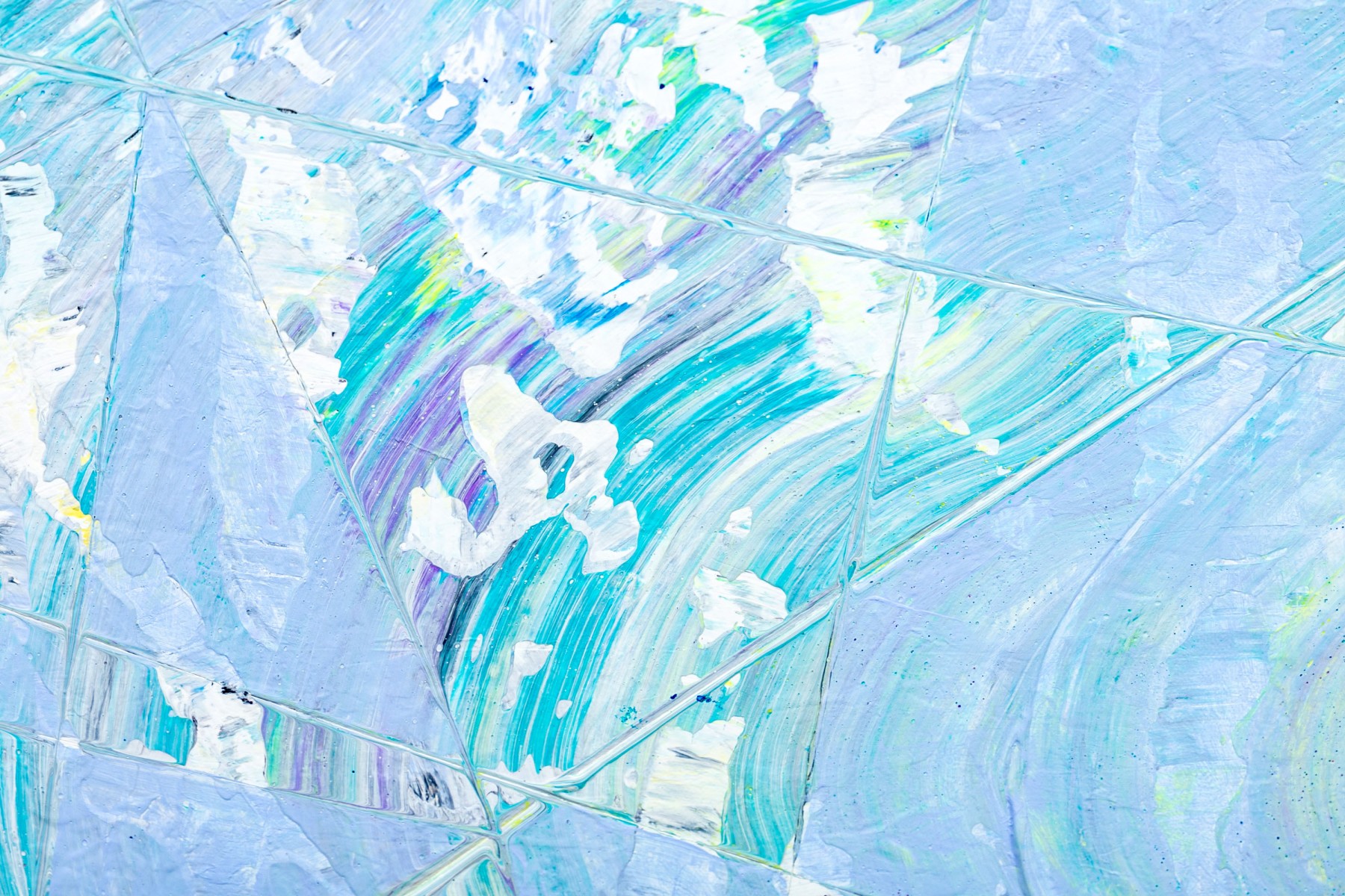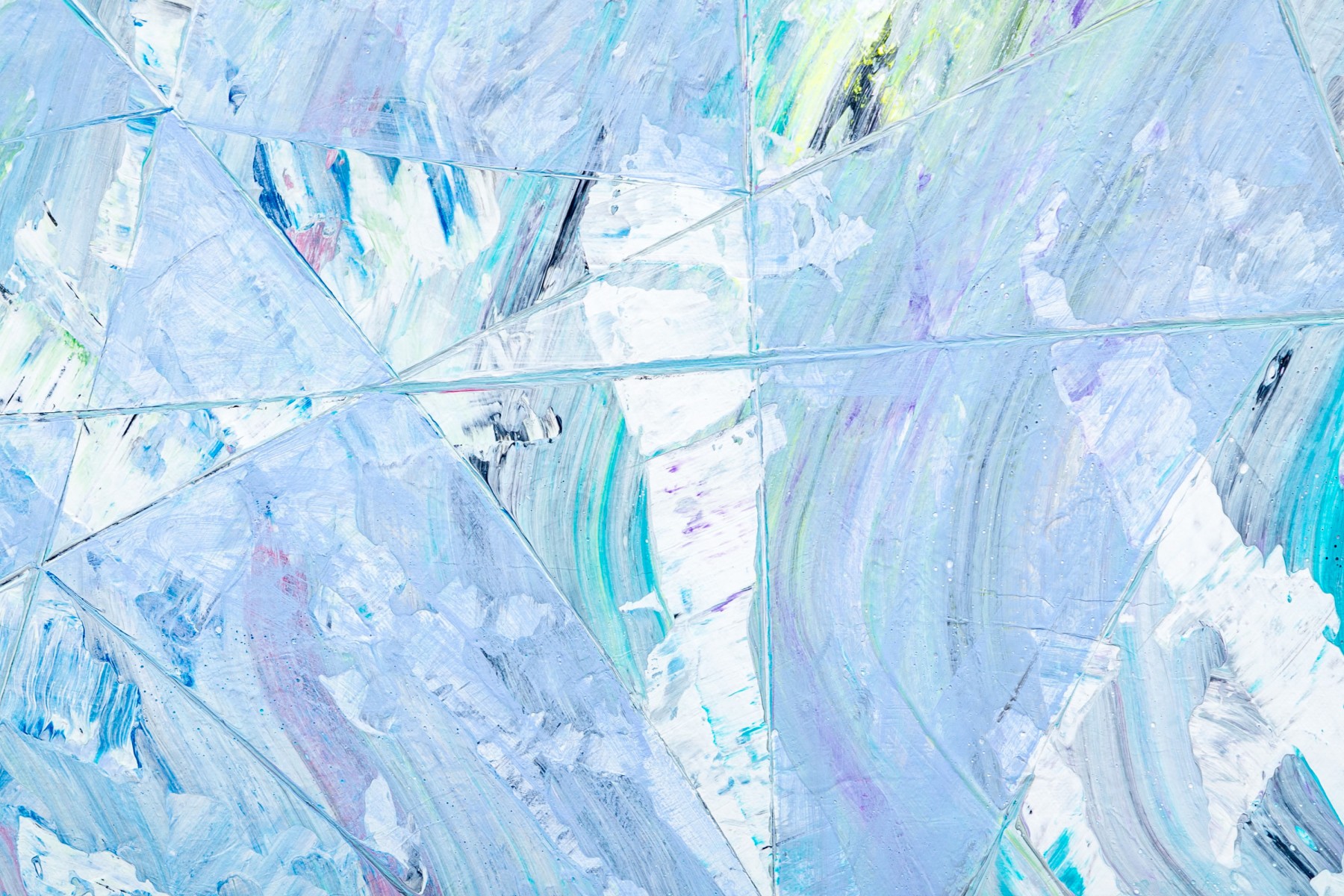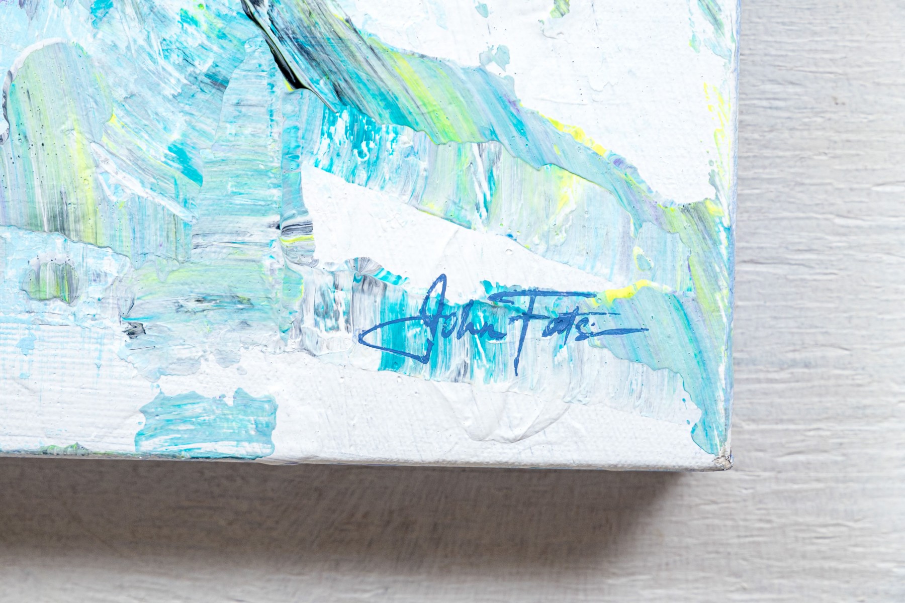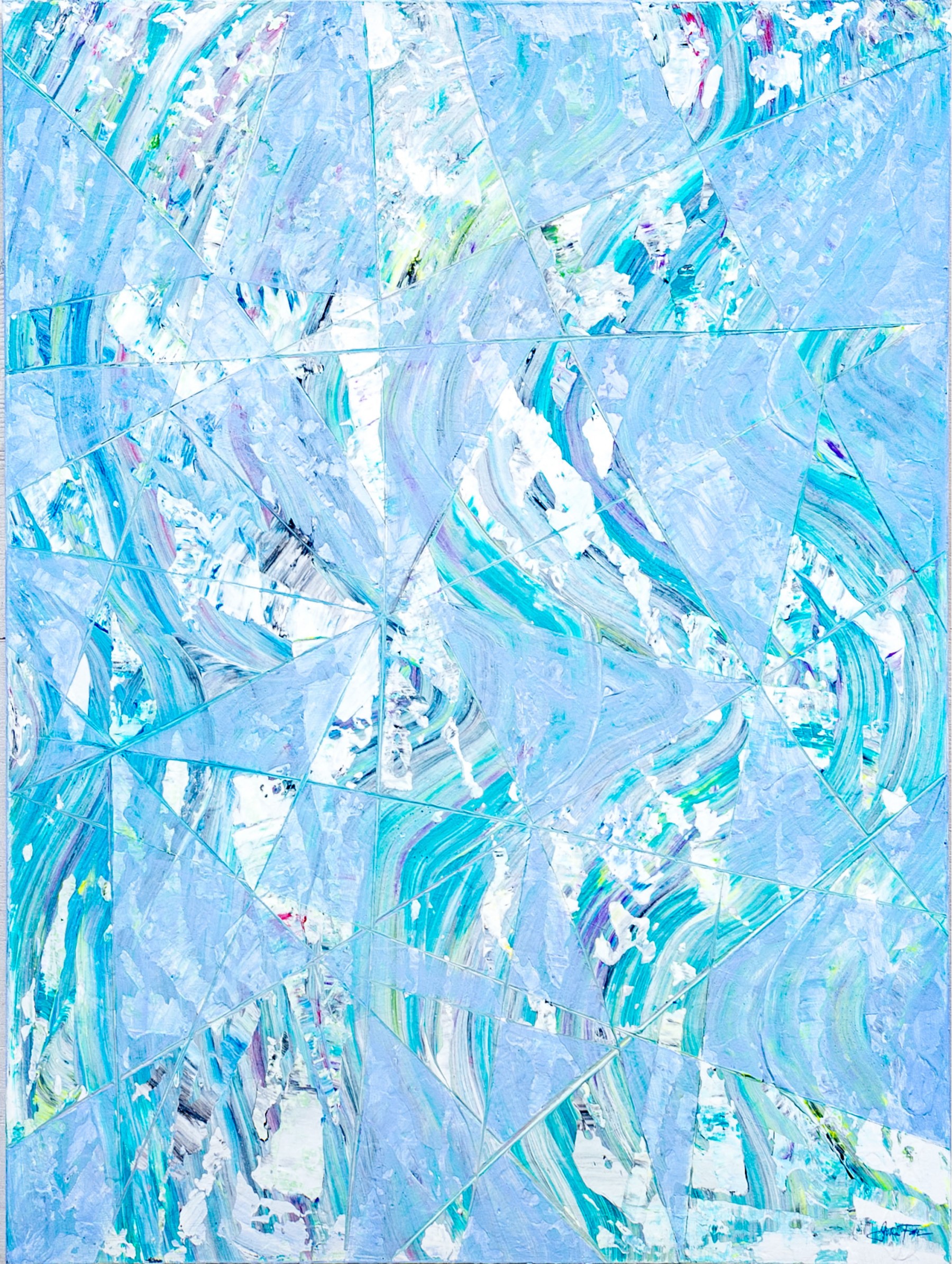 Signed lower right. An interesting abstract in pale blue with blocks and swirls of white and green. Unframed.