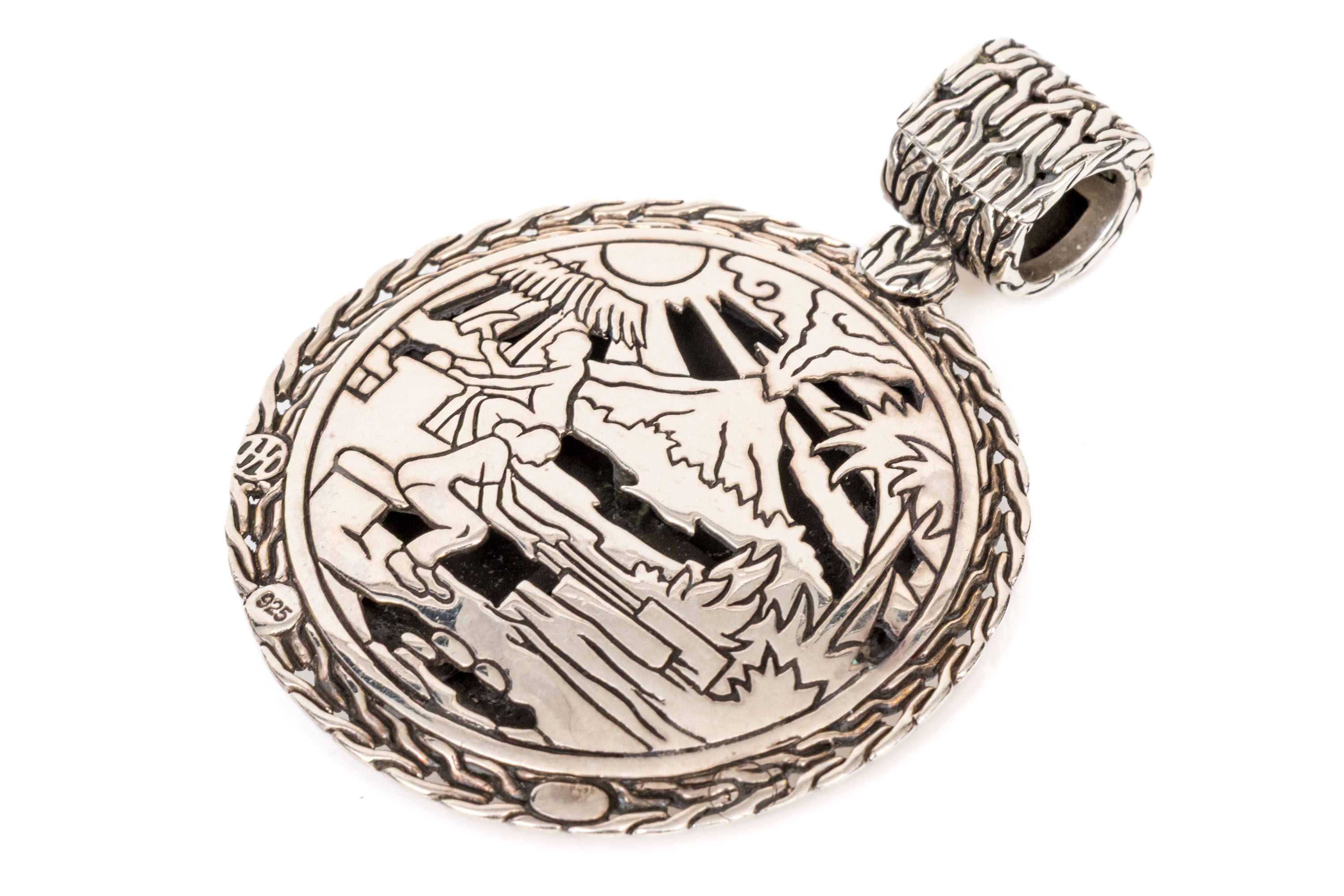 John Hardy Sterling Silver Fabulous Oversized Amulet Style Hammered Pendant, Reversible #458323. Black Rock Galleries provides high end estate liquidation services through online estate auctions and a 50,000 sq ft designer showroom. estate liquidator, estate sale, online auction, antiques, fine art, liquidation, clean outs, auction, consignment, interior design, fine jewelry, collectibles, appraisals, estate appraisals, estate services, decor, furniture, furniture consignment, antique center, consignment shop. We offer appraisal services and specialize in fine art, jewelry, antiques and decorative arts. Sell with us. Black Rock Galleries is the tri-state's largest estate liquidator serving New England and the greater New York City area. We are the trusted source for expert appraisals, auction services, estate sales, and consignments. Black Rock Galleries is the east coast's largest and most trusted estate liquidator, with locations in Connecticut, greater Boston, MA and Raleigh, NC, Fairfield, Southport, Apex, TX. We are the best source for expert appraisals, auction services, estate sales and consignments. We have served thousands of families and estates with compassion, professionalism and expertise. BRG works with attorneys, executors, realtors and families to bring the greatest return on personal and estate property in the current market. Our unique combination of services make us the easy choice to get the job done in a timely and stress-free manner. We are with you from the initial consultation to the final clean out. Our house-built online auction software platform offers clients a dynamic approach to liquidating their personal property. This venue is most successful in bringing the best return with the least amount of disruption for our clients. See our services page for a complete description of this offering. John Hardy Sterling Silver Fabulous Oversized Amulet Style Hammered Pendant, Reversible #458323