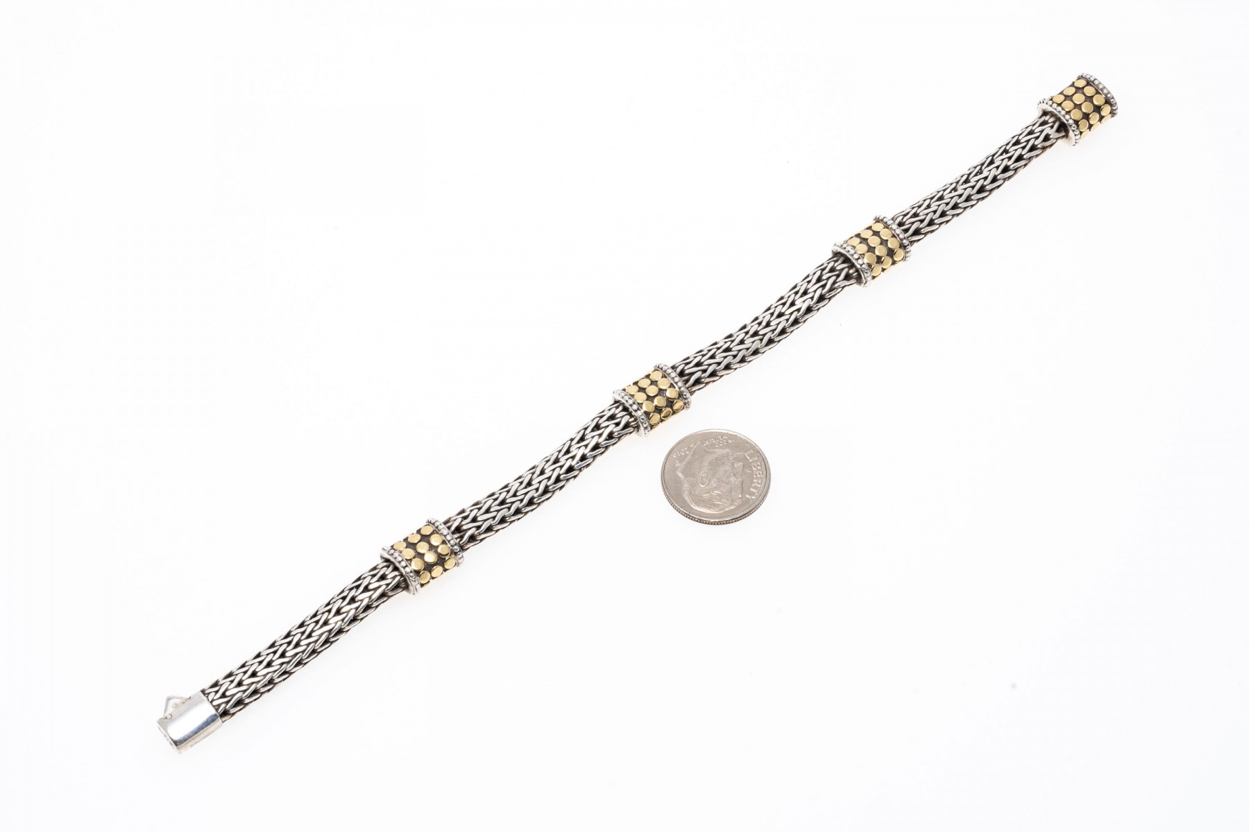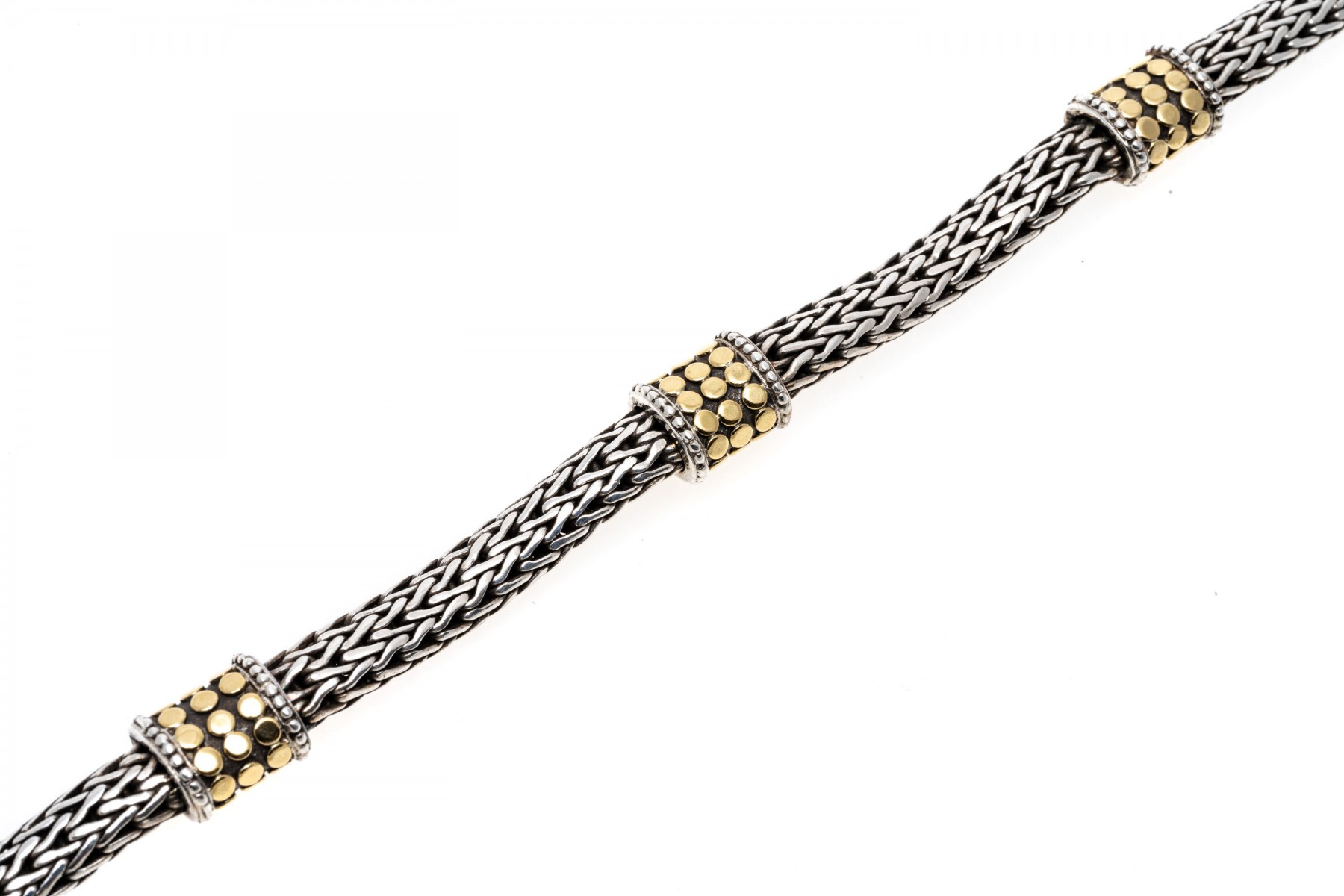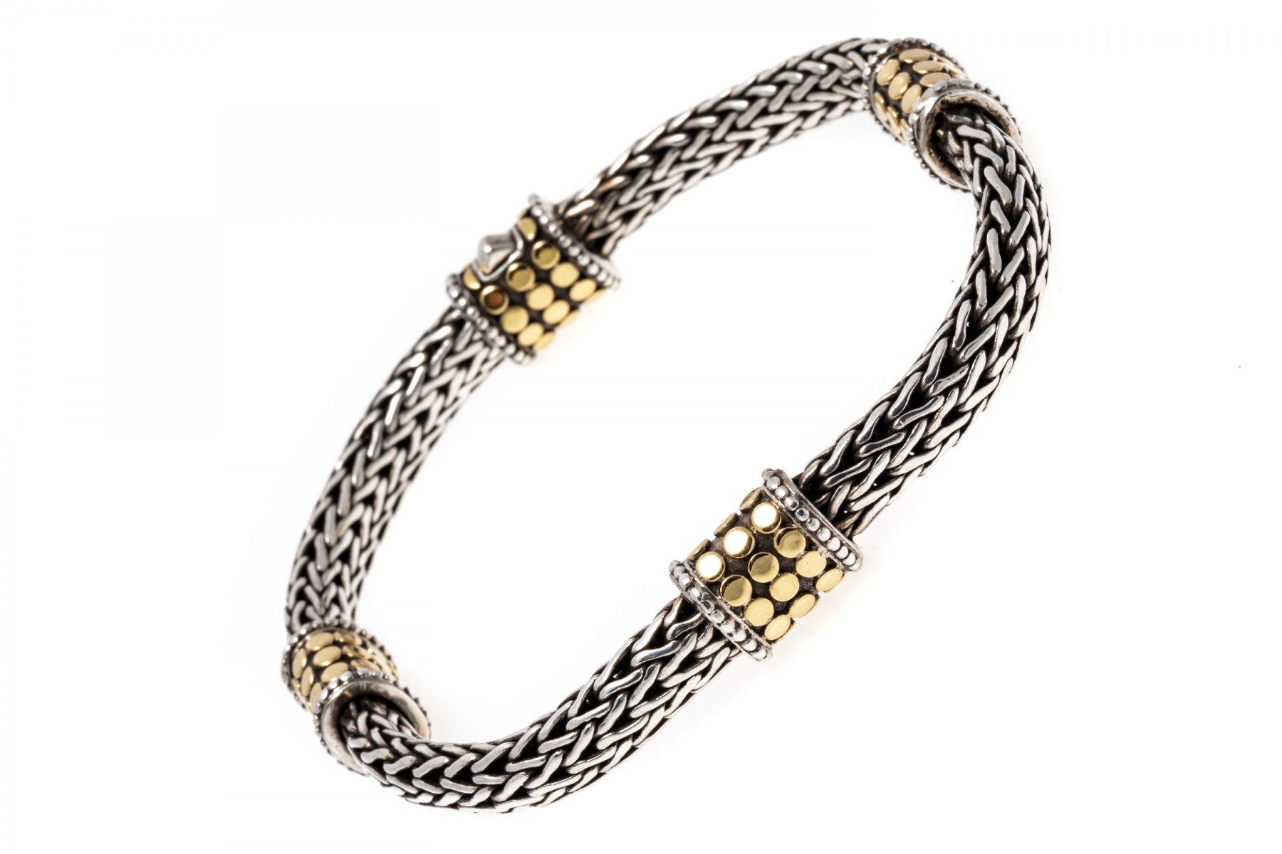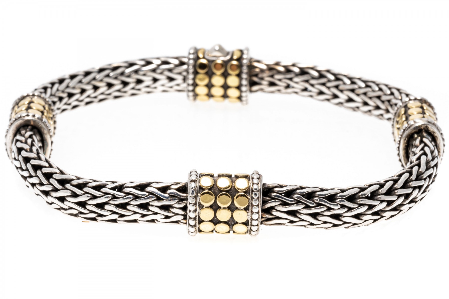 John Hardy wonderful classic sterling woven bracelet with 18k yg dot stations, finished with an 18k and sterling silver clasp