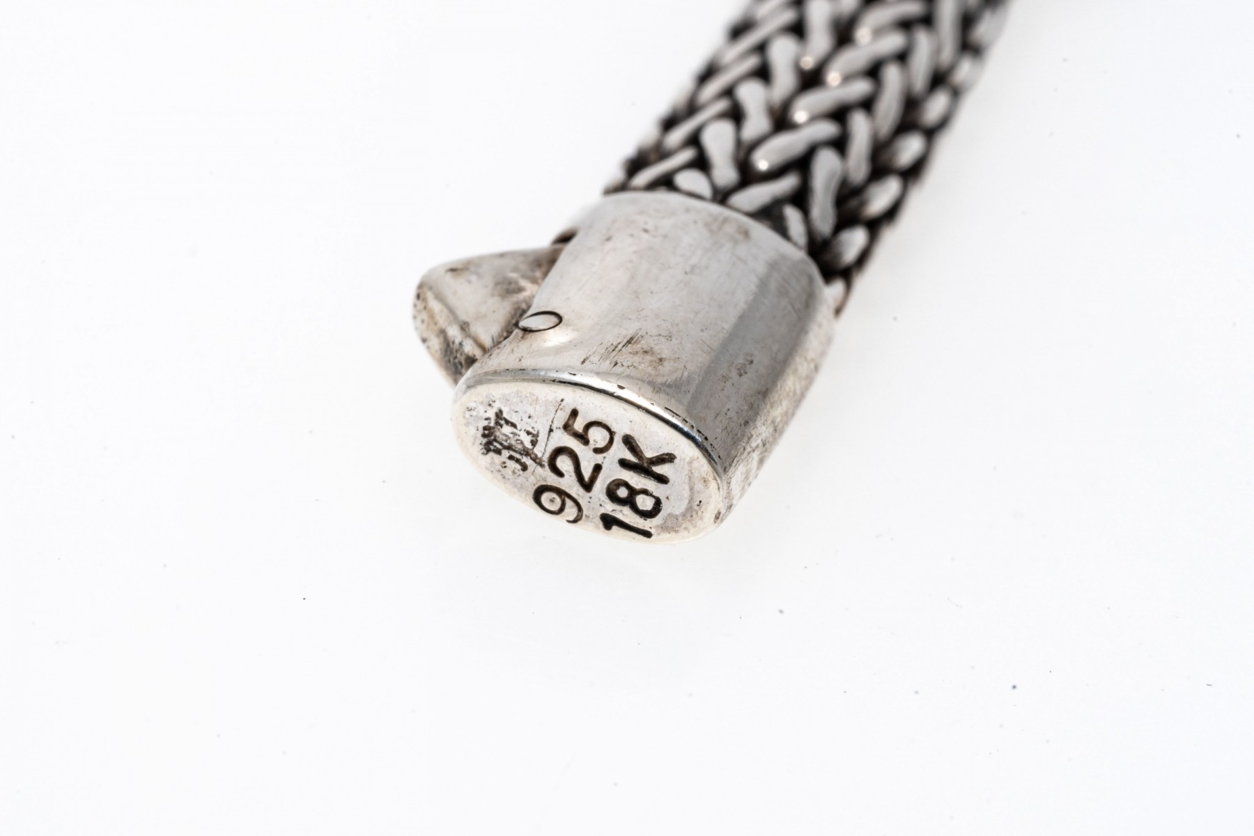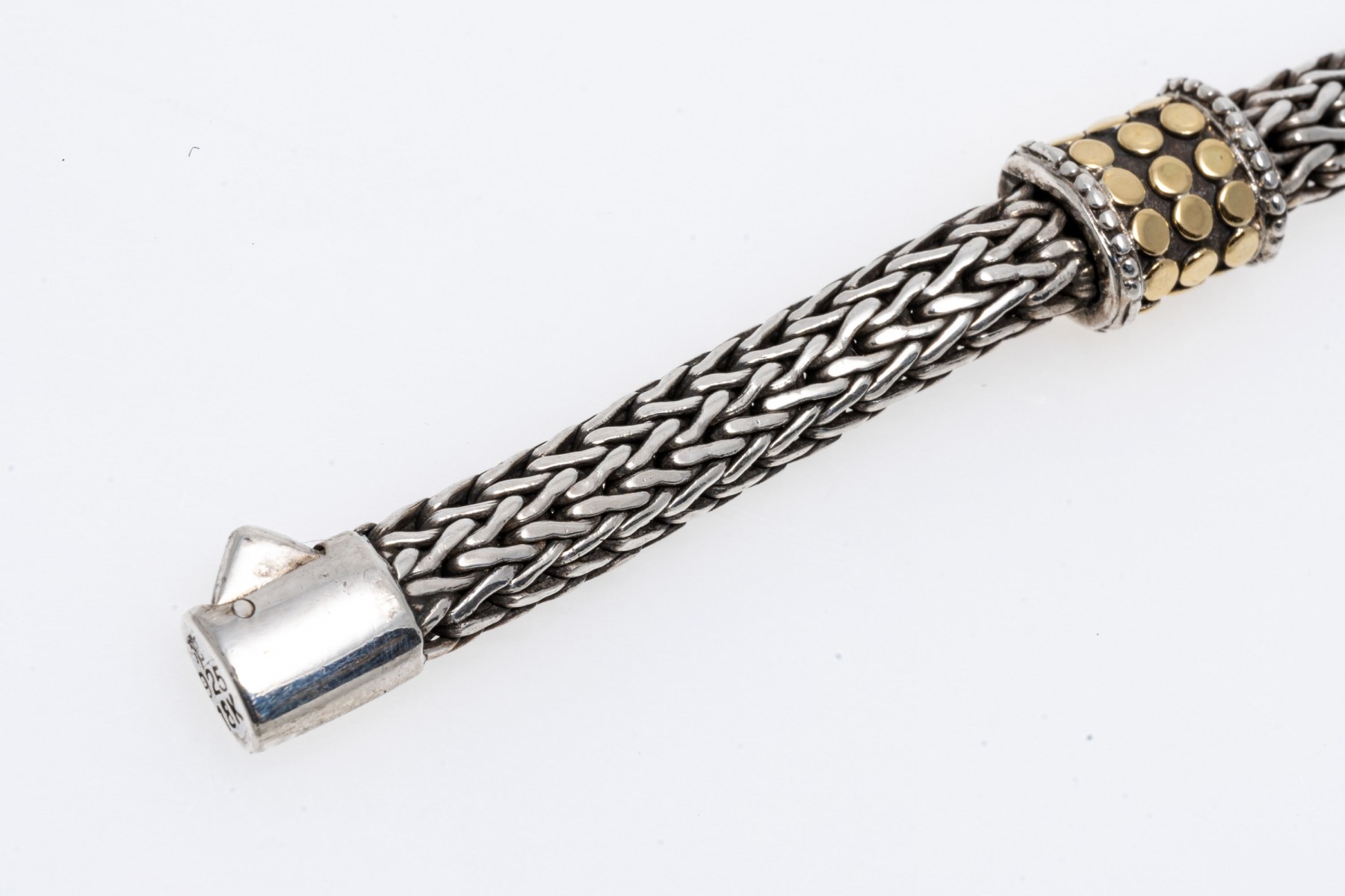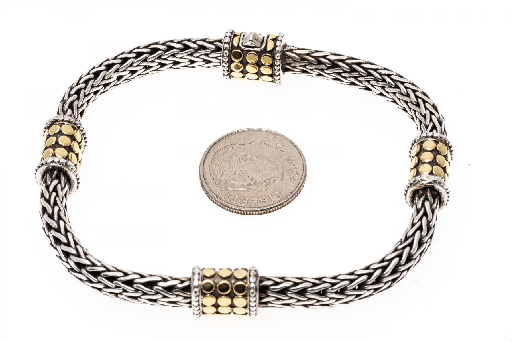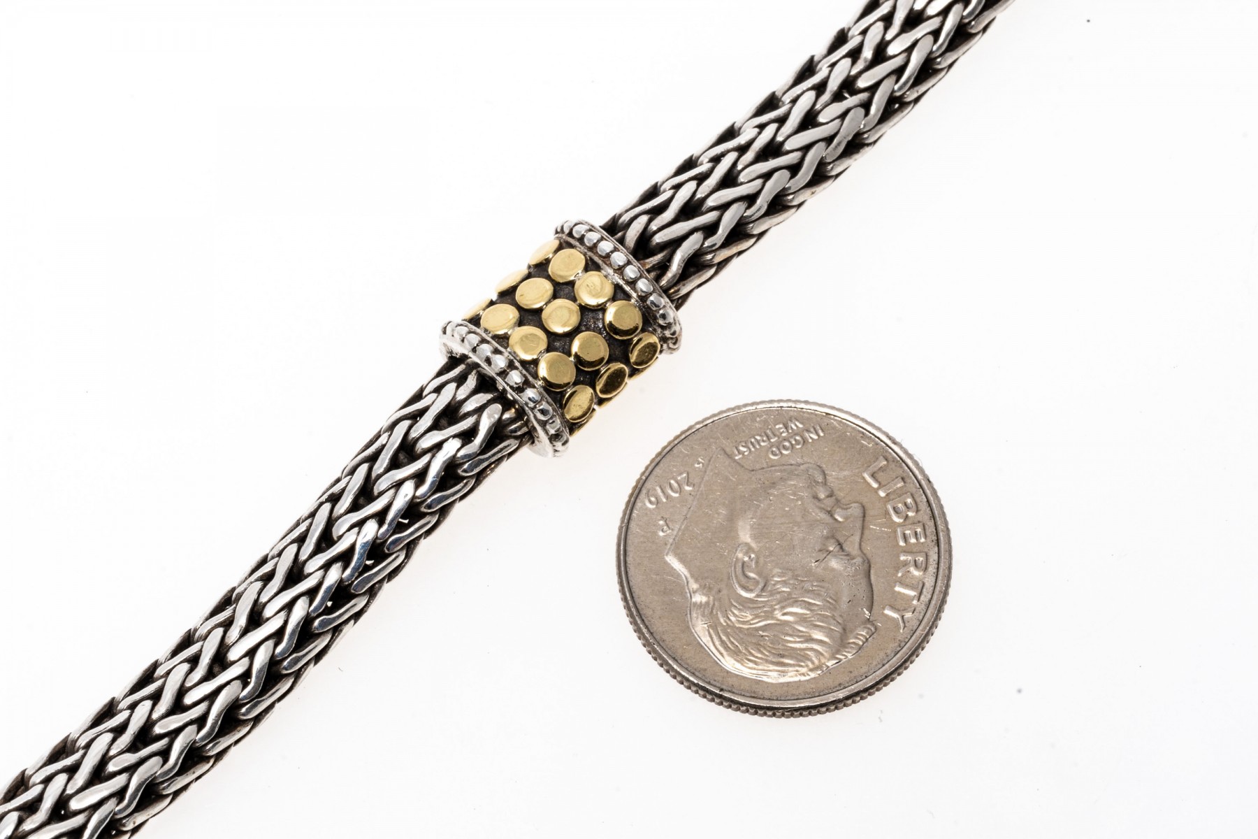 John Hardy wonderful classic sterling woven bracelet with 18k yg dot stations, finished with an 18k and sterling silver clasp