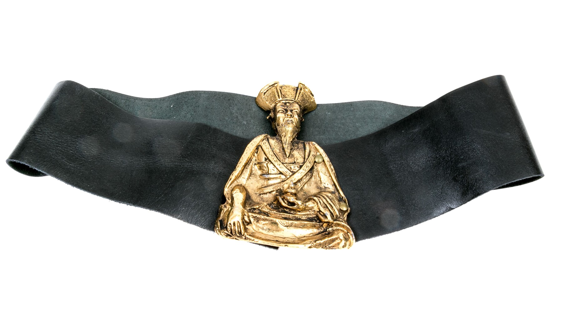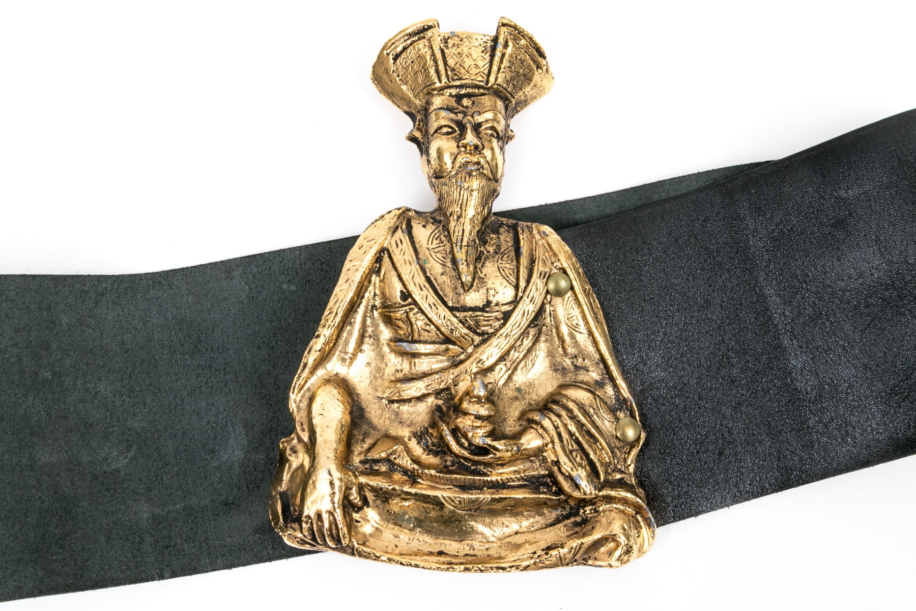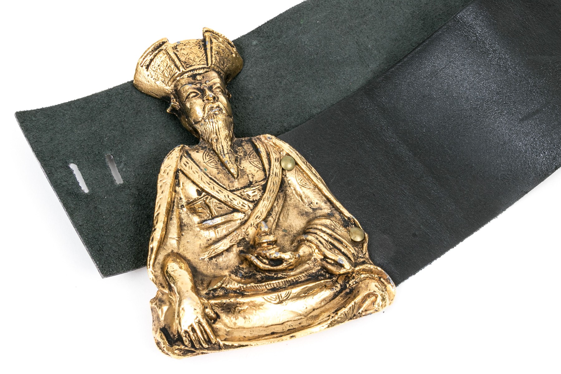 Jose cotel stunning wide vintage 70's leather belt with large Chinese scholar buckle