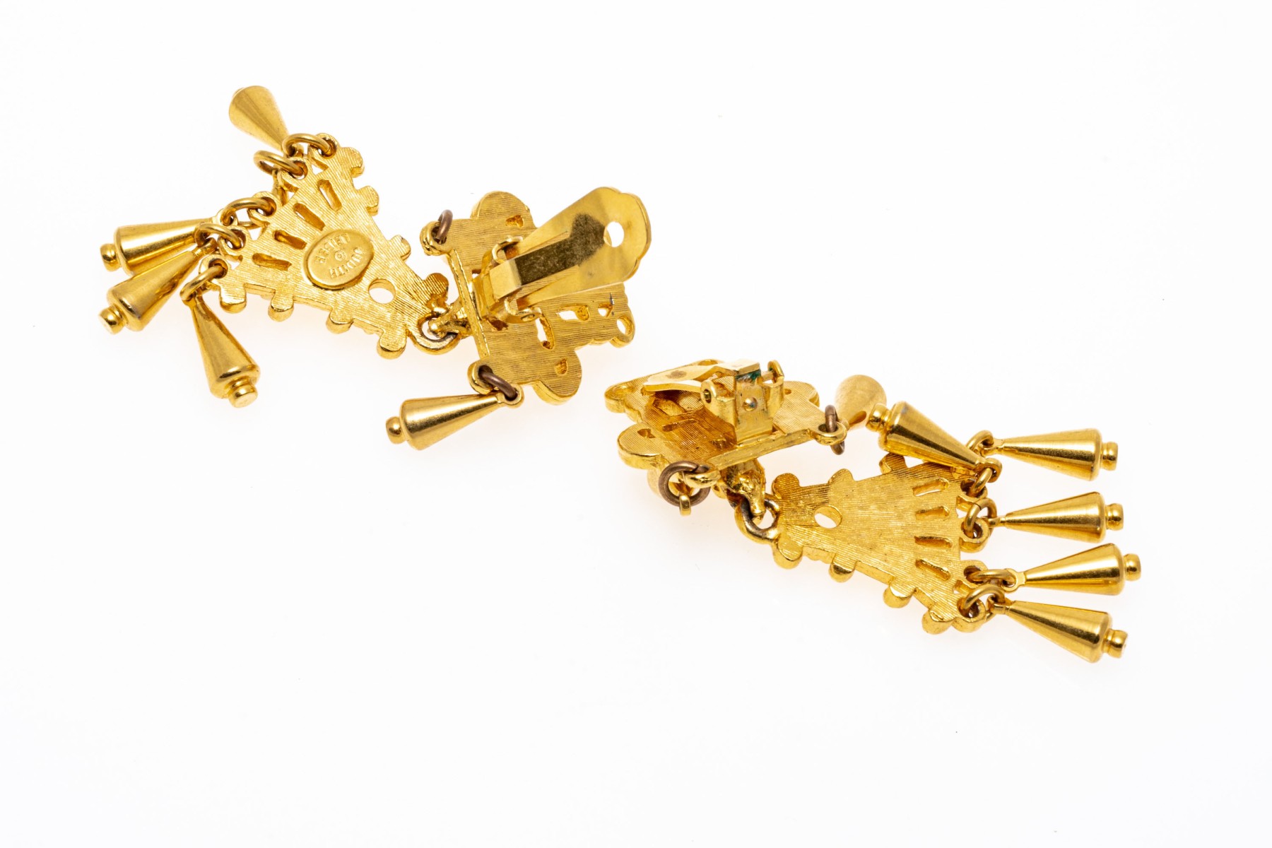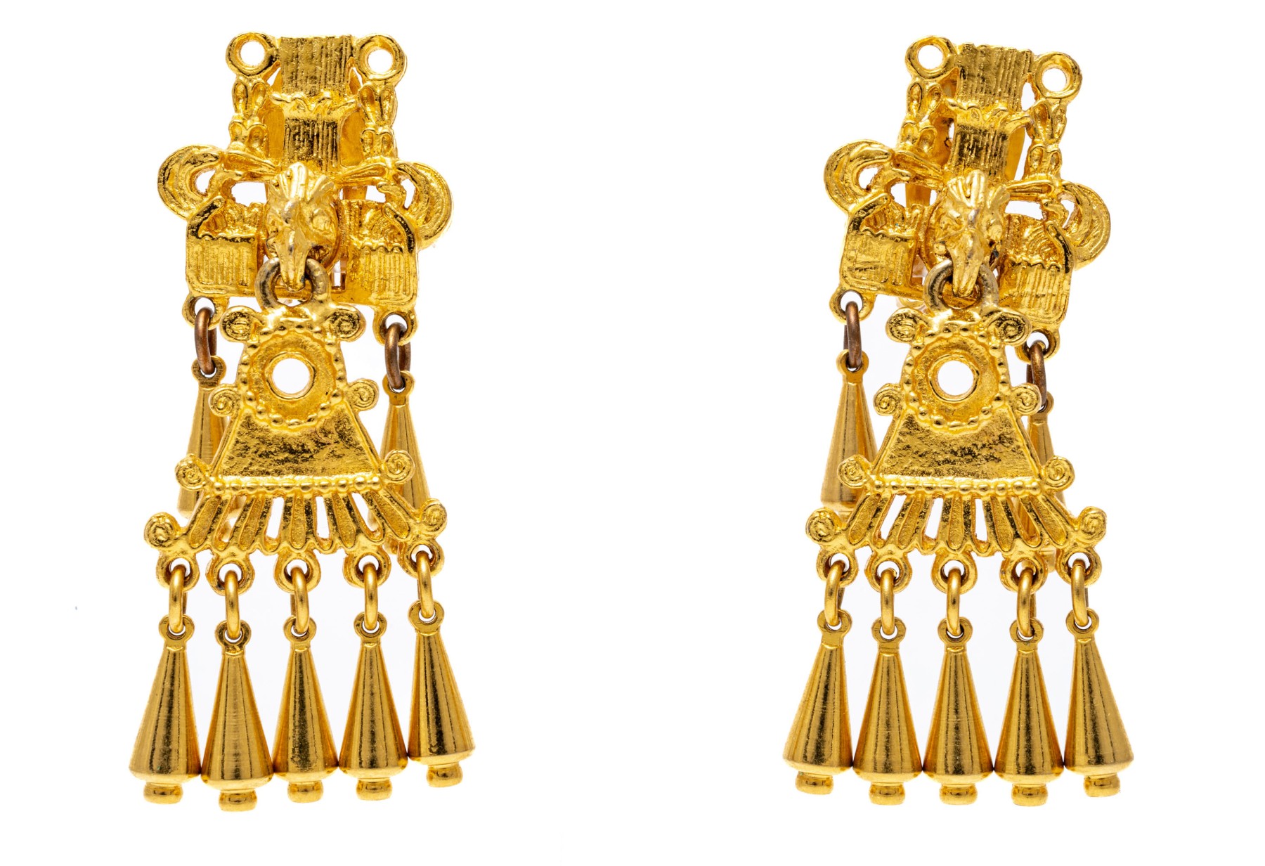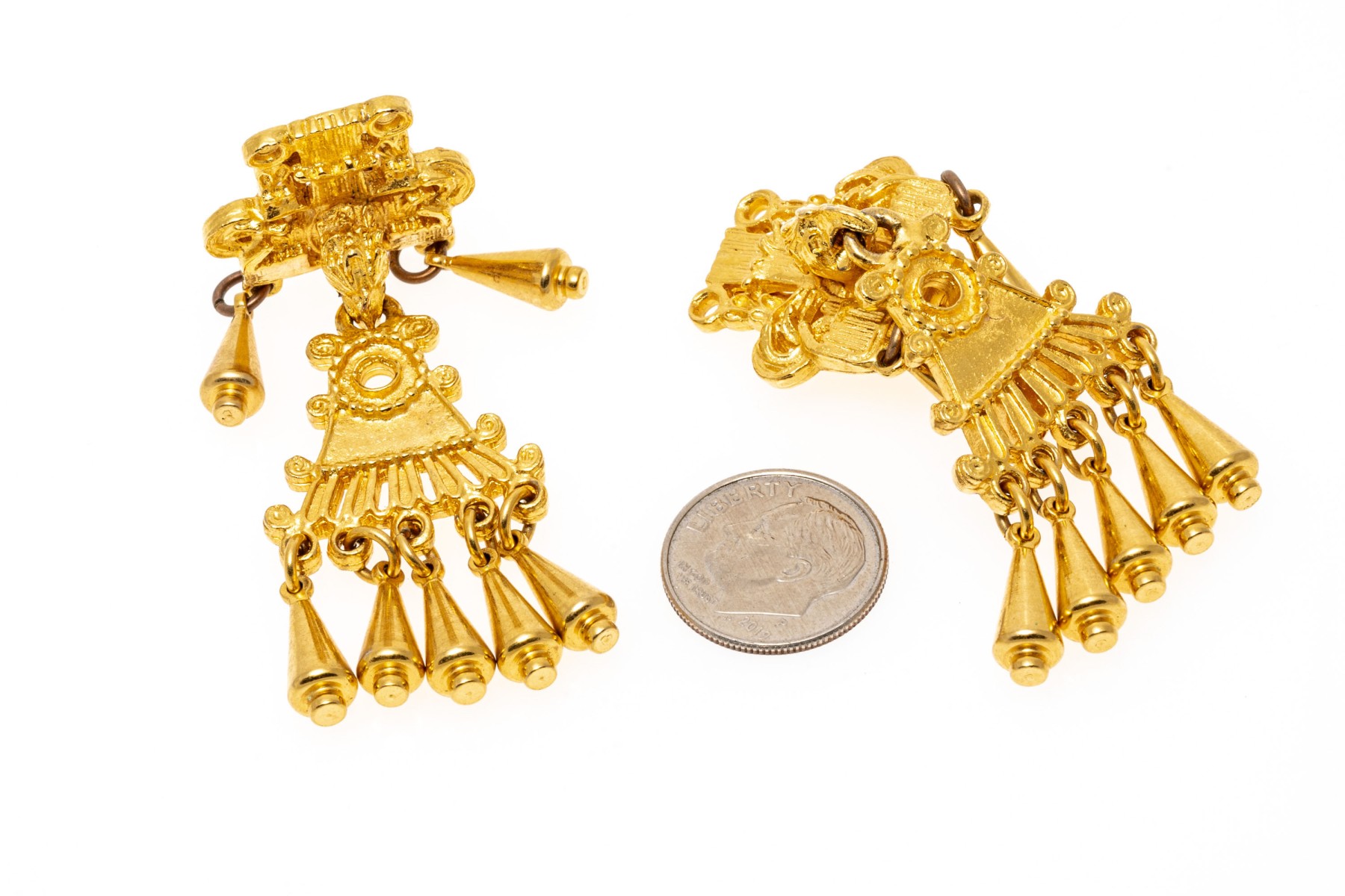 Judith Leiber fabulous vintage gold tone fringed doorknocker drop earrings, clip on style backs