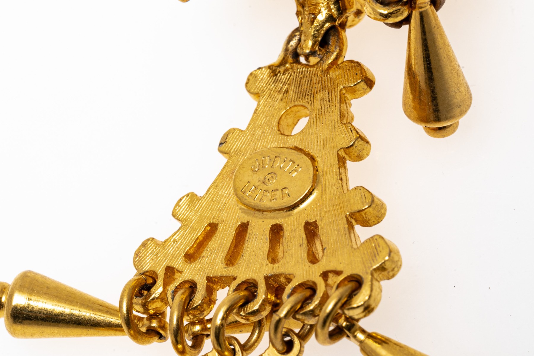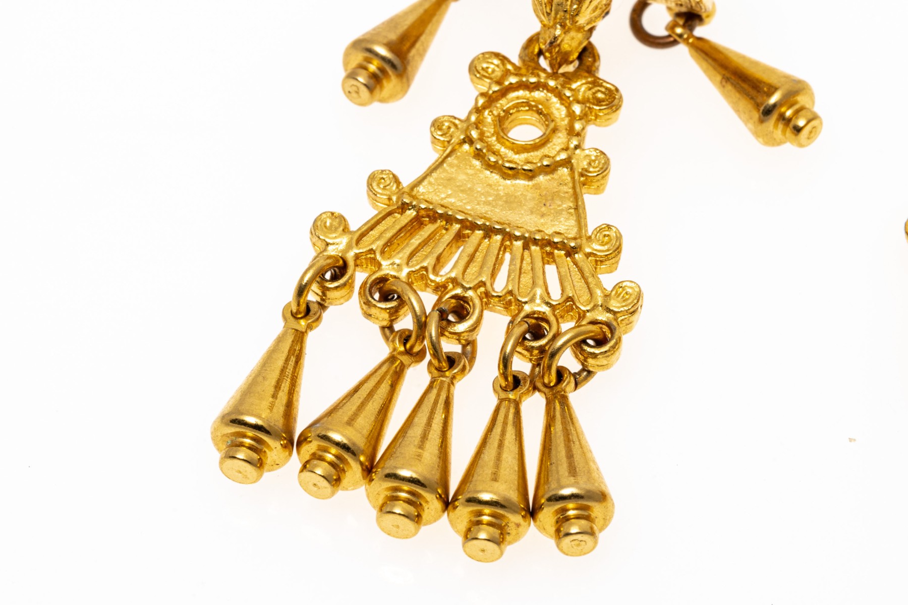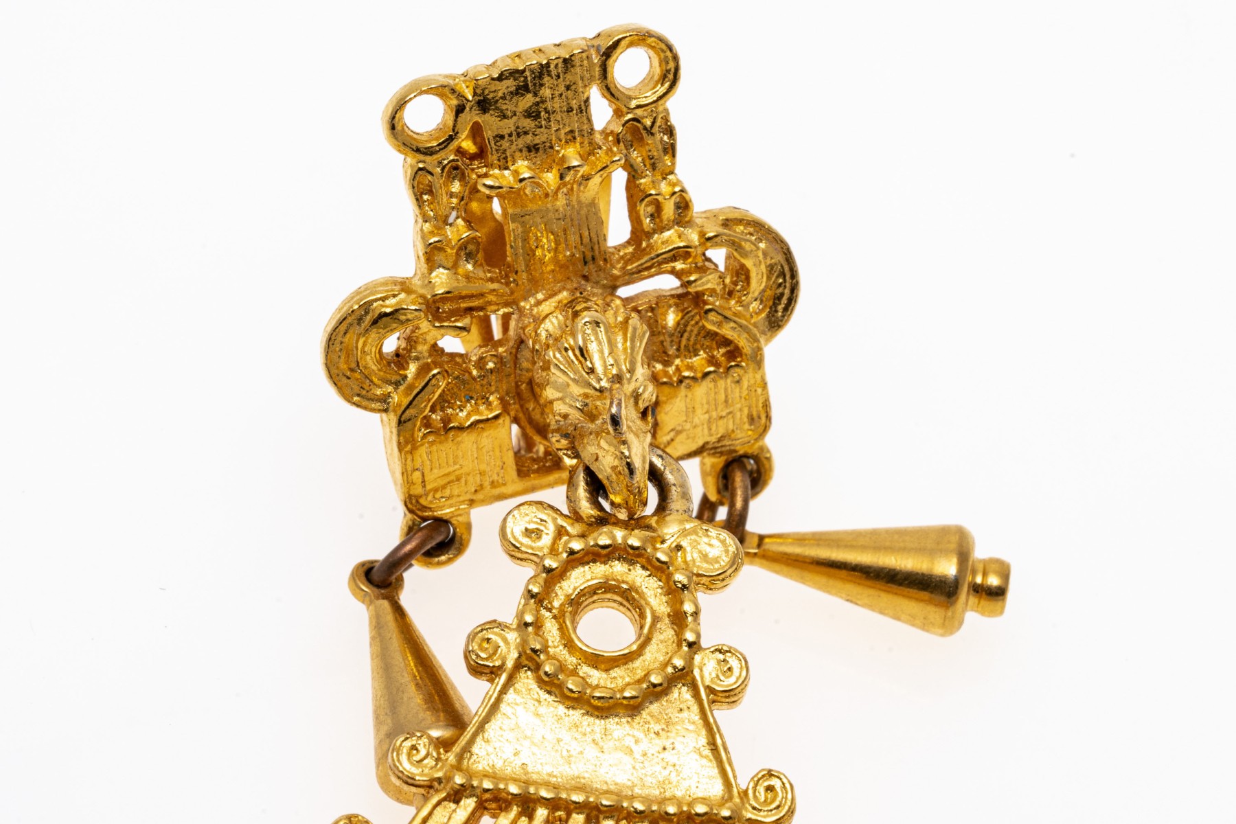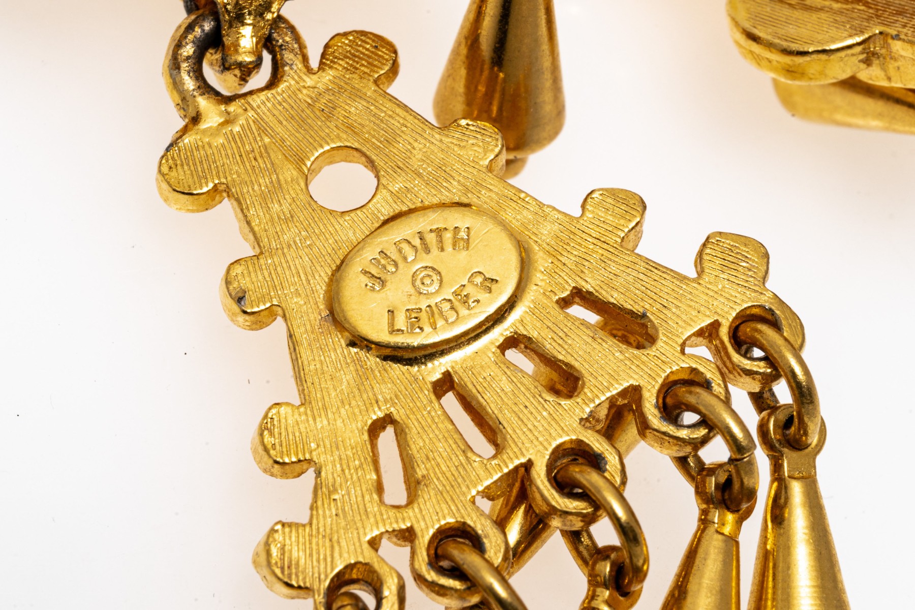 Judith Leiber fabulous vintage gold tone fringed doorknocker drop earrings, clip on style backs