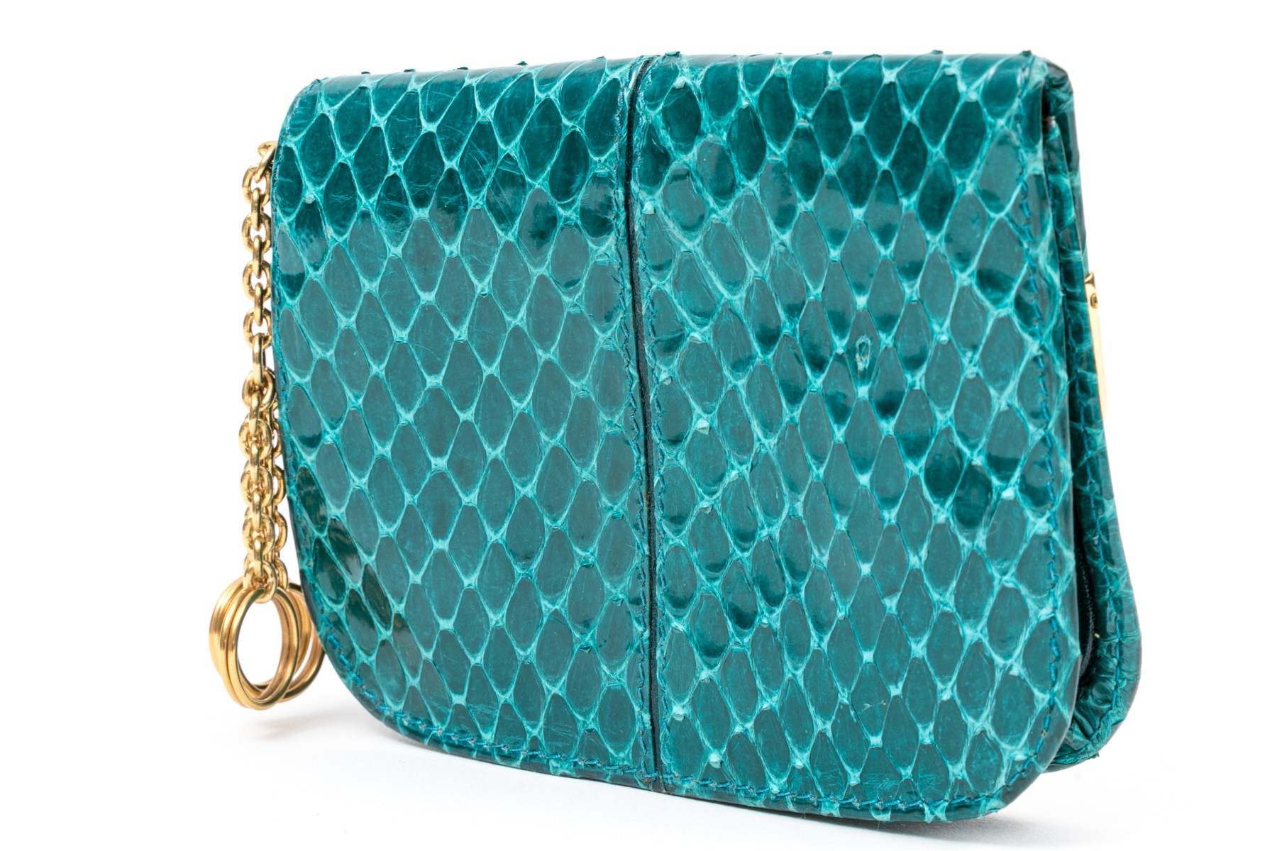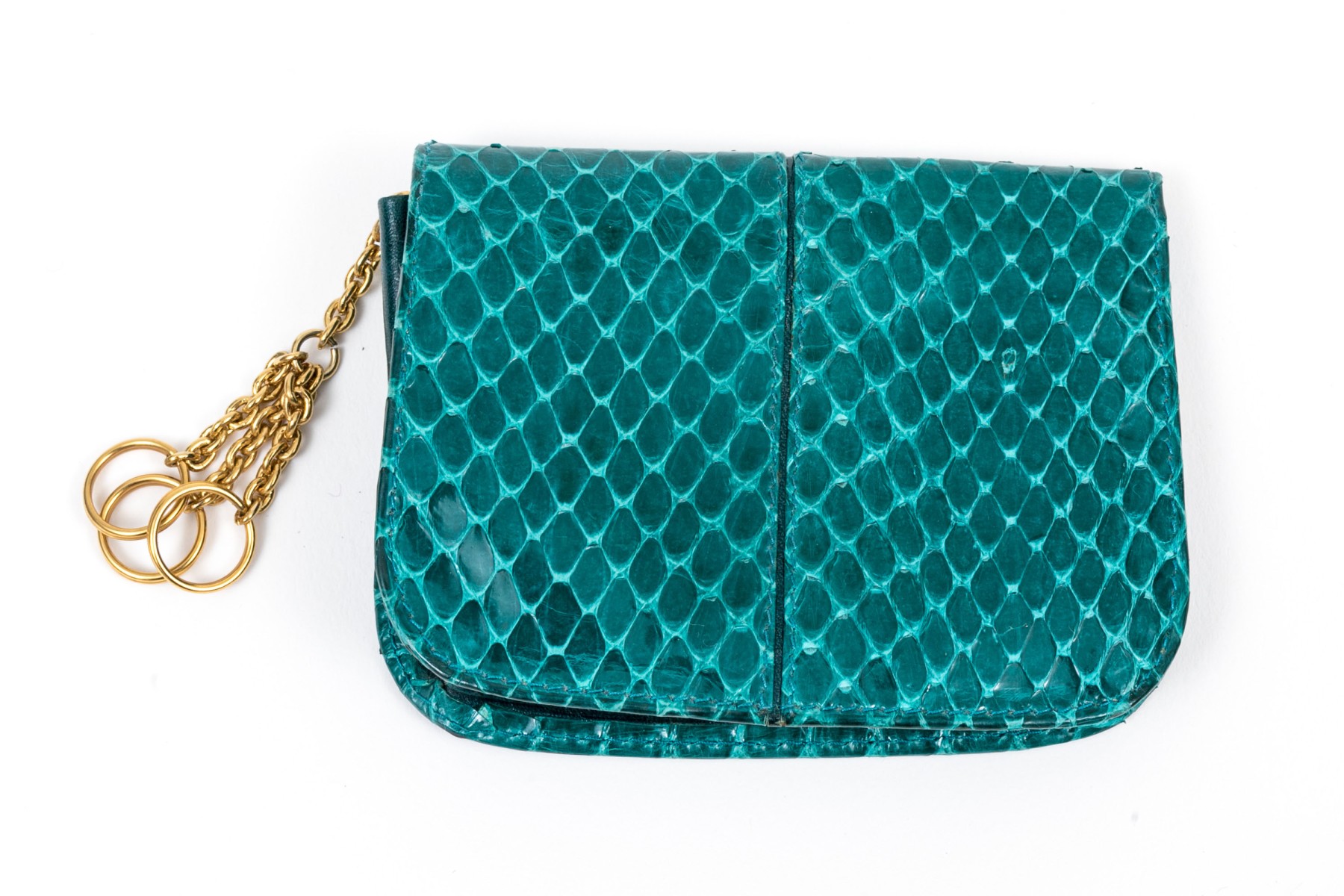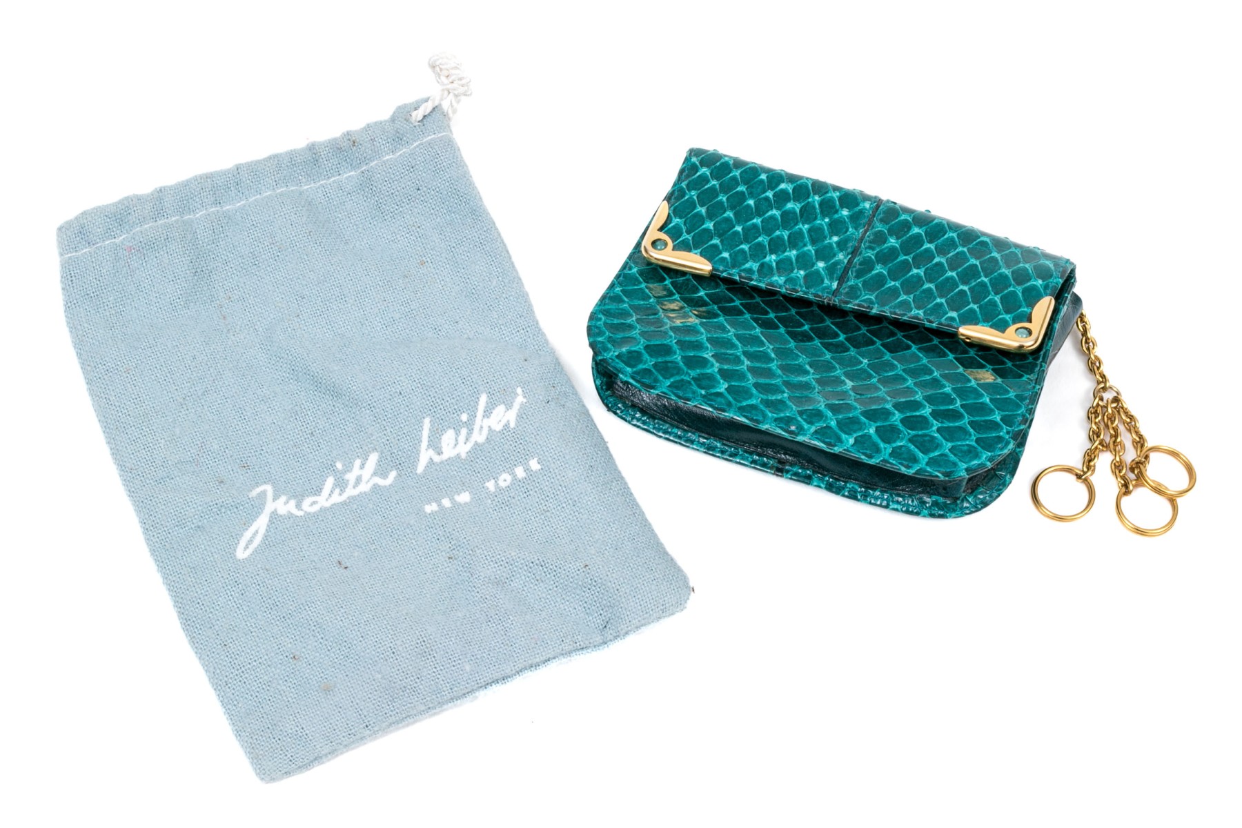 Judith Leiber handsome Teal lizard mini purse/key chain