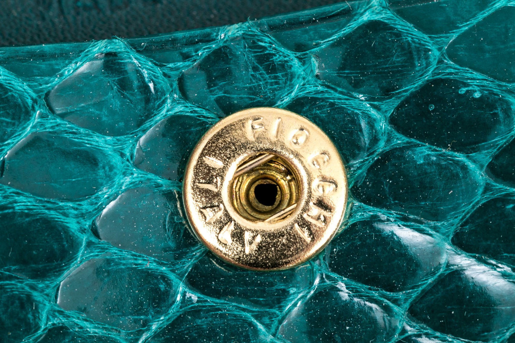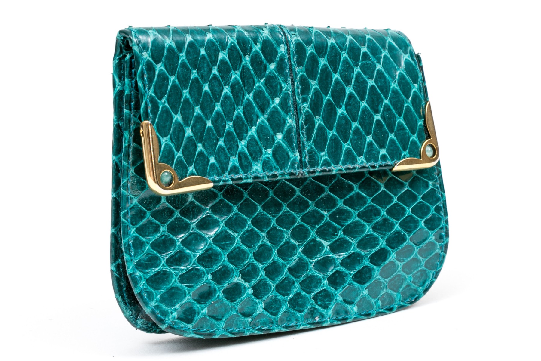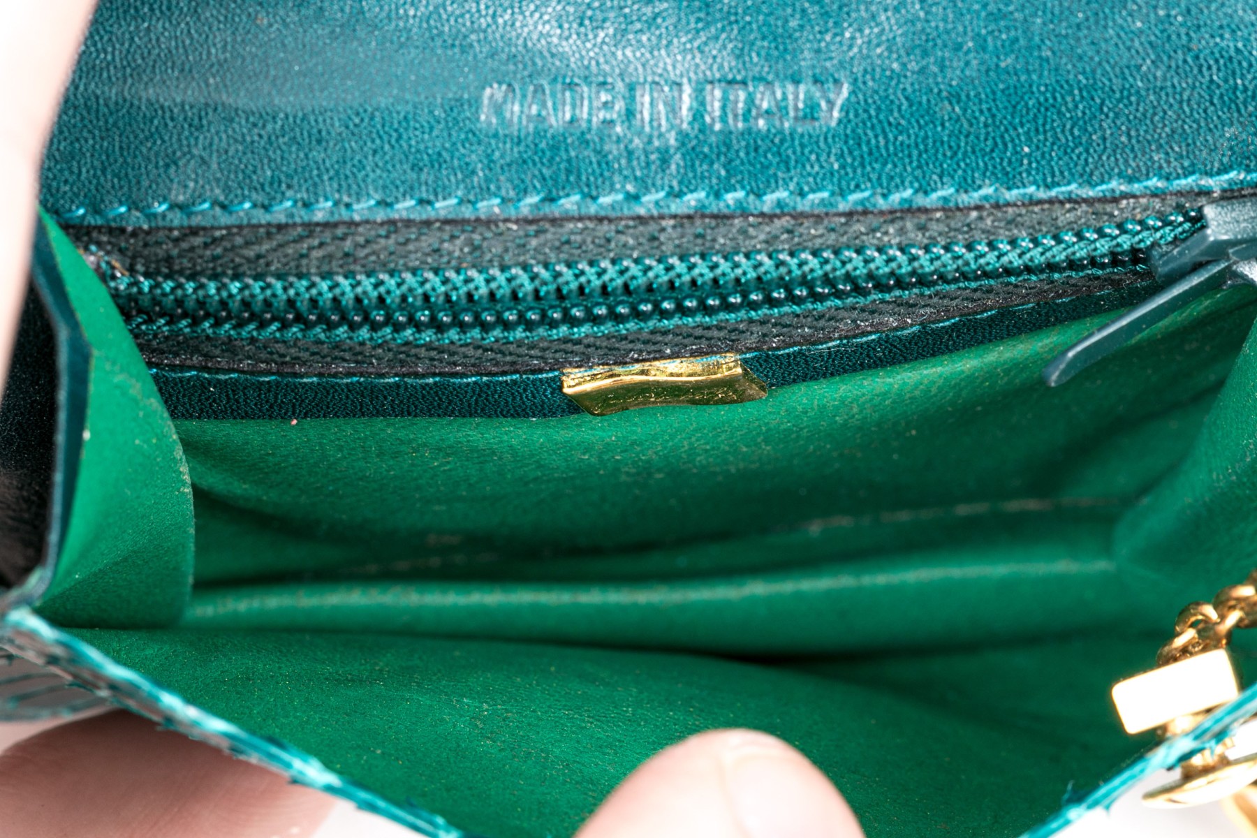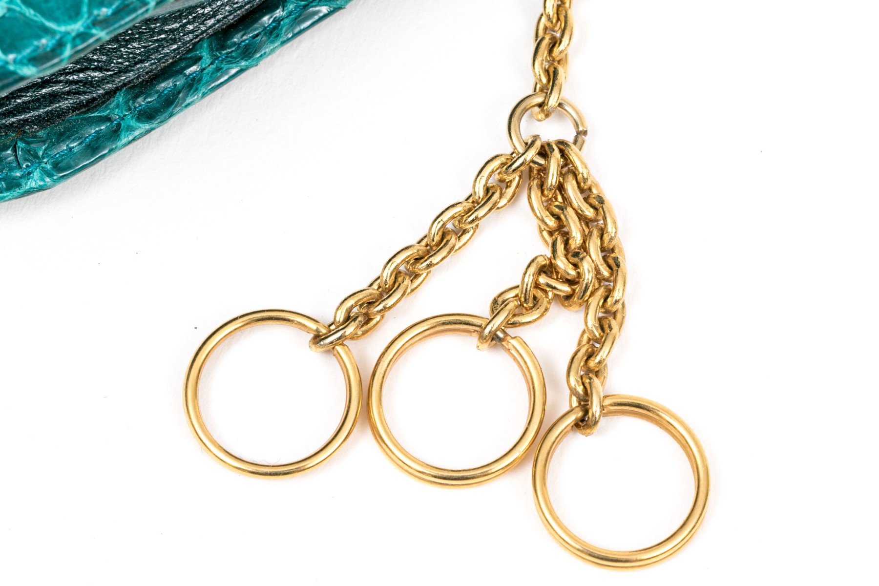 Judith Leiber handsome Teal lizard mini purse/key chain