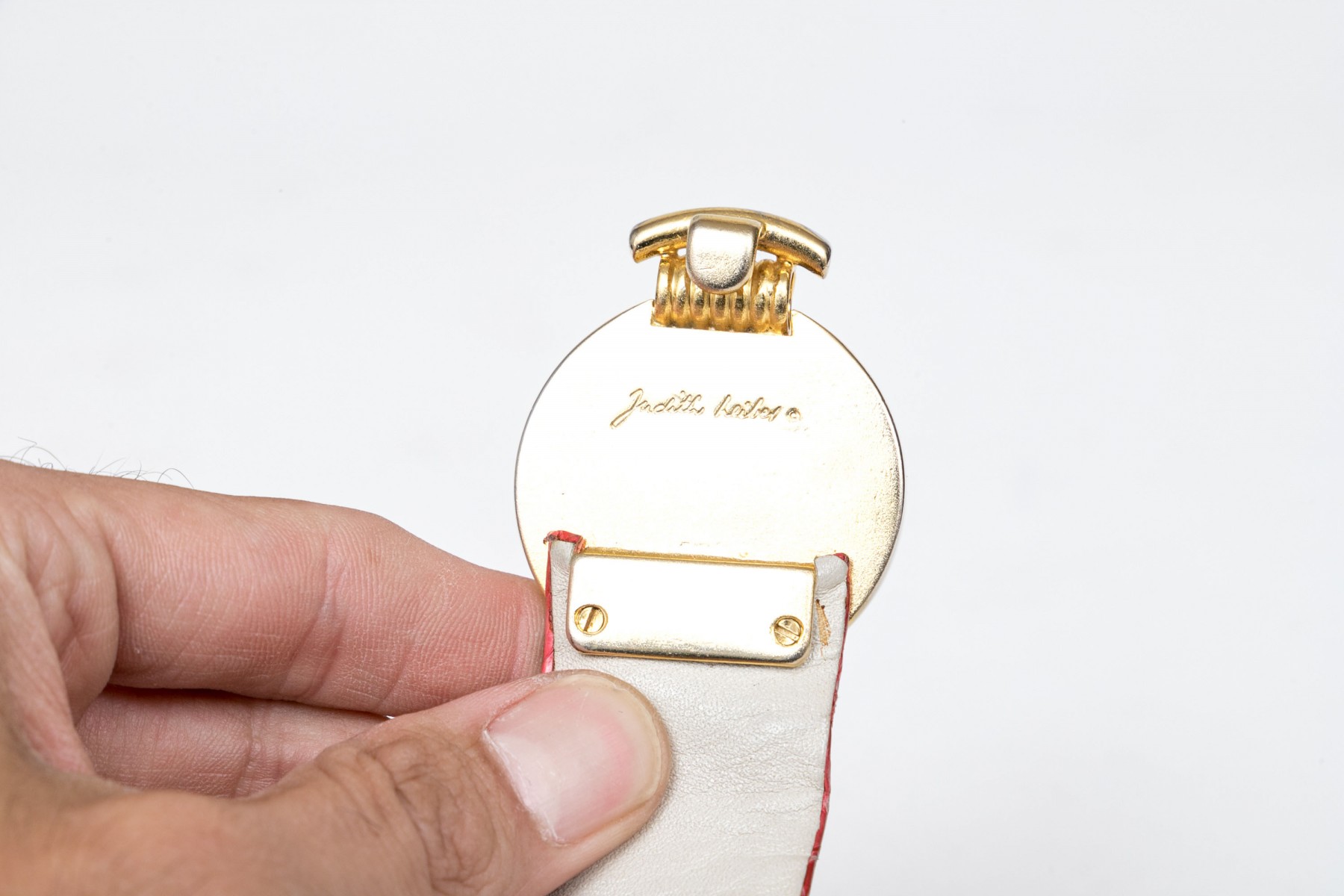 Judith Leiber striking vintage two tone faux pearl belt buckle, with belt