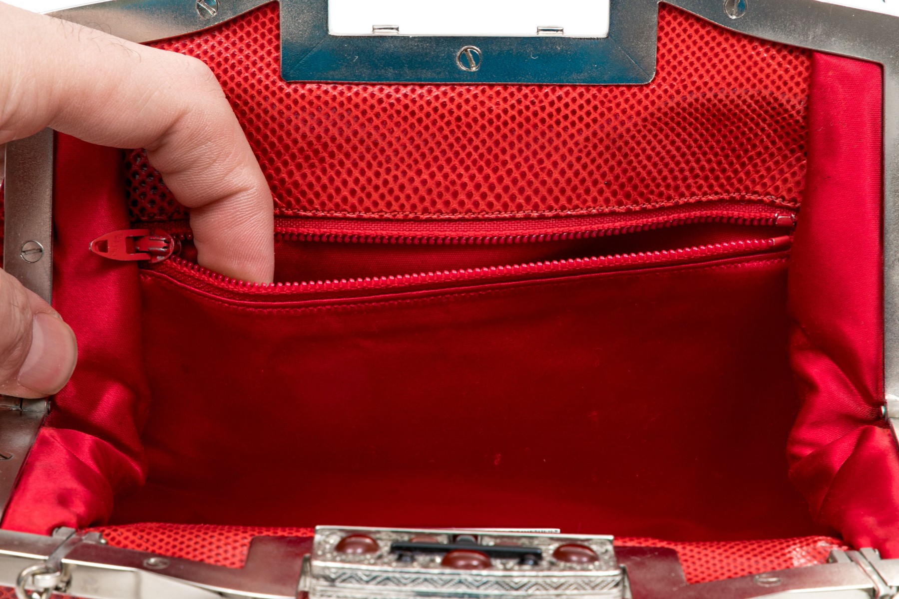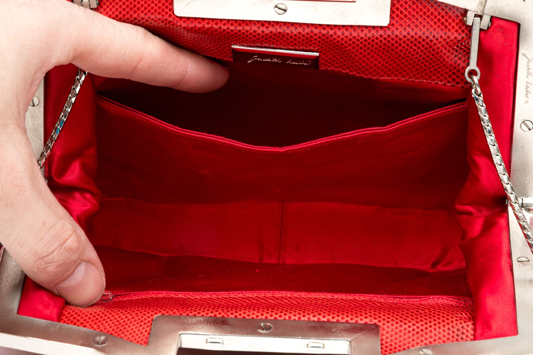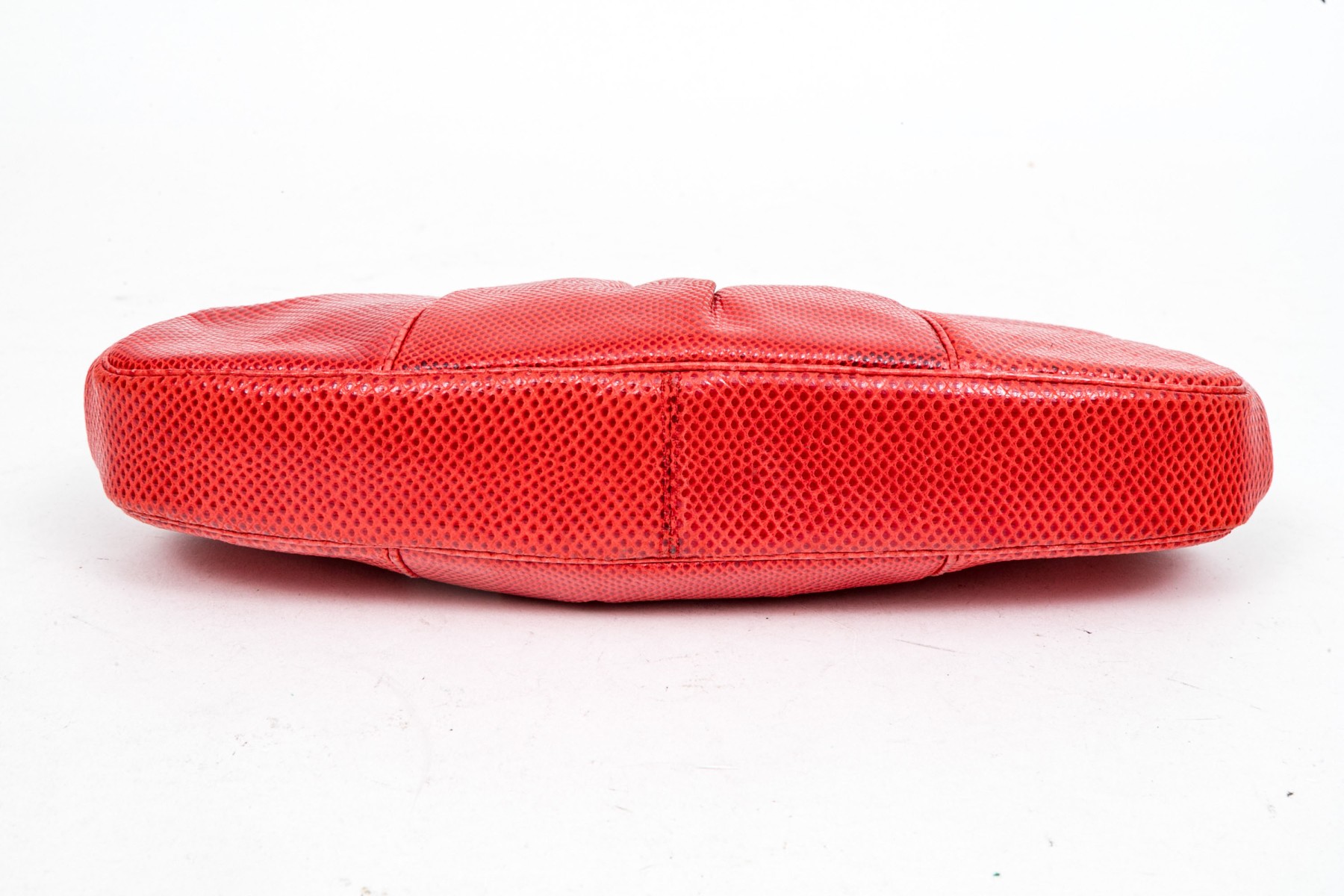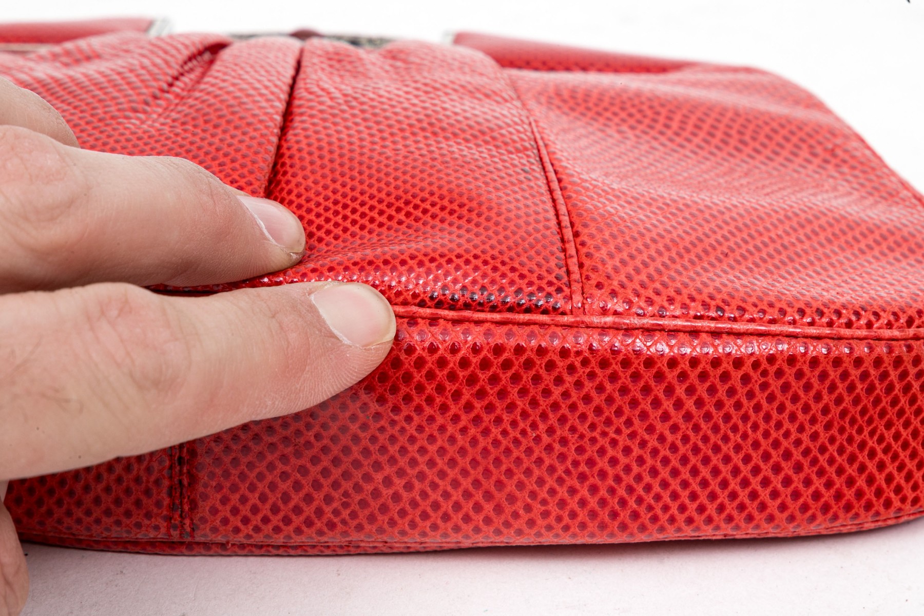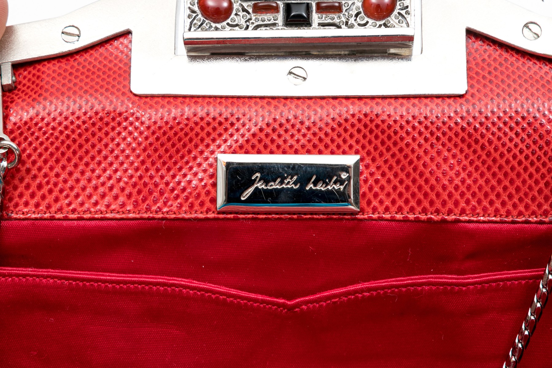 Judith Leiber stunning red pleated lizard bejeweled clutch/shoulder bag