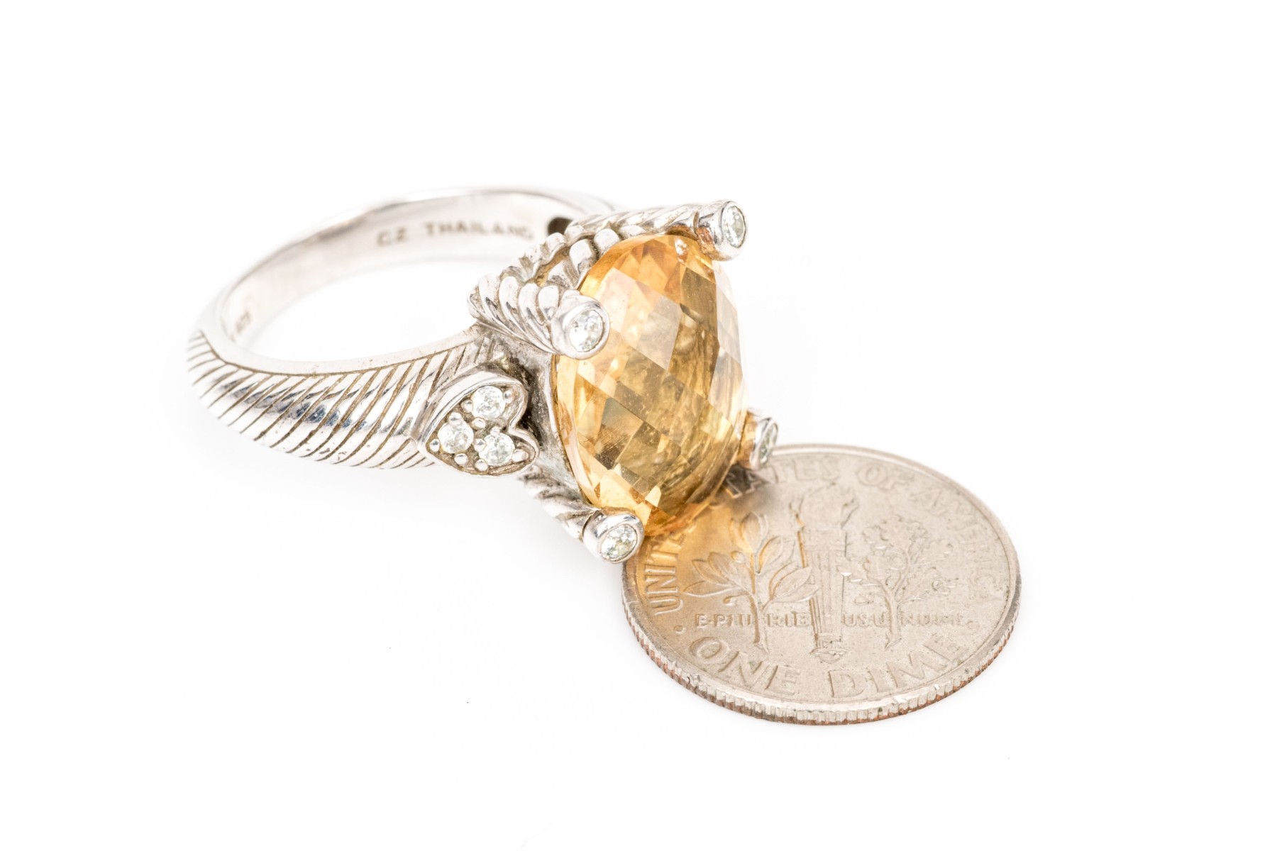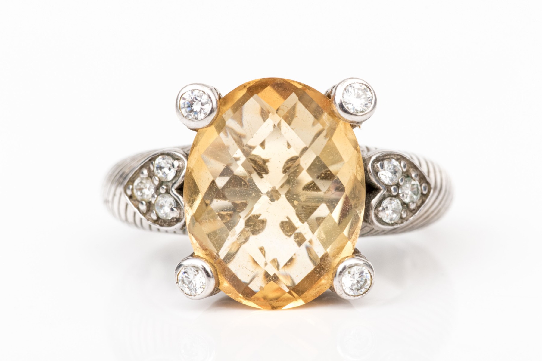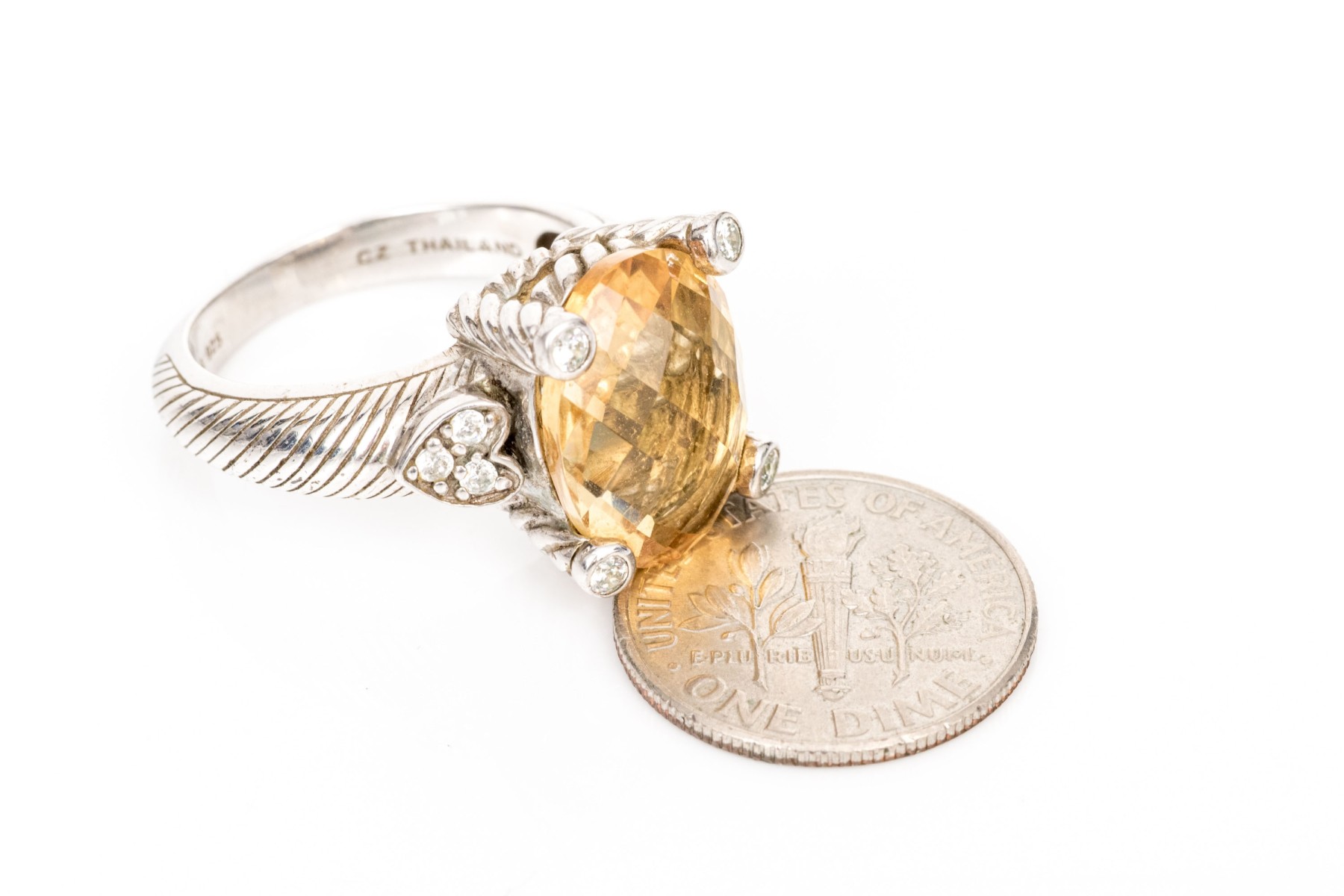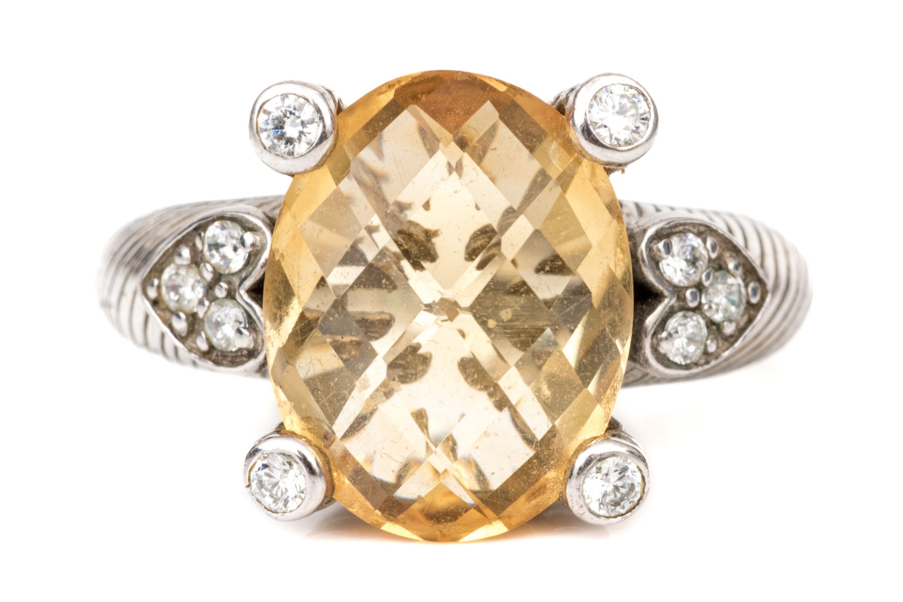 Judith Ripka sterling silver checkerboard oval citrine and cz ring, size 7