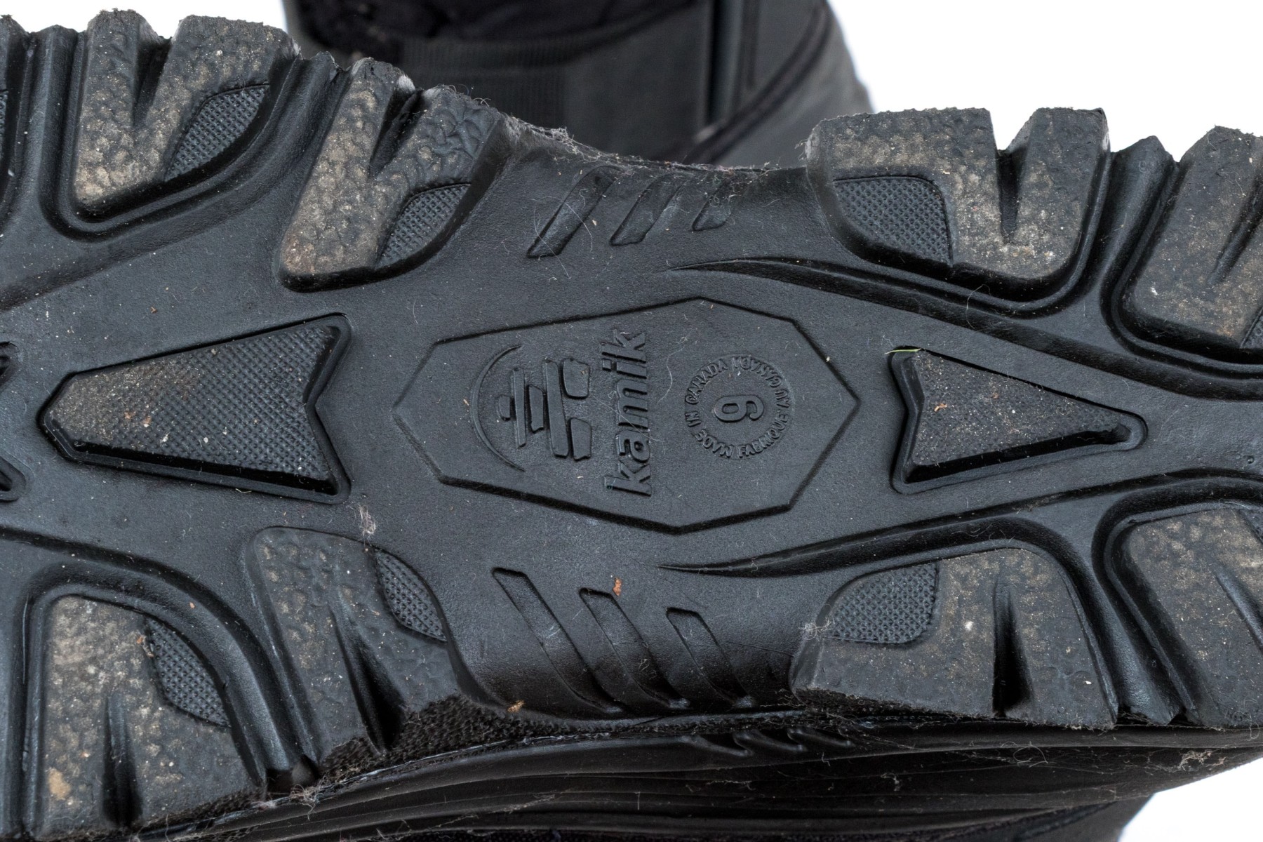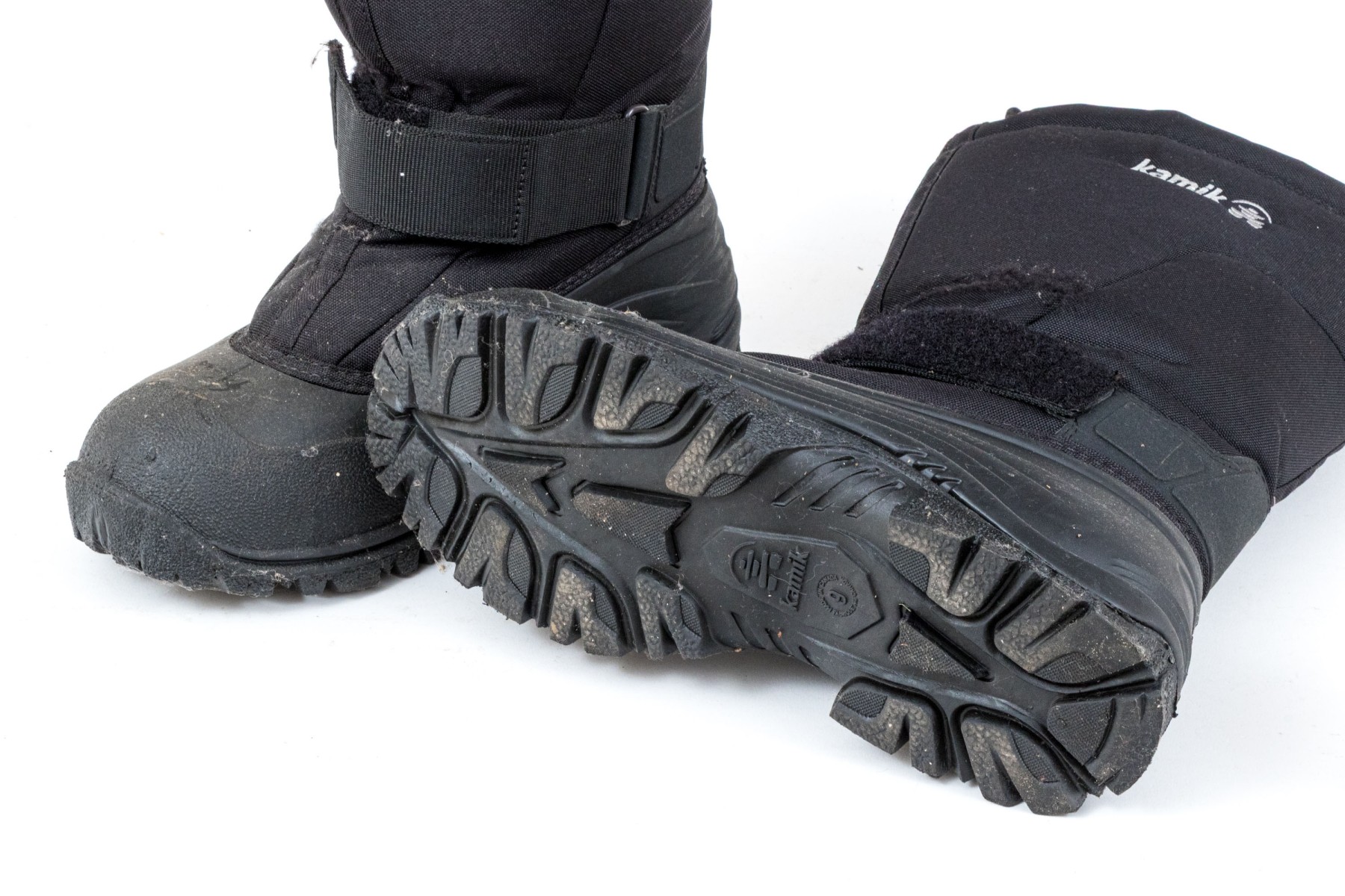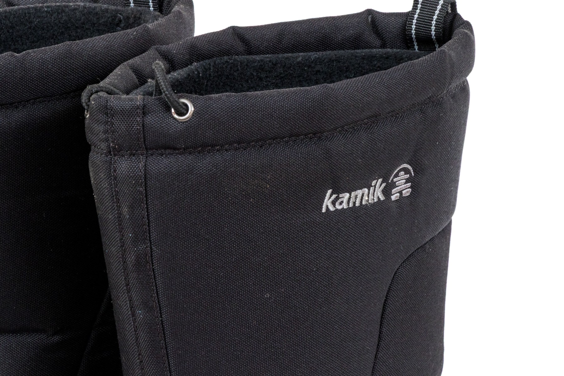 A great pair of Kamik Greenbay winter boots designed with drawstrings at the top rim and velcro straps at the front ankles for a snug fit in comfortable nylon, and lower heels and toes in sturdy black rubber.
