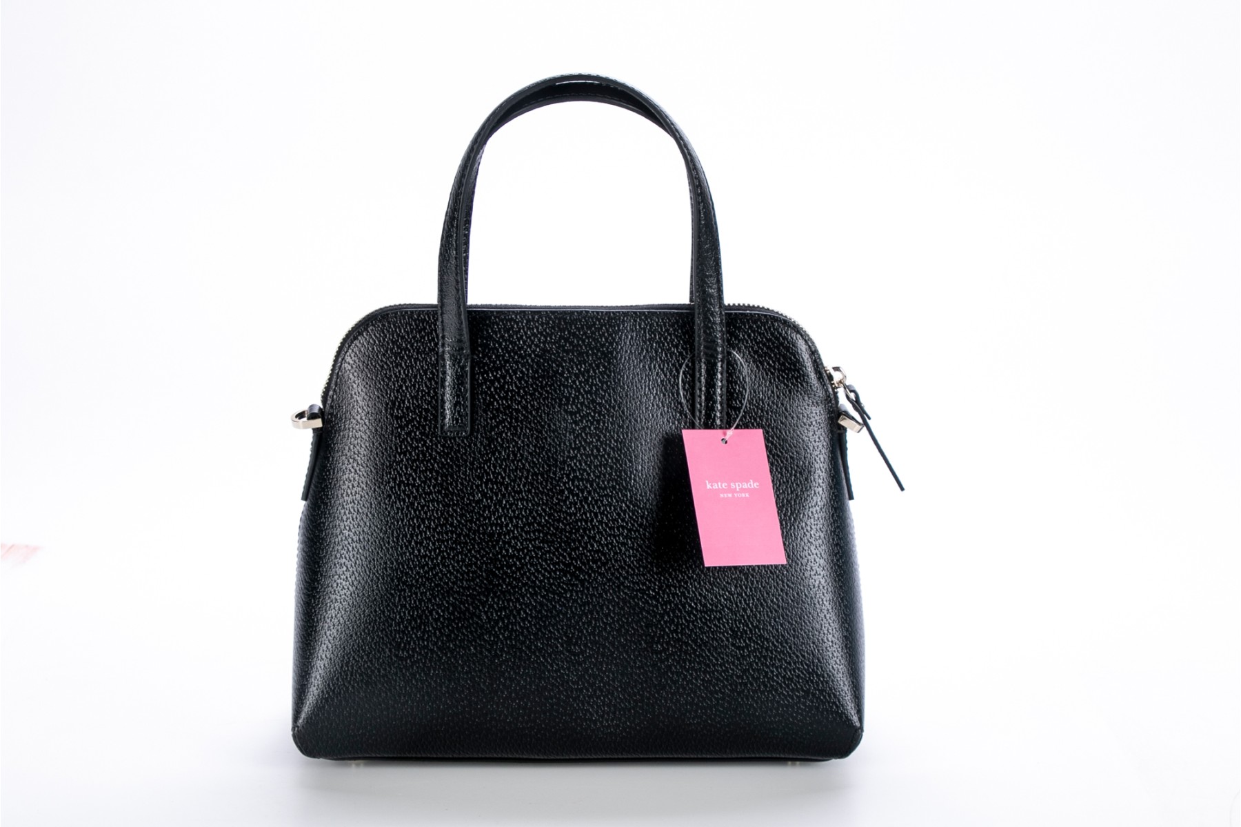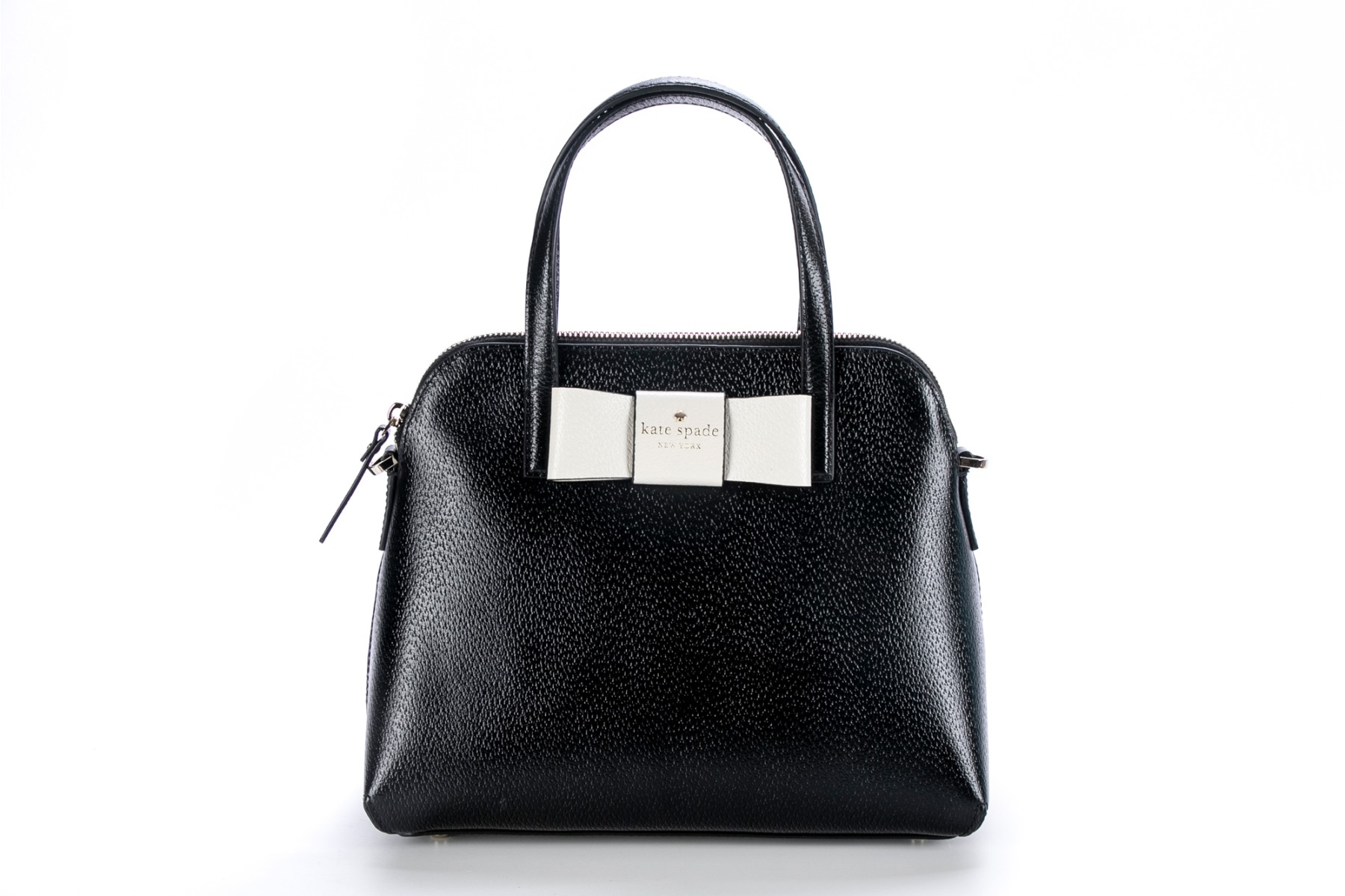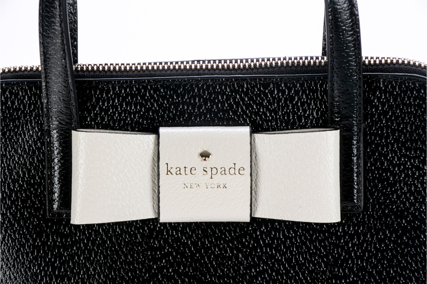 Kate Spade Matthews Street black leather and white bow top handle bag, NWT, retail $328