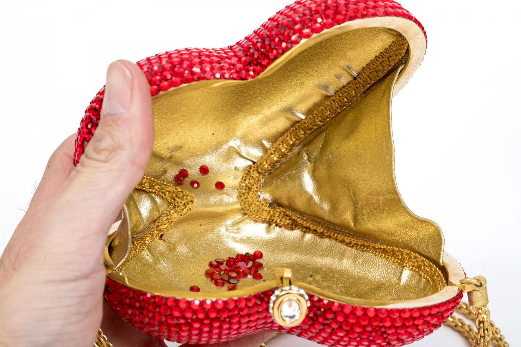 Condition: Some of the rhinestones have fallen off and the interior is worn.