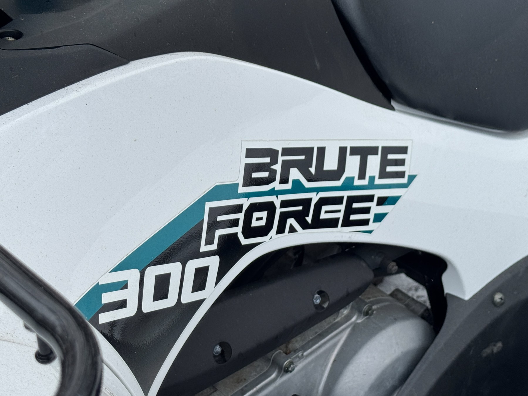 A fantastic Kawasaki Brute Force 300 in crisp white with eye-catching teal and black details. Features a 271cc, liquid-cooled, 4-stroke engine and CVT with HI/LO ranges and reverse with centrifugal clutch.