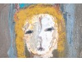 One signed Kelly on verso. Torso portrait of a blond female figure wearing a crown under a blue crescent moon.