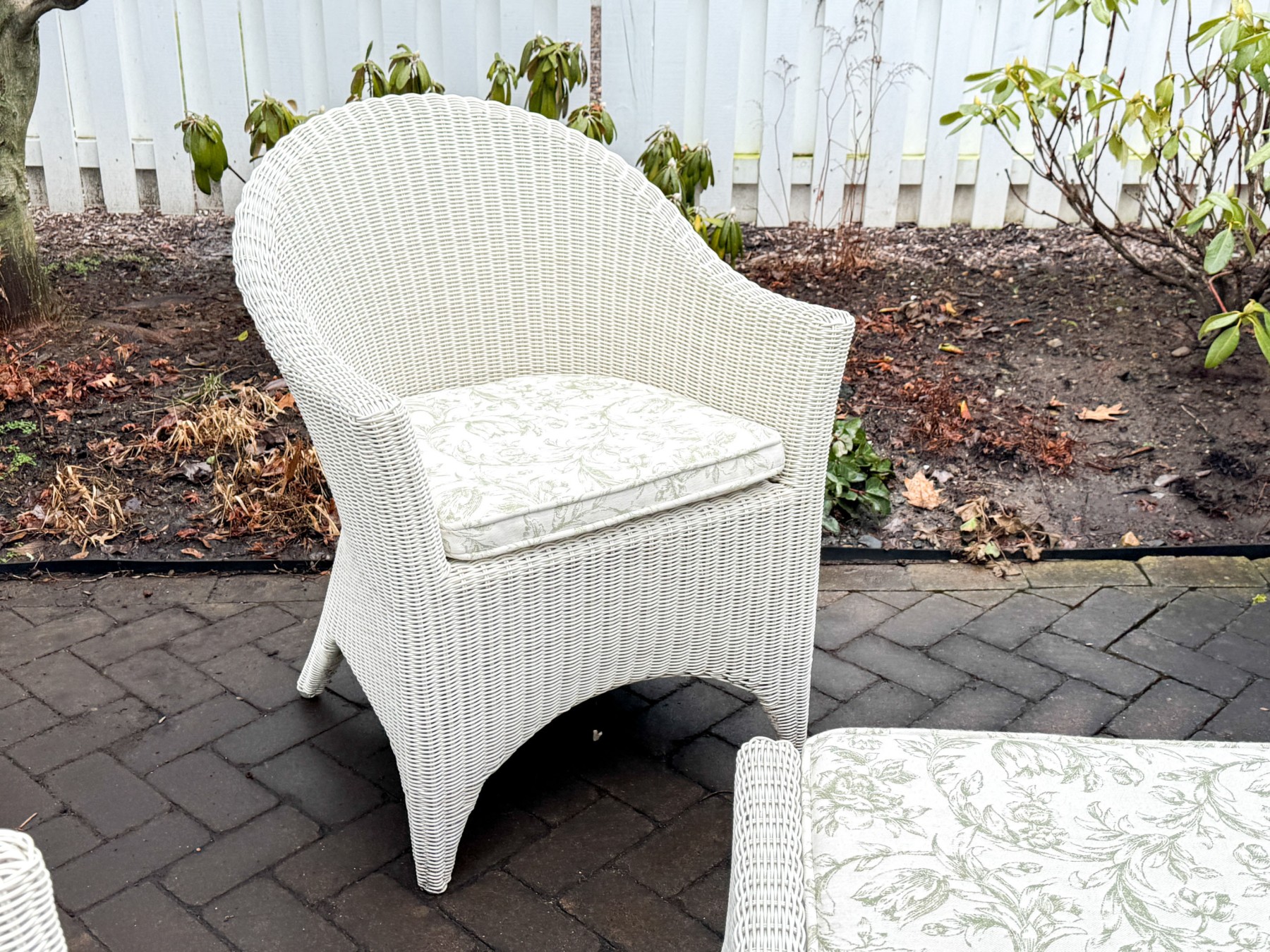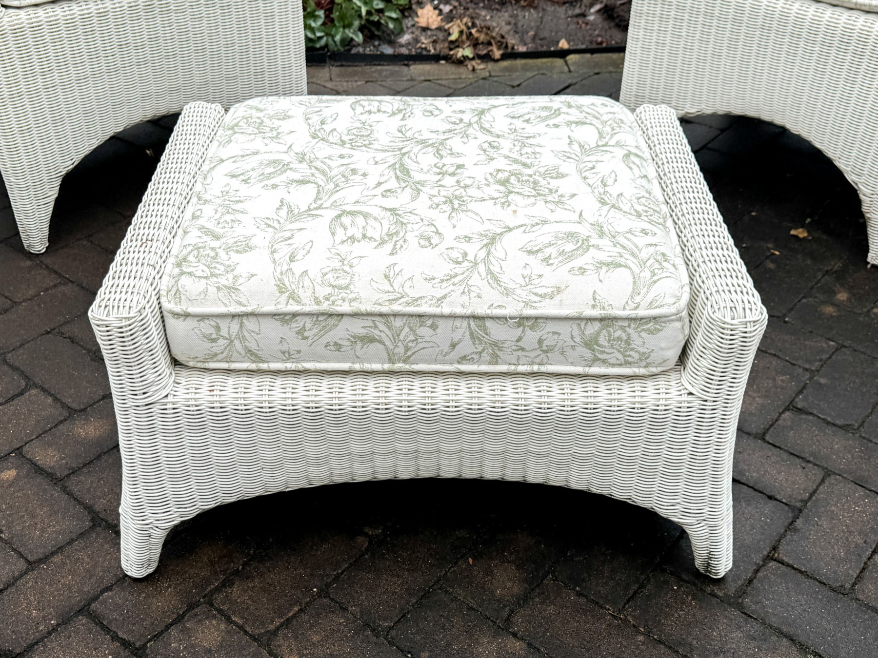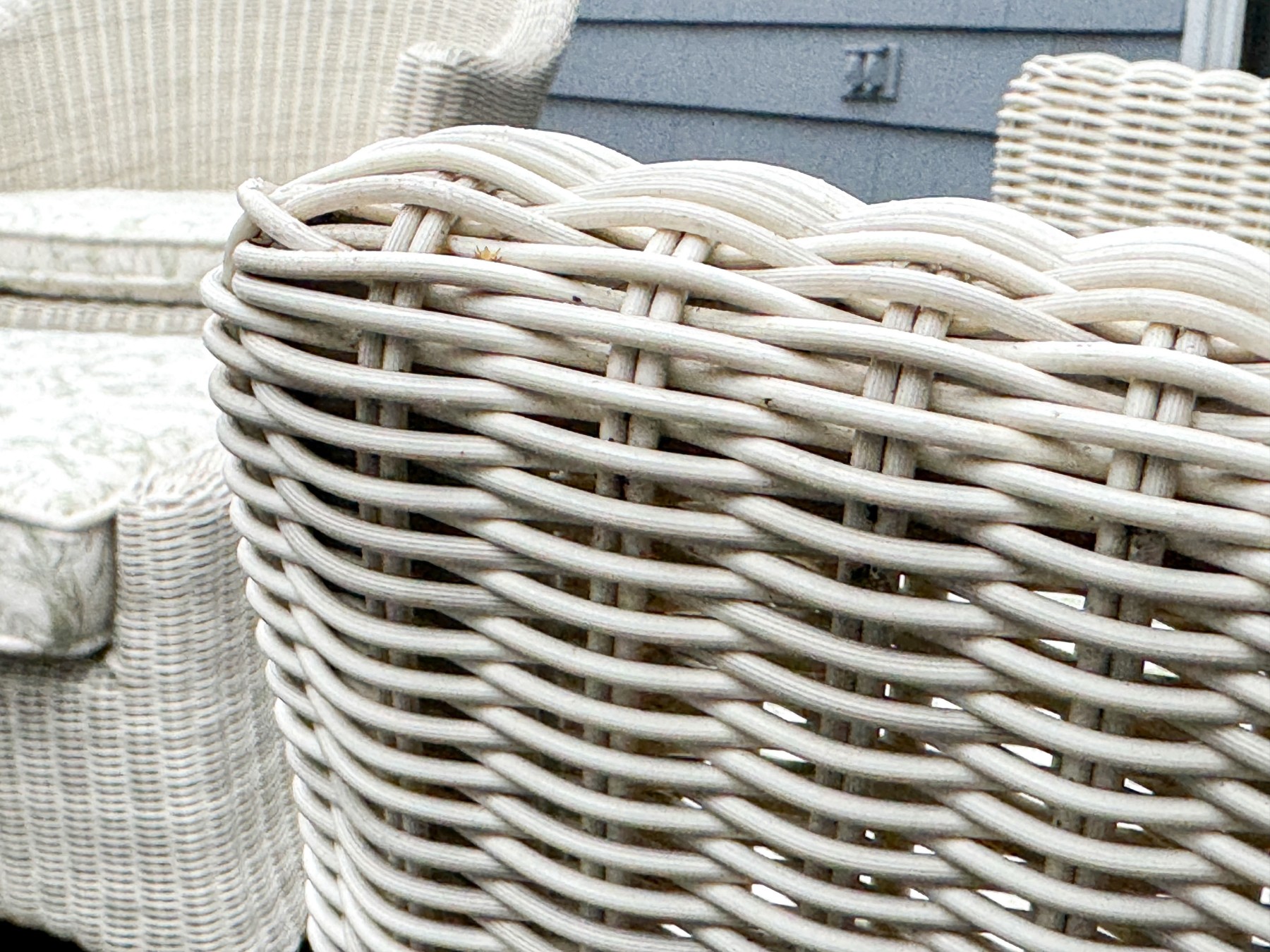 Condition: Wear includes minor breaks to the wicker along with minor stains which likely could be cleaned. Wear is commensurate with some age and modest use outdoors. Sure to make a fantastic addition to any outdoor or indoor/outdoor setting.