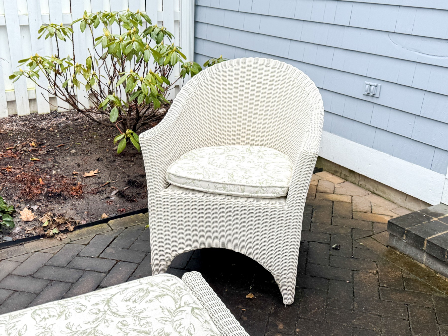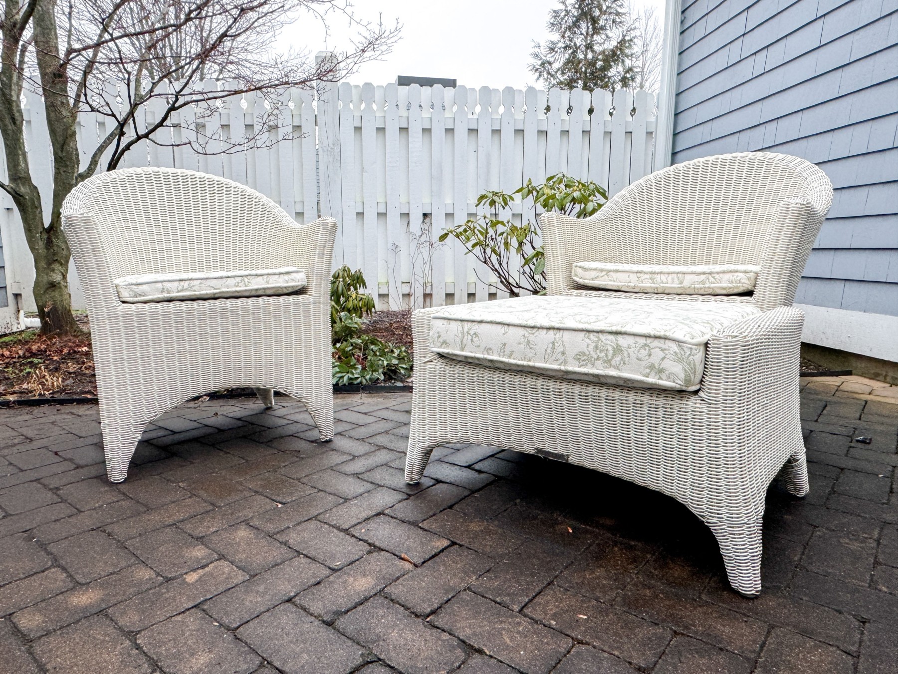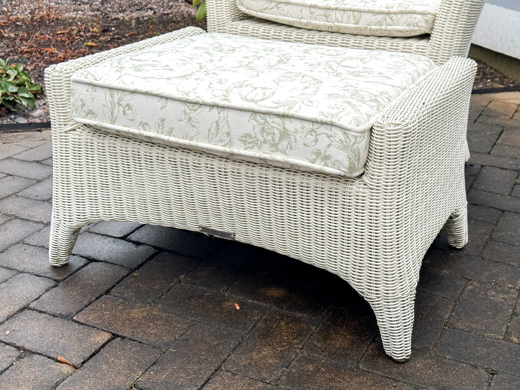 Condition: Wear includes minor breaks to the wicker along with minor stains which likely could be cleaned. Wear is commensurate with some age and modest use outdoors. Sure to make a fantastic addition to any outdoor or indoor/outdoor setting.