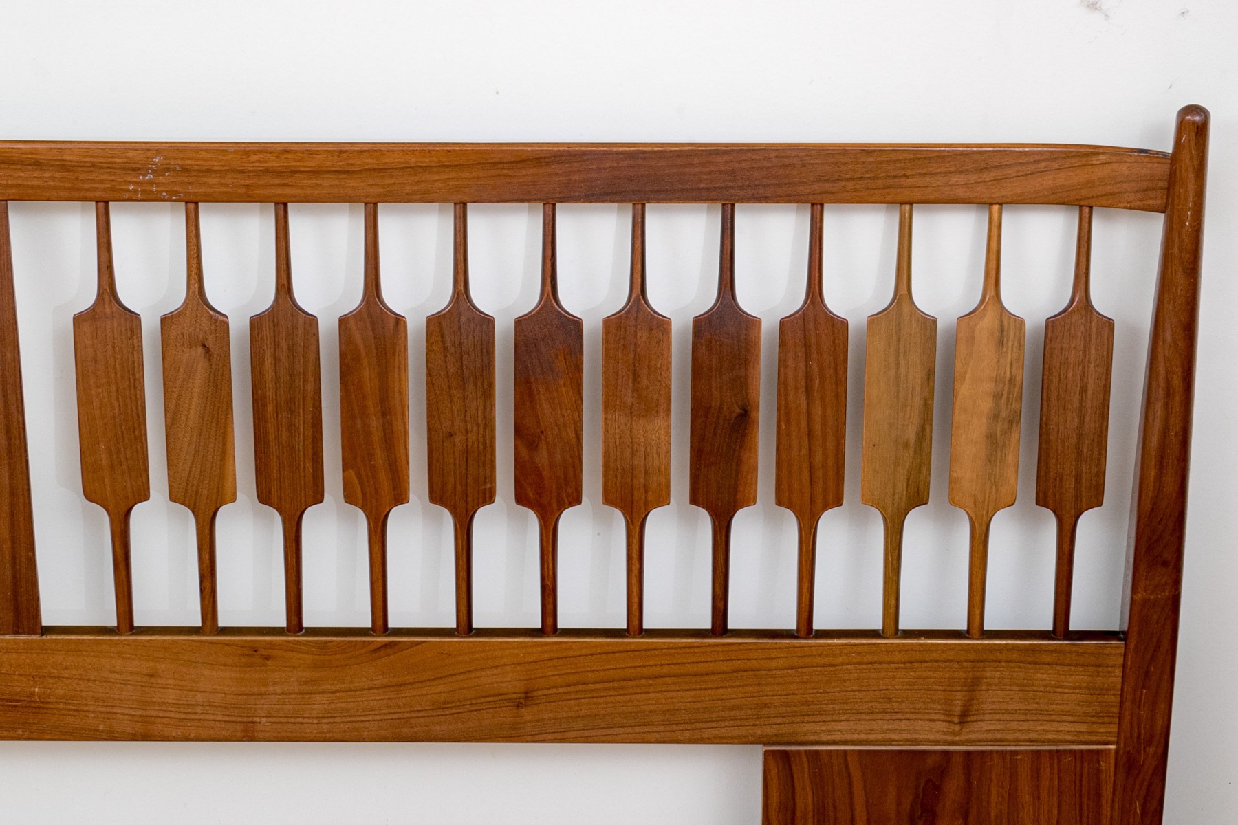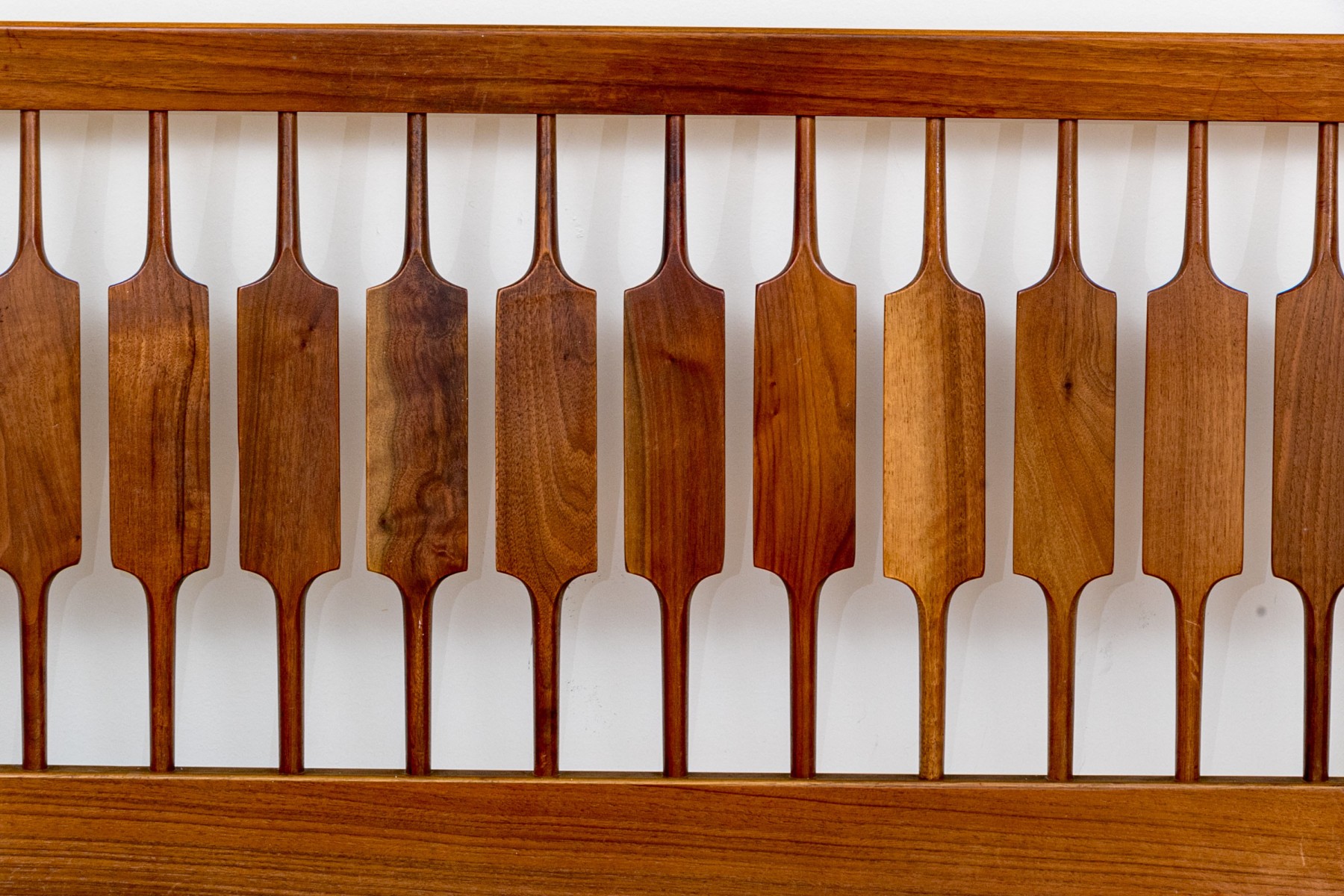 Fabulous mid-century modern carved and finished King sized Walnut headboard.