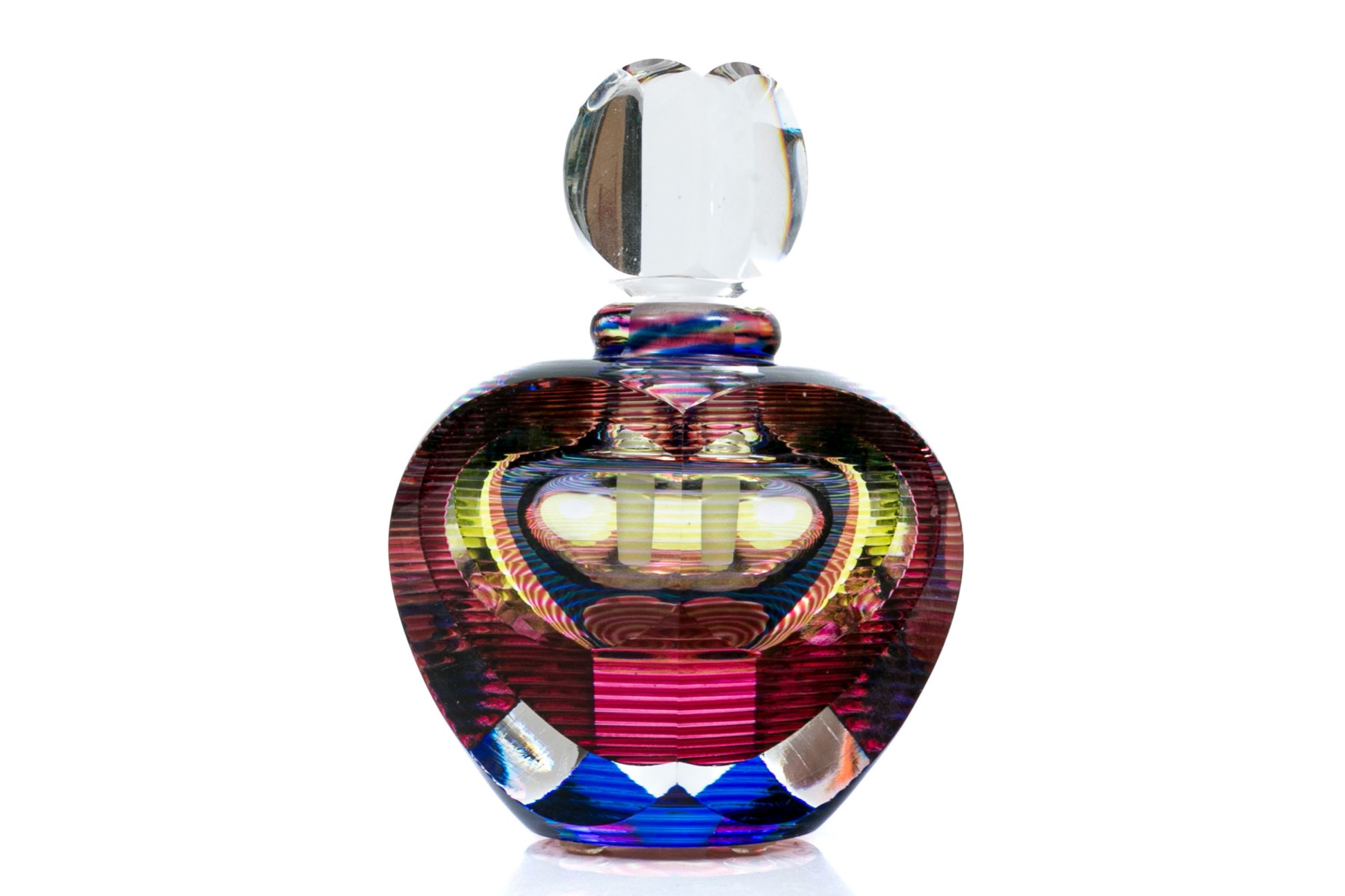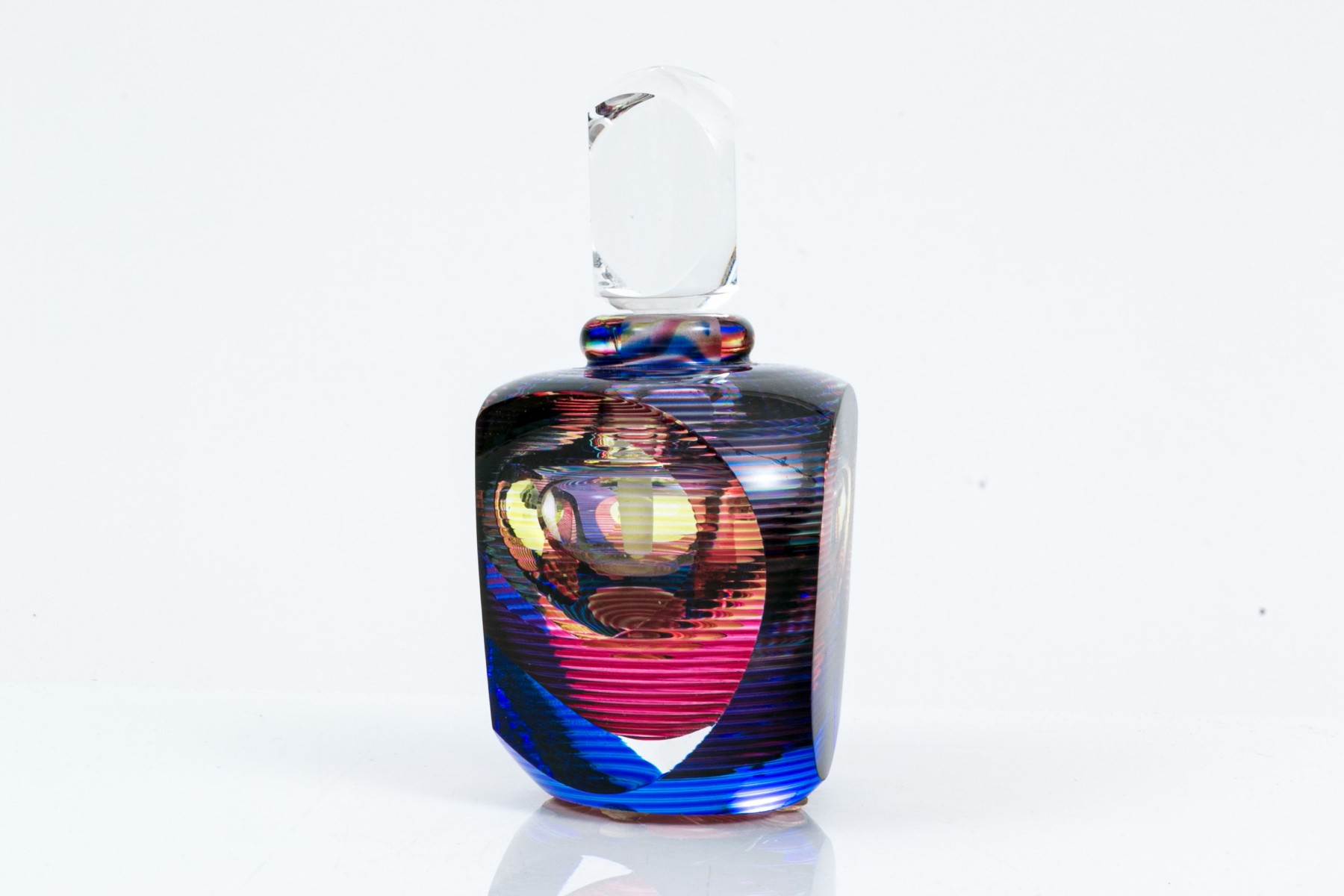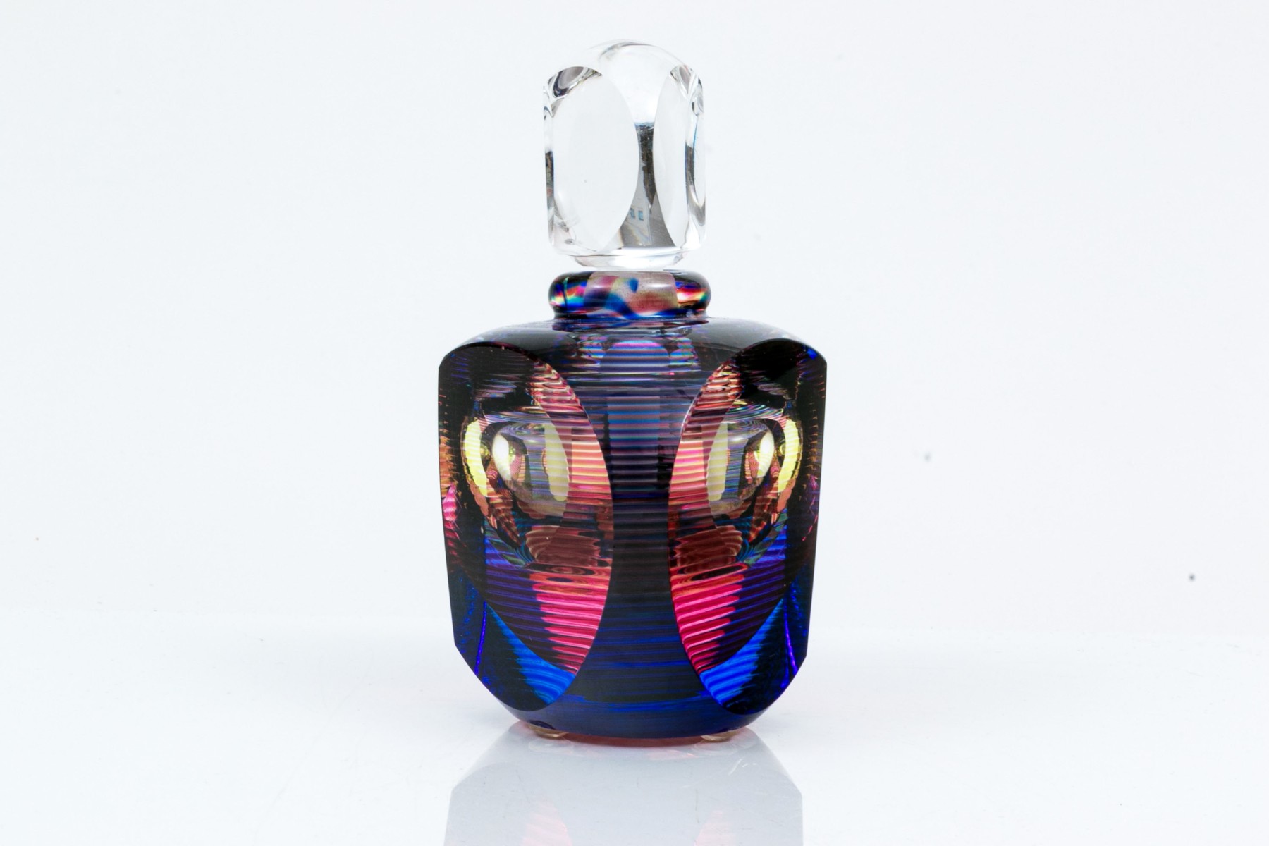 Kit Karbler and Michael Davis stunning art glass perfume bottle, pink and purple tones