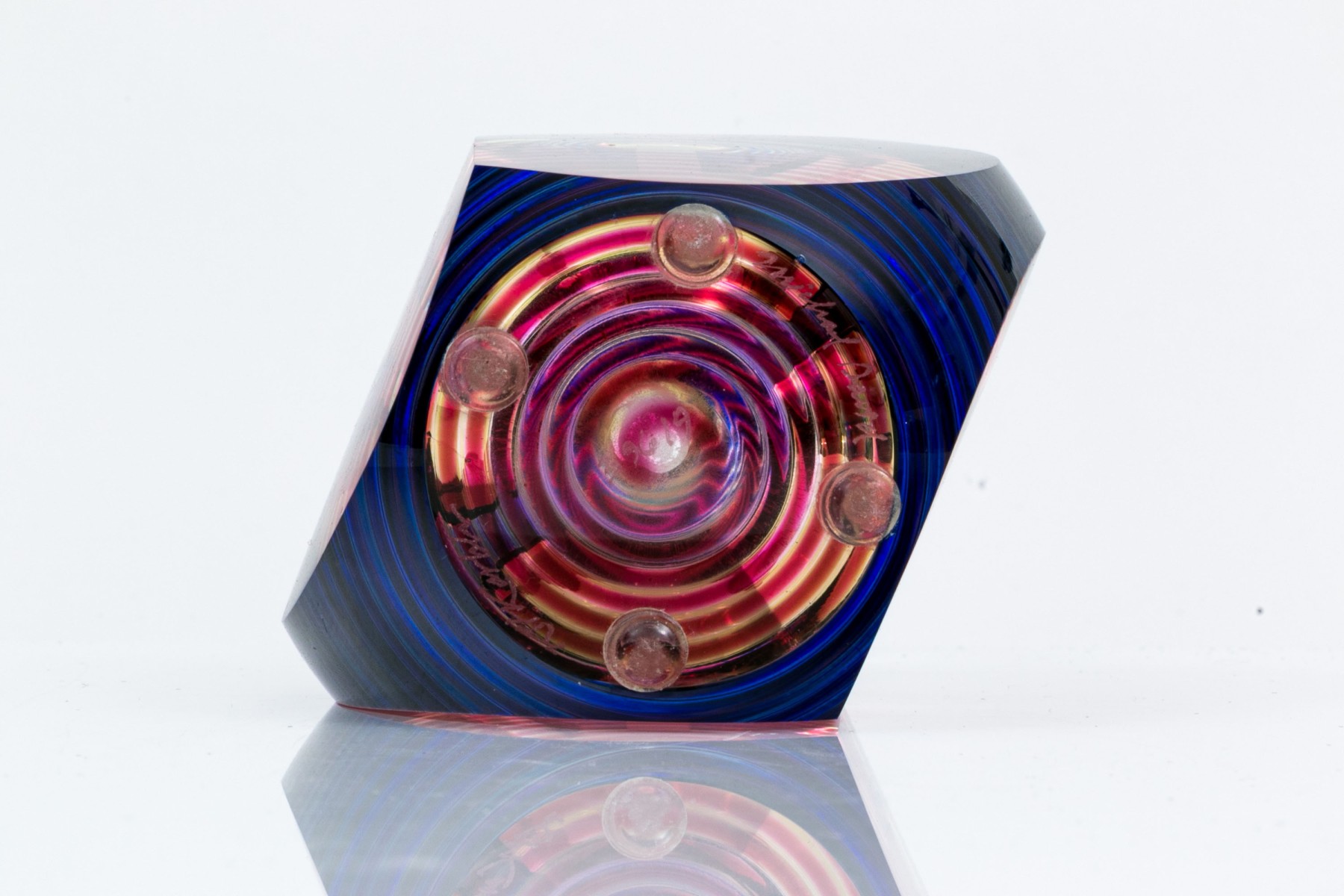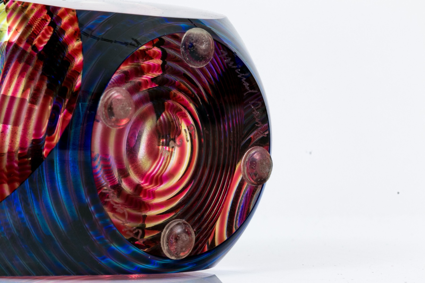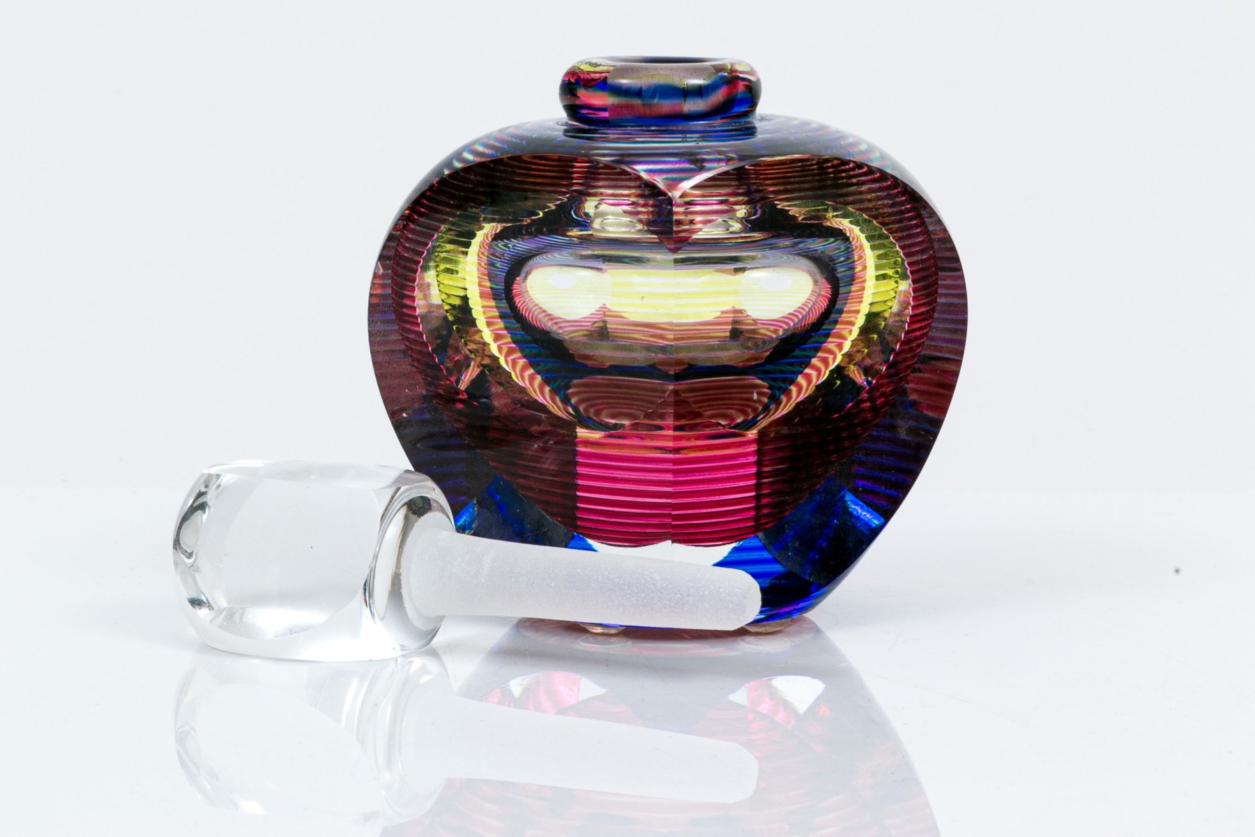 Kit Karbler and Michael Davis stunning art glass perfume bottle, pink and purple tones