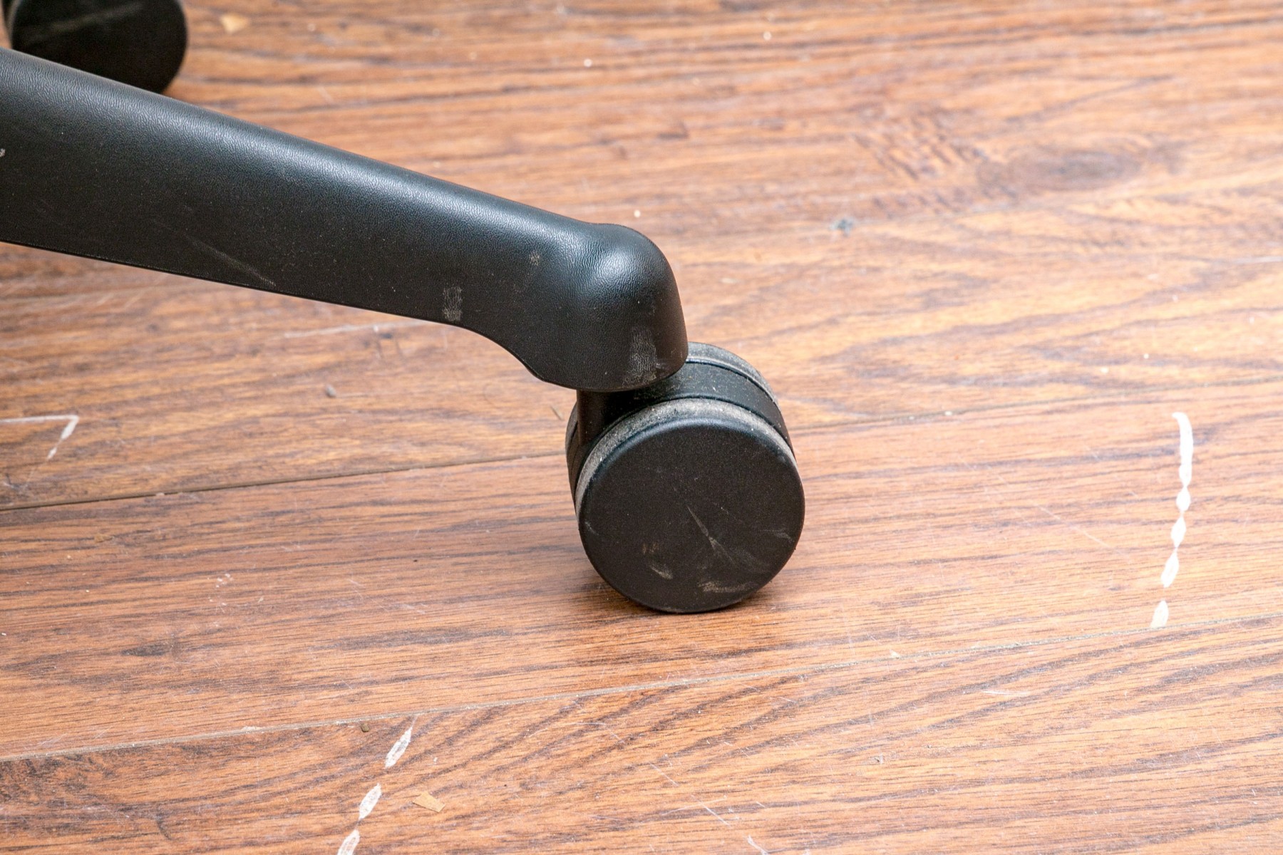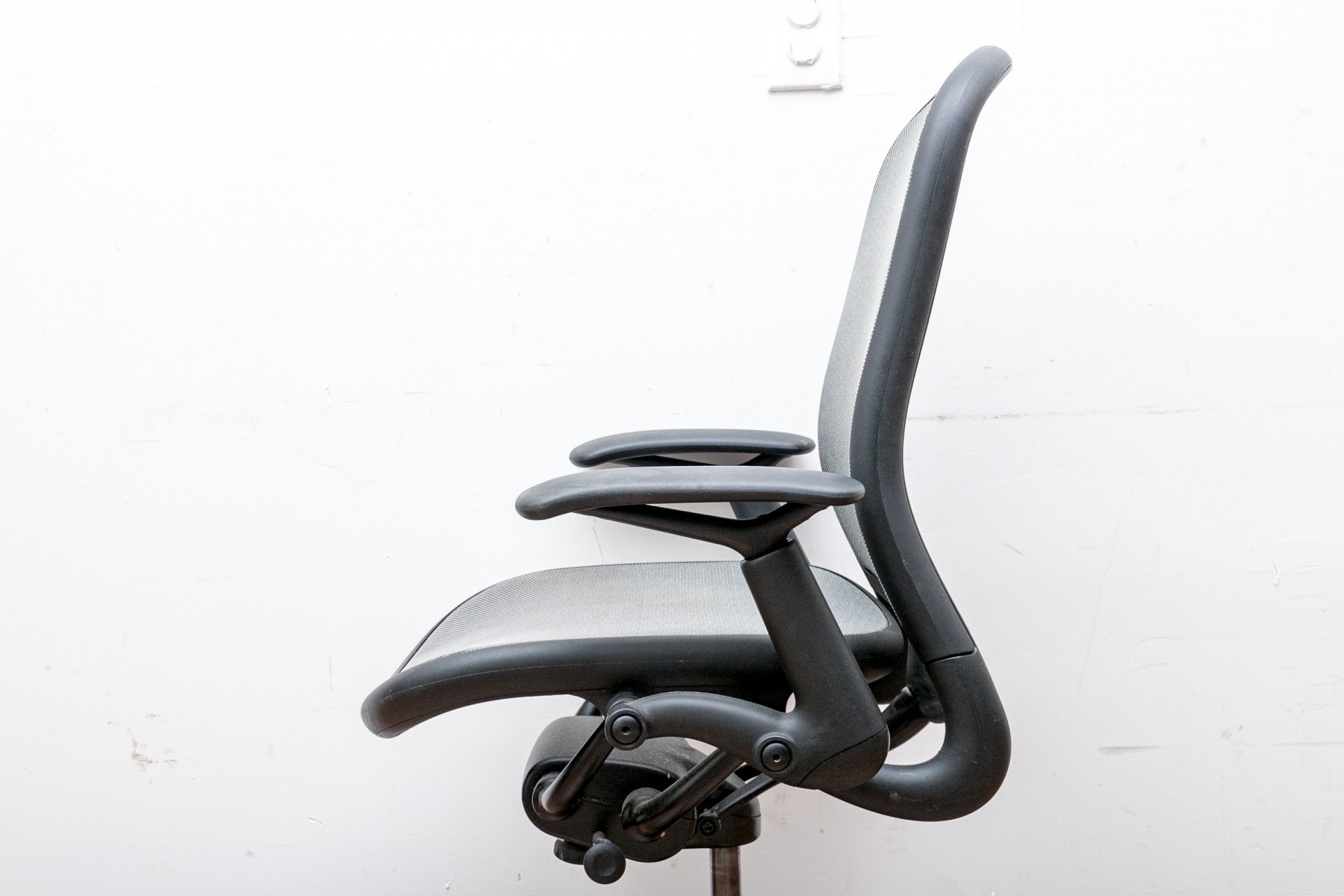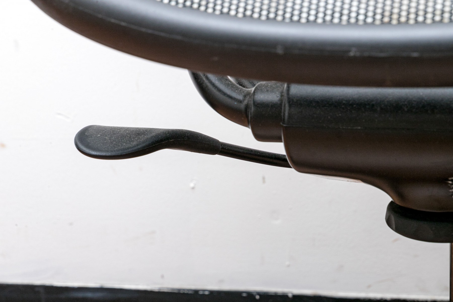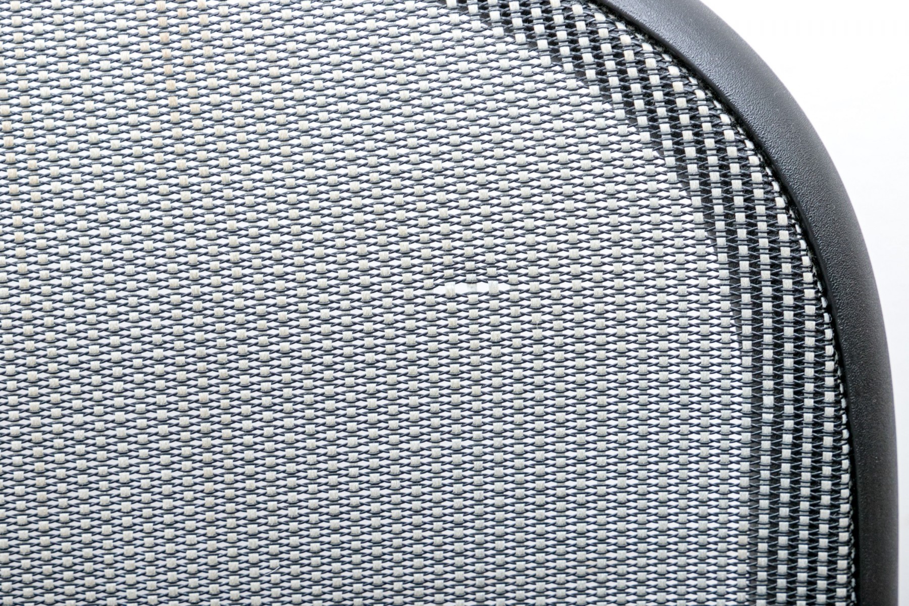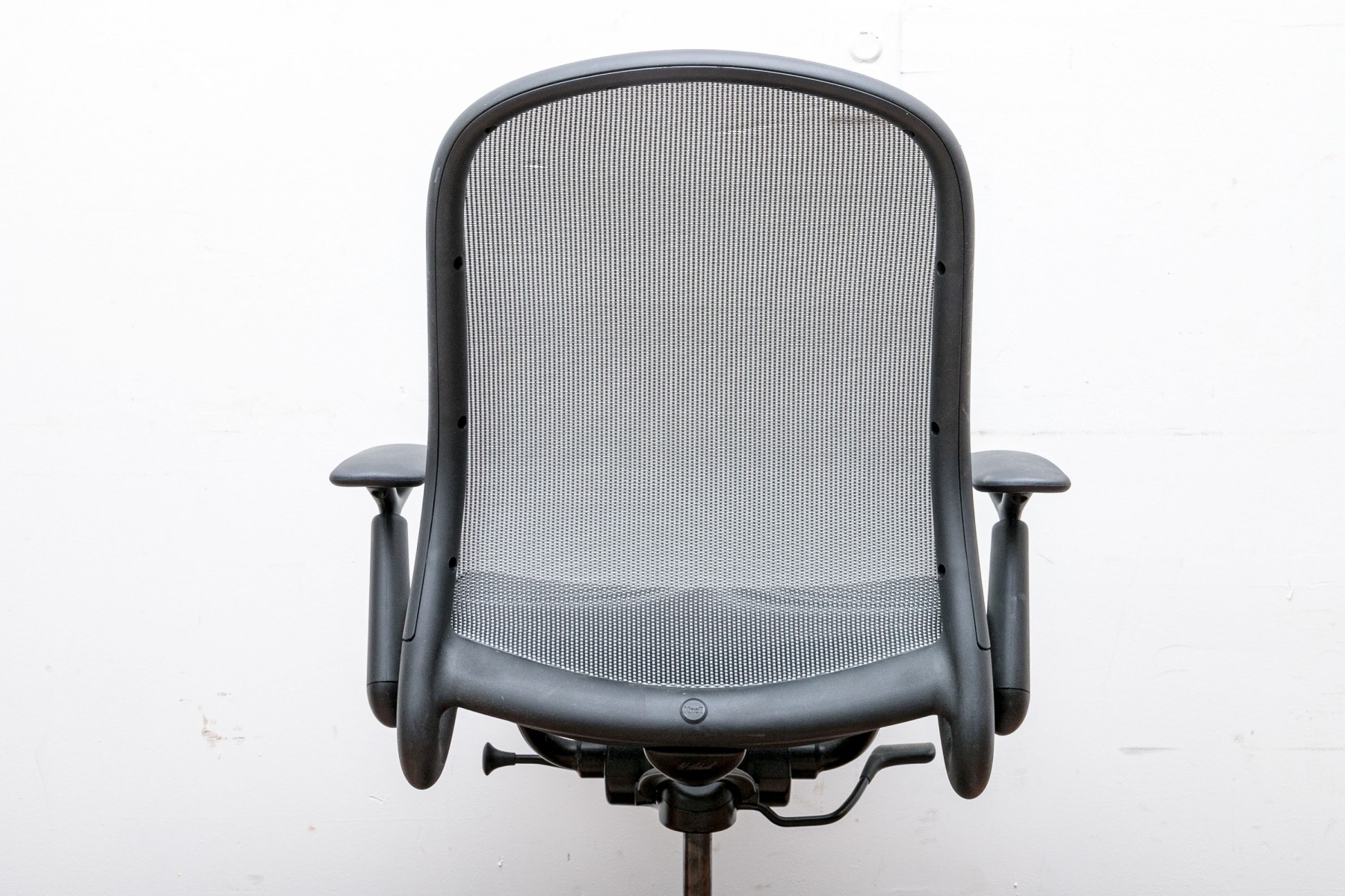 A Knoll swivel office chair in black mesh. Makers mark on the underside.