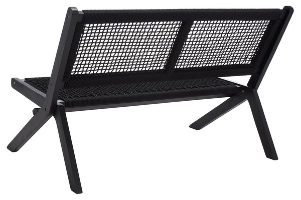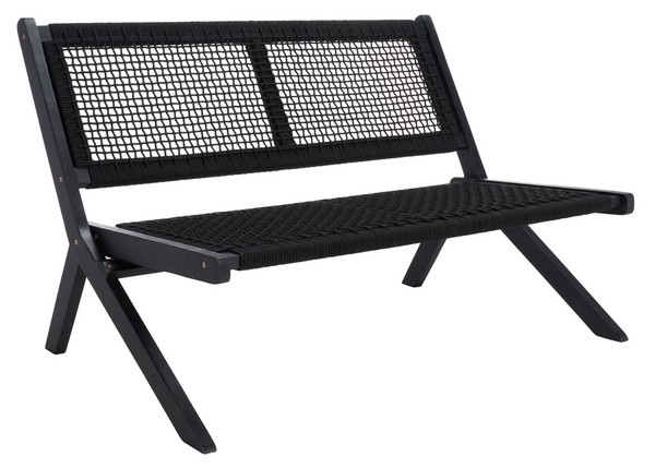 Bring contemporary-chic interior style to the great outdoors with this stunning Kobina Bench. Kobina’s finely sculpted black wood frame and woven matching black rope details are at the epitome of modern style, and designers love the portable versatility of its folding construction.