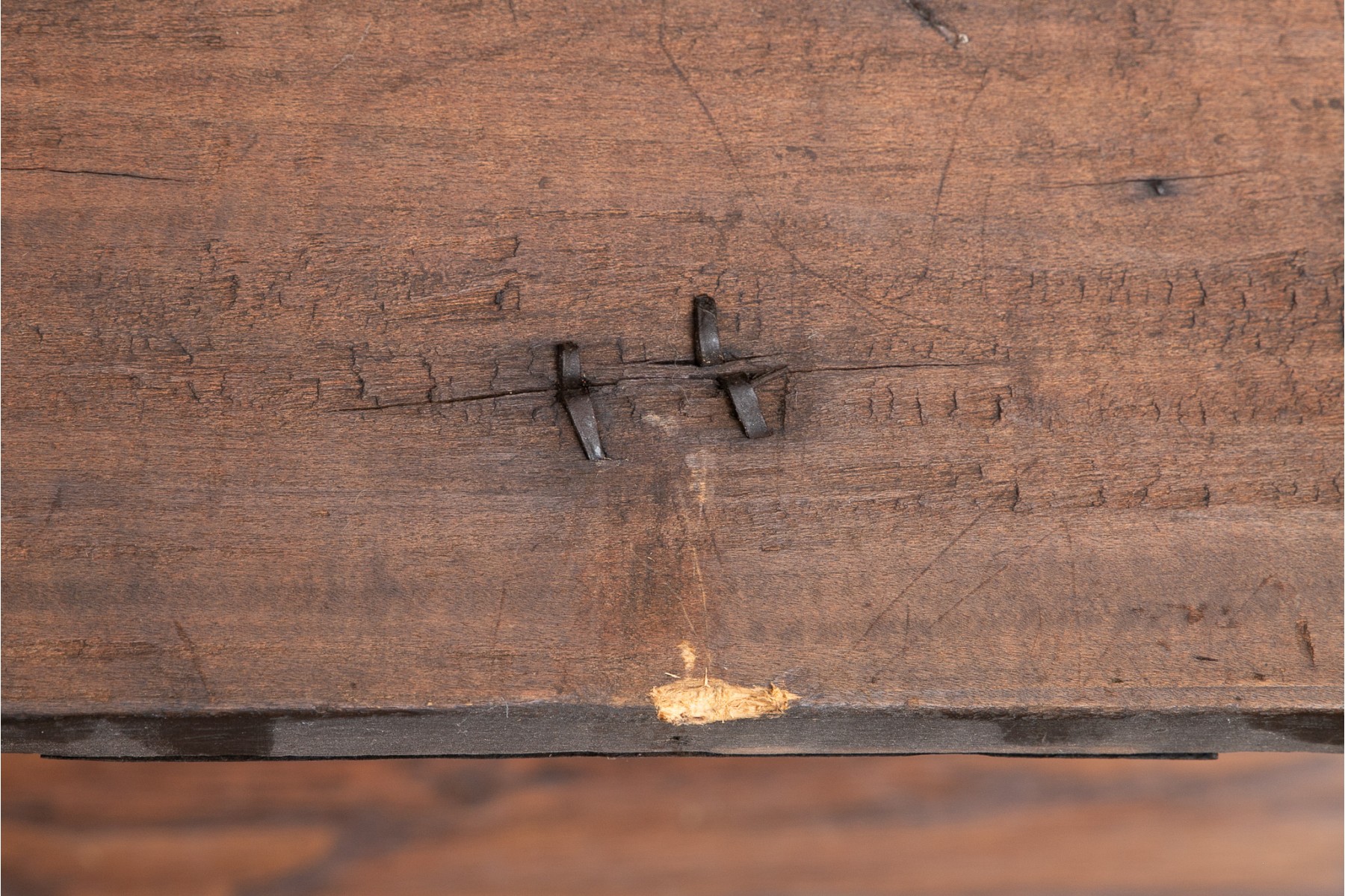 Displays well with expected wear commensurate with age and use, including surface scratches, scuffs, nicks, checking, finish wear, minor wear to the metal hardware. Warping to the top left corner, best seen in the third and second-to-last pictures. Please review the pictures as they are a part of the condition report.