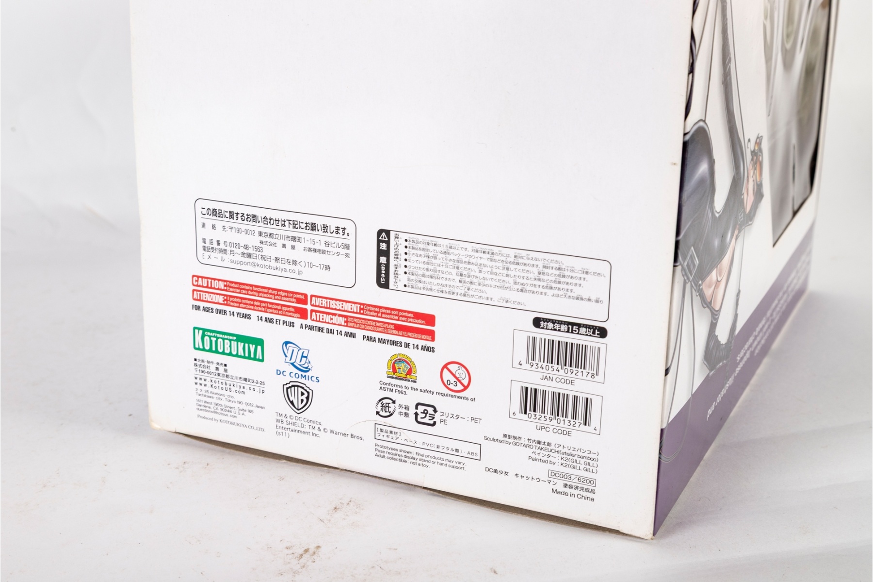 This beautifully sculpted figure showcases Kotobukiya’s signature Bishoujo (beautiful girl) style—combining the allure of anime aesthetics with iconic Western comic book characters. Featuring glossy black paint, detailed goggles, and a dynamic pose, Catwoman stands as one of the most popular entries in the Bishoujo collection.