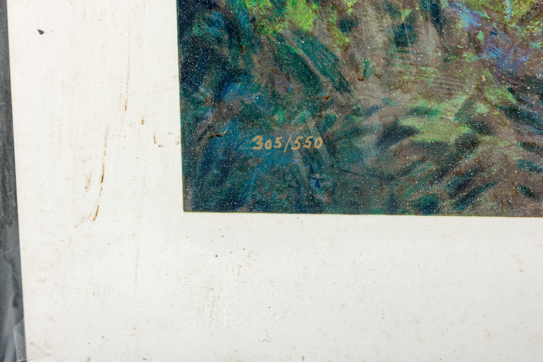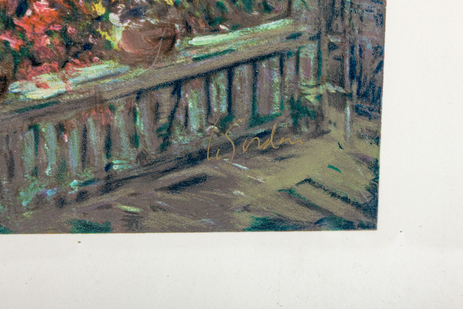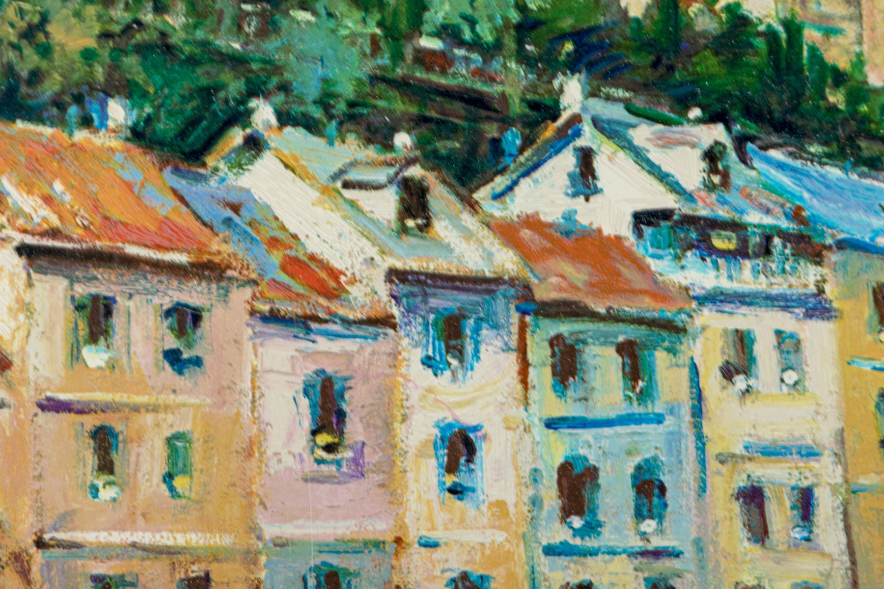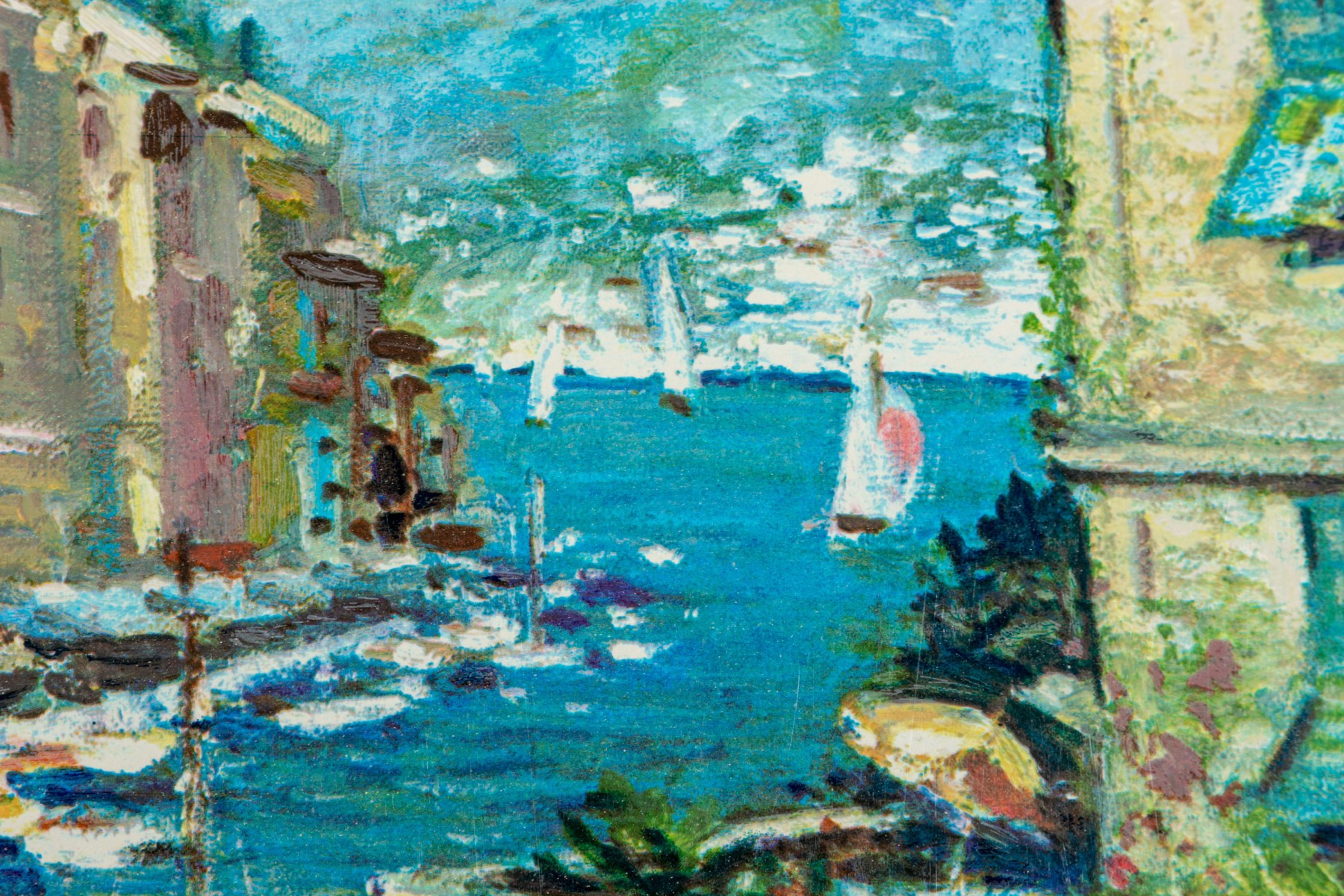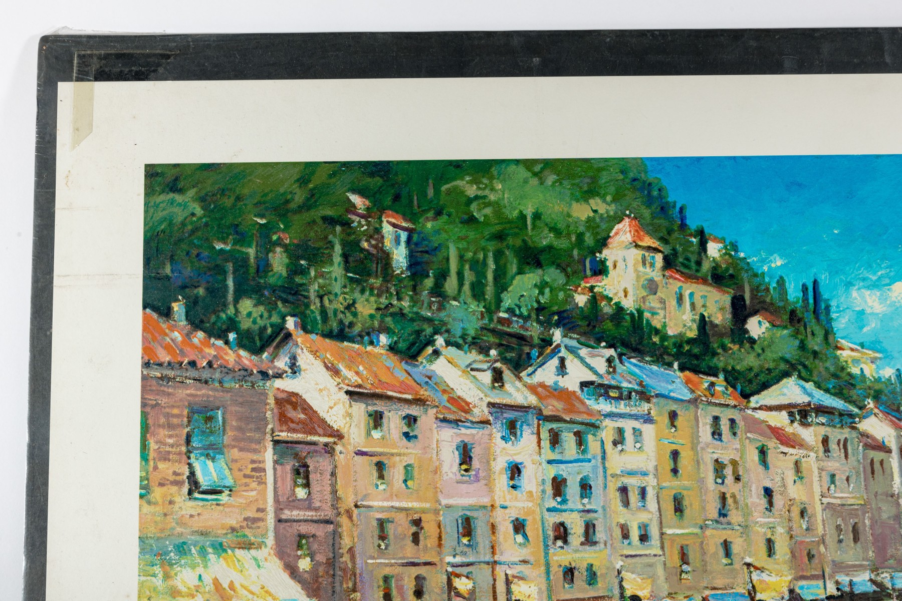 A limited edition serigraph print of impressionist artist L. Gordon's "Portifino", which features a beautiful sightline of Portifino, italy's harbor. Edition 305/550. The print is contained within a protective plastic sleeve.