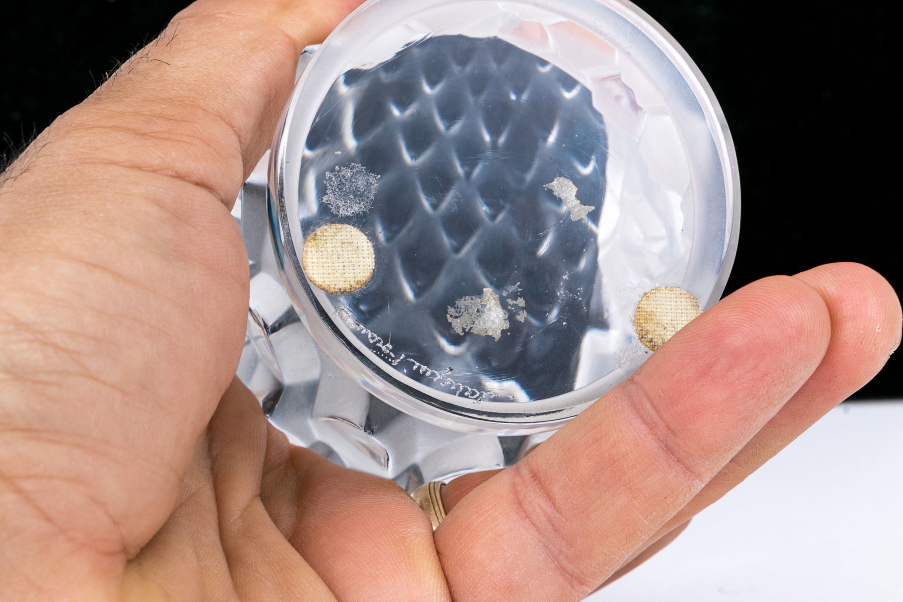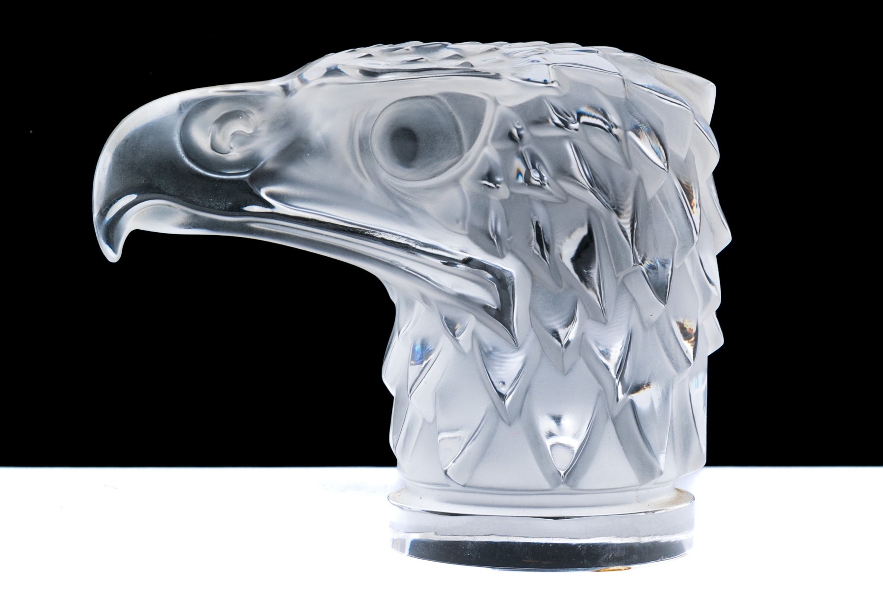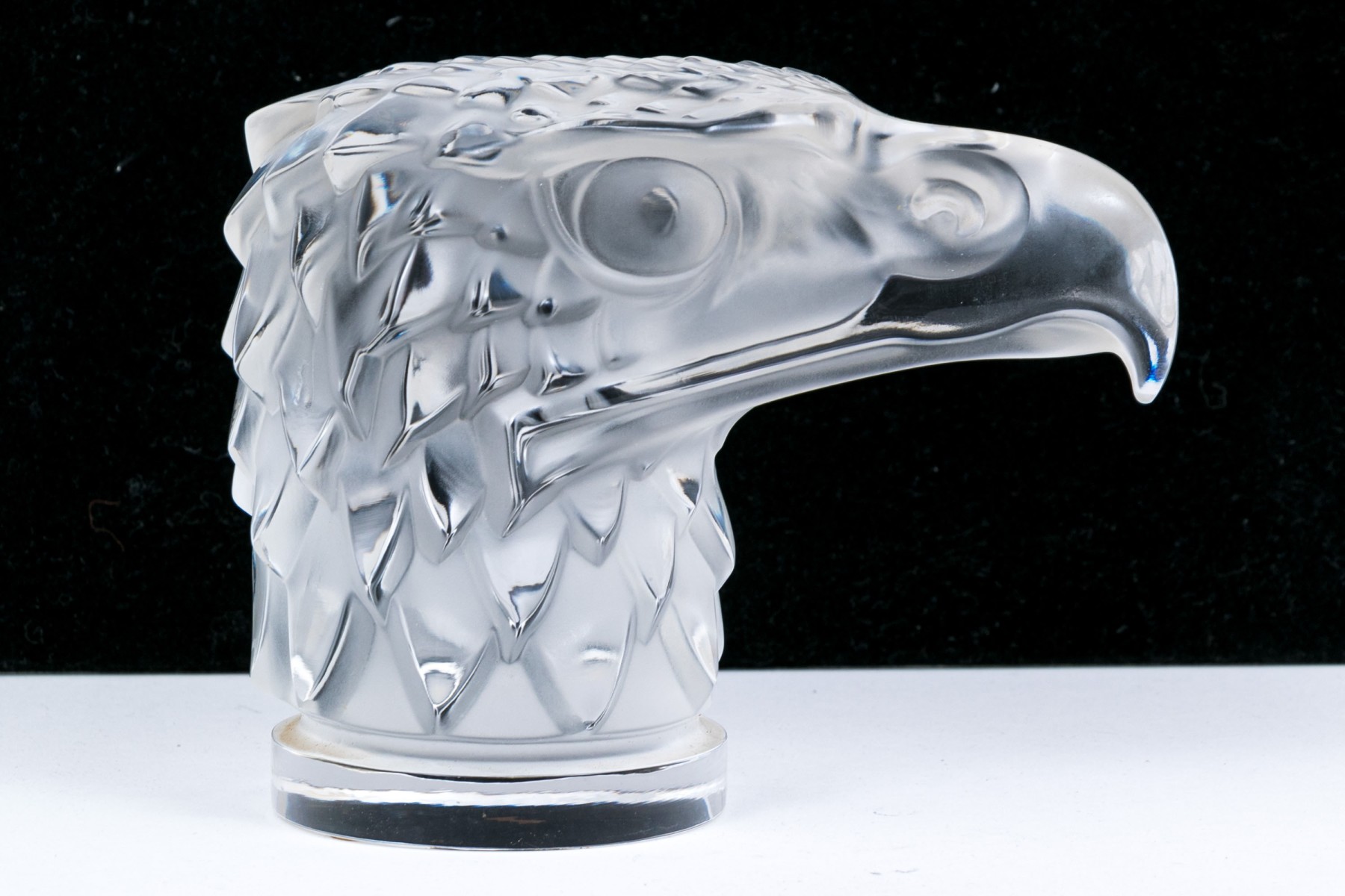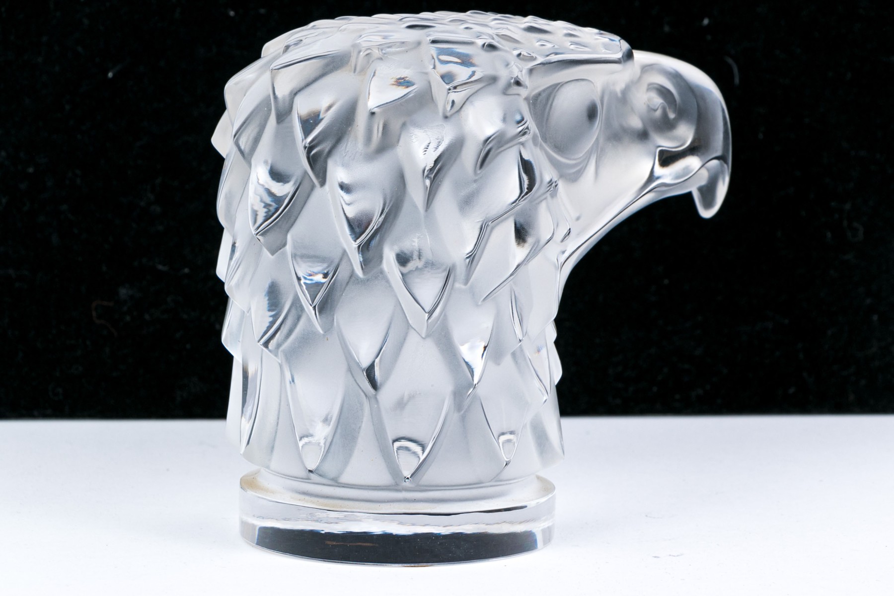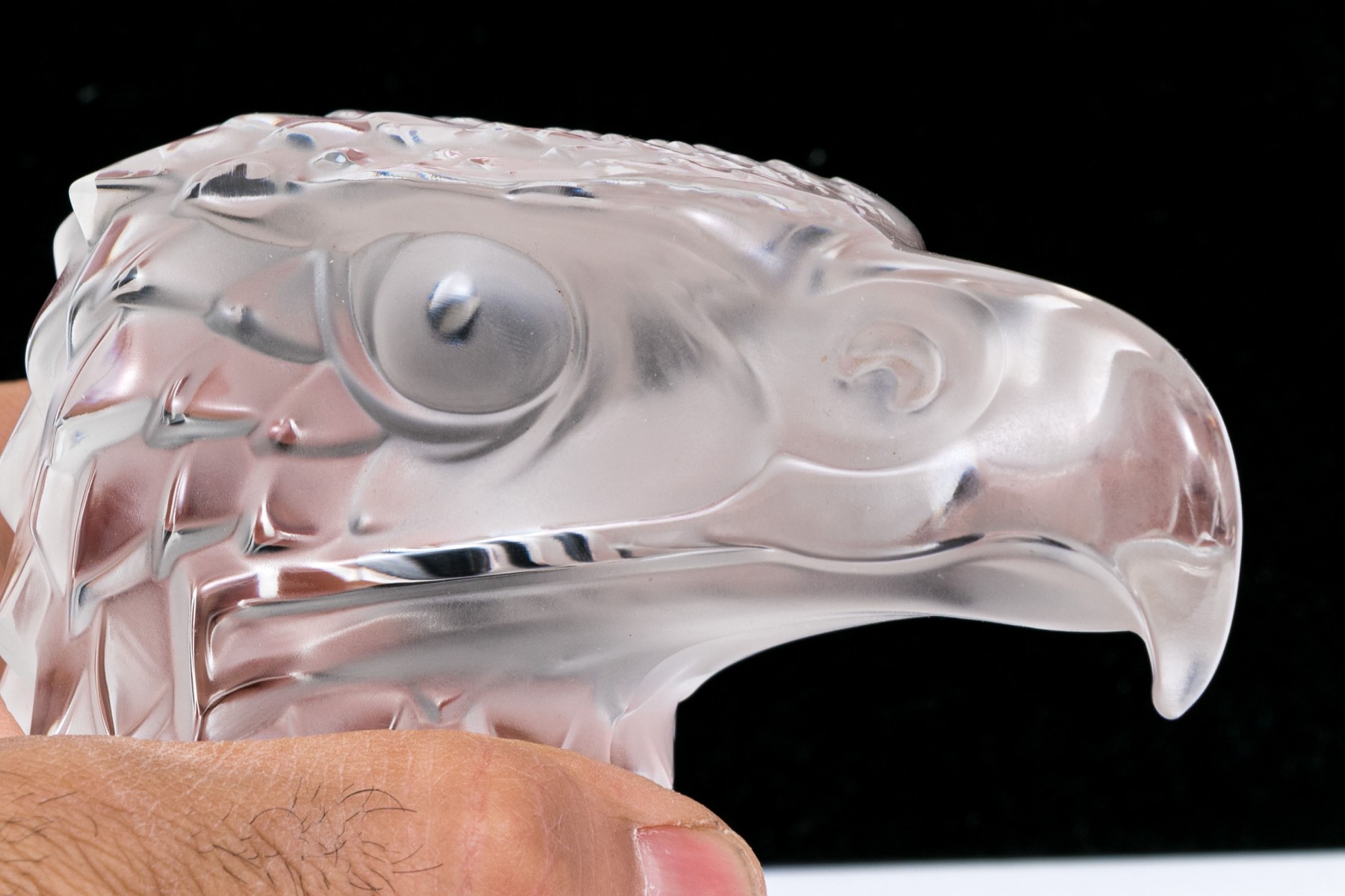 Lalique crystal glass eagle head. Frosted and polished finishes.
