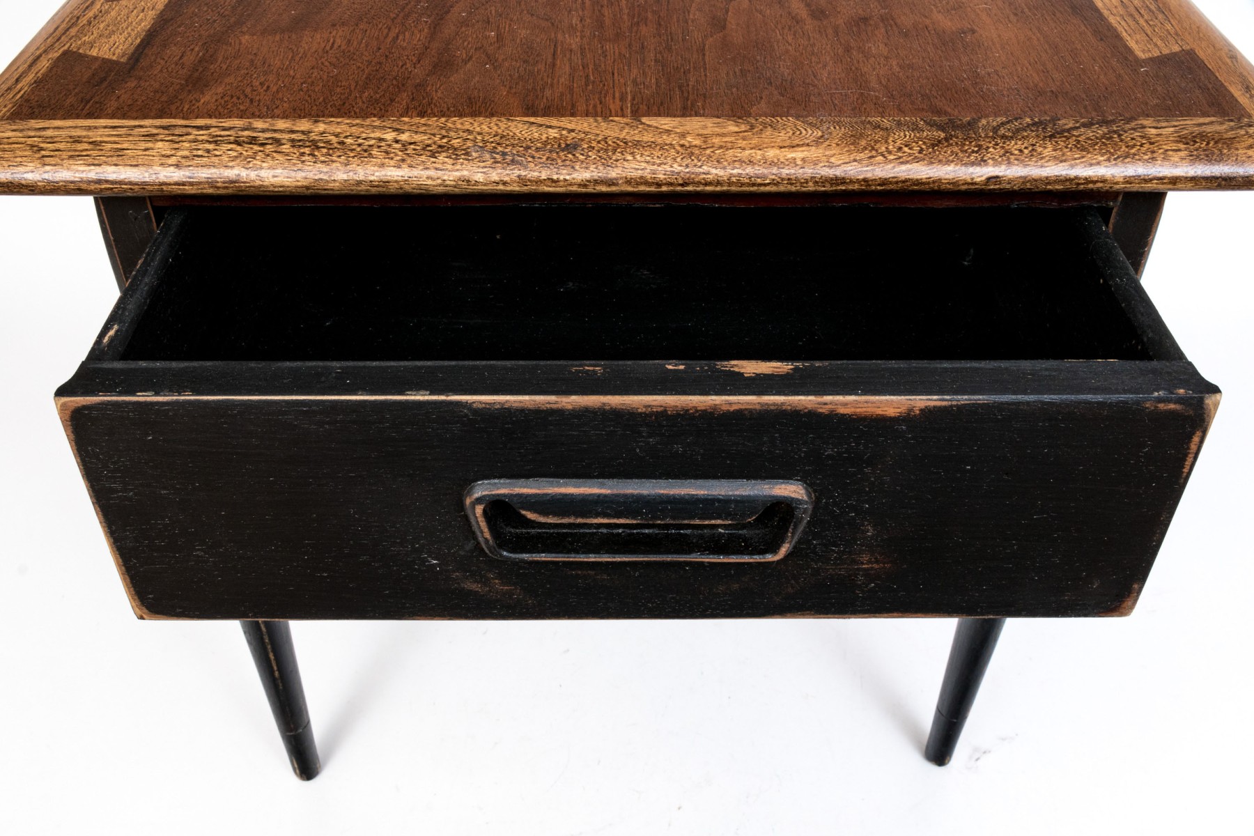 Lane vintage brown wood and black distressed painted Acclaim end table