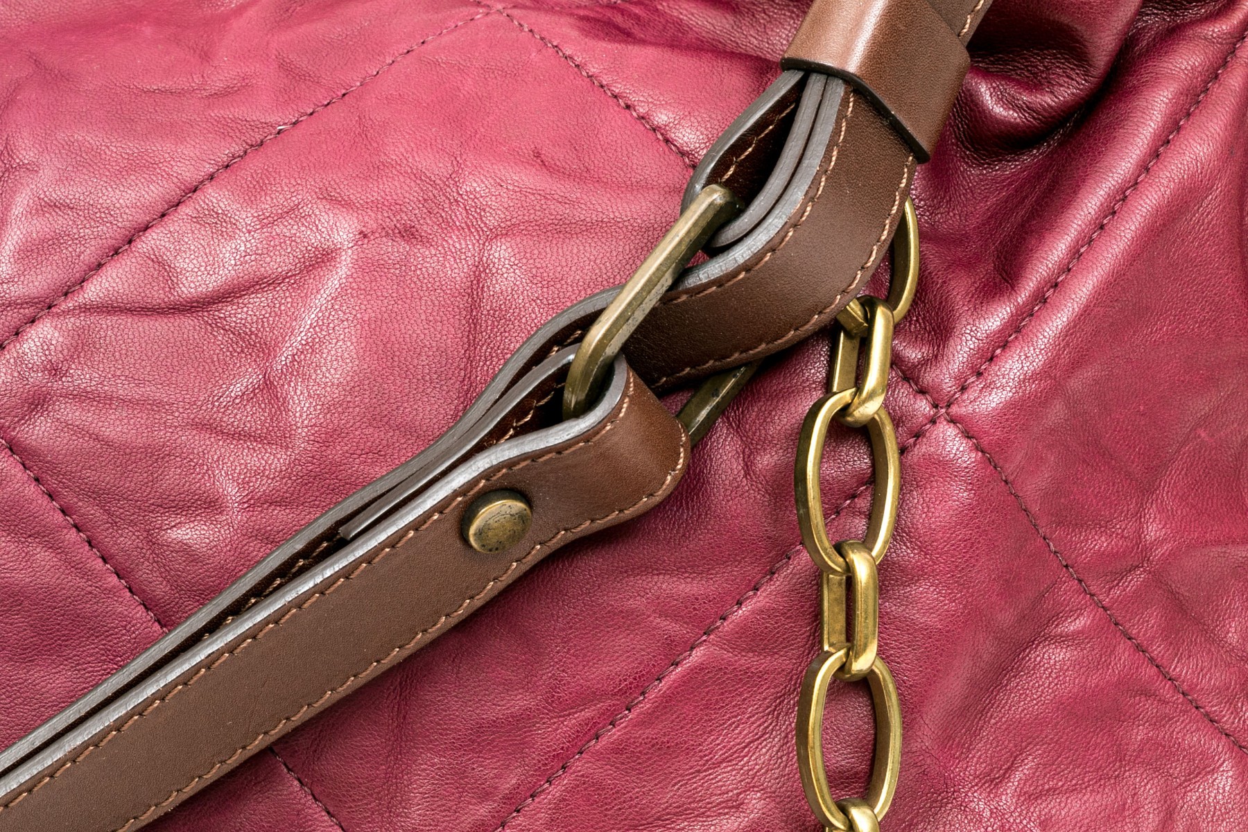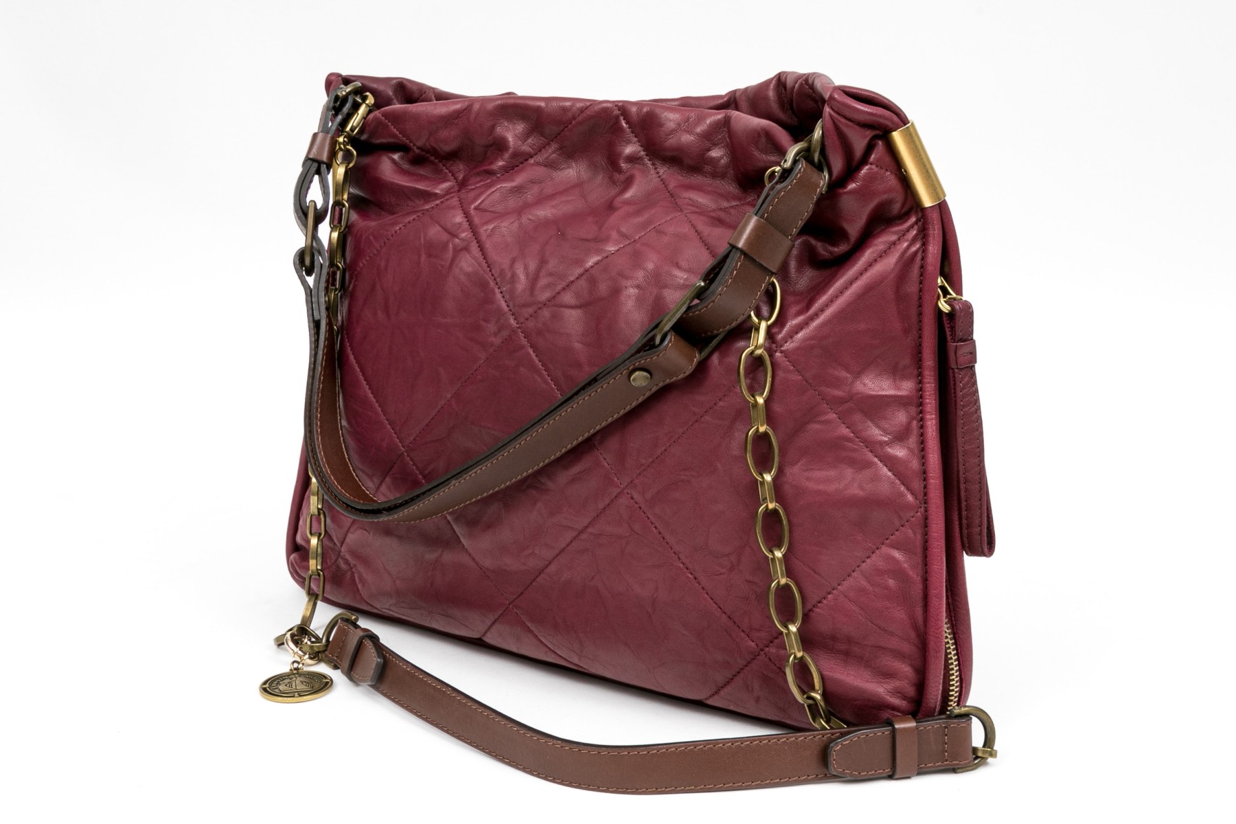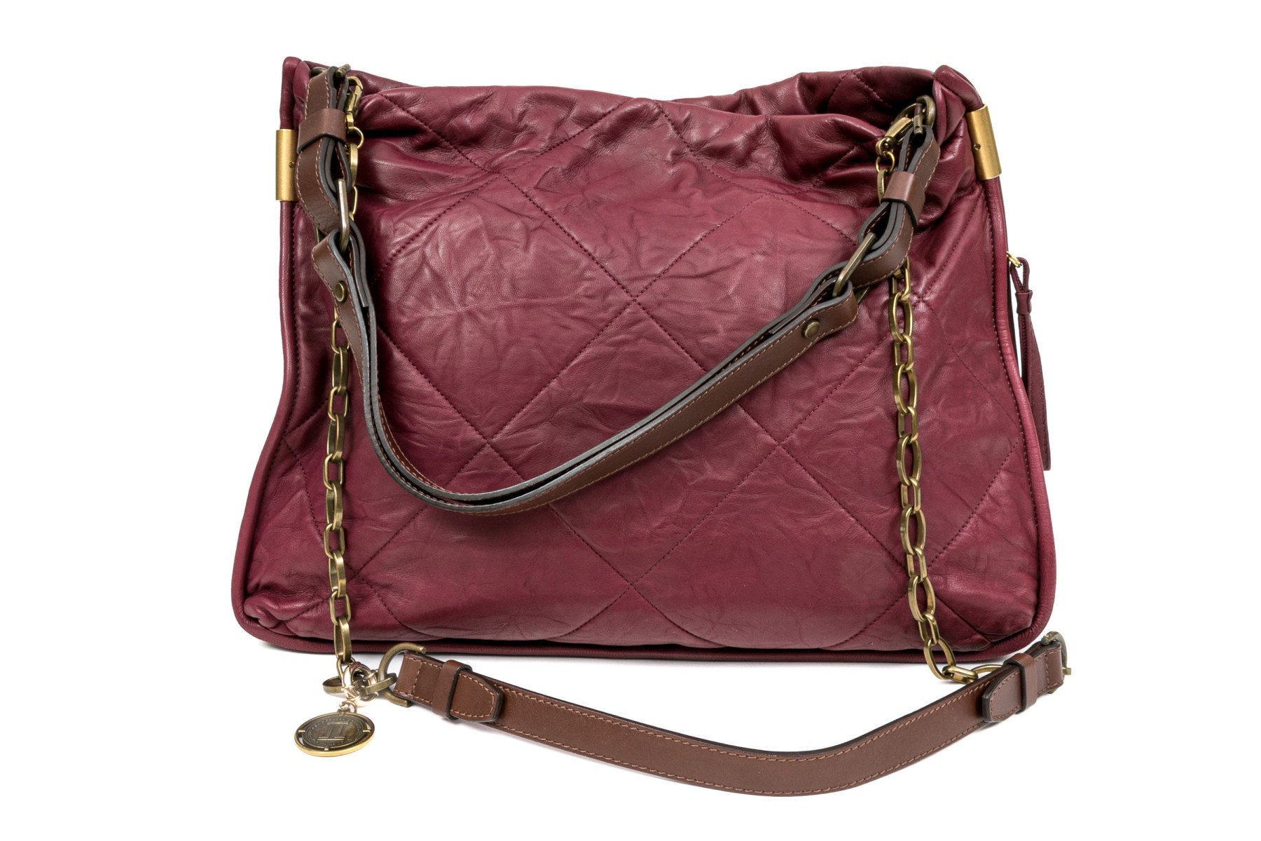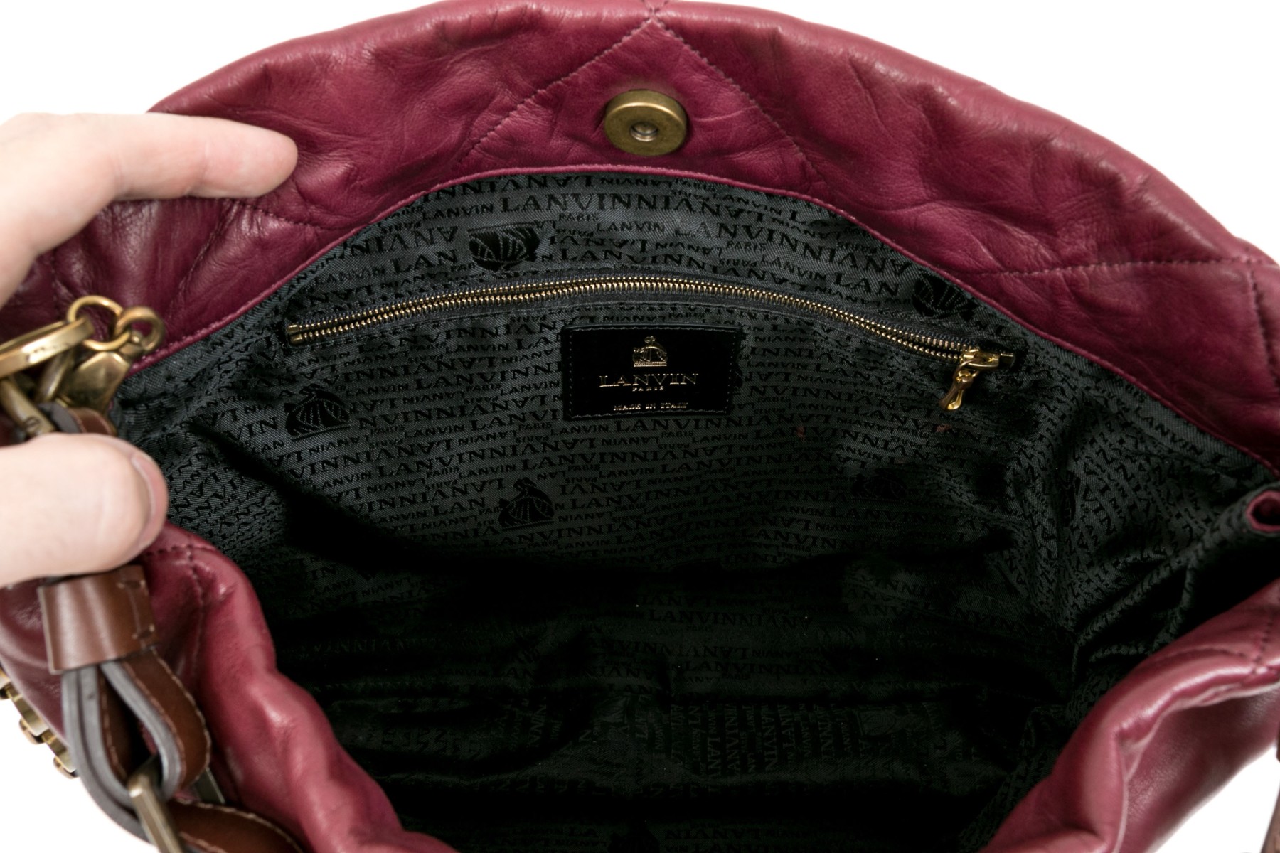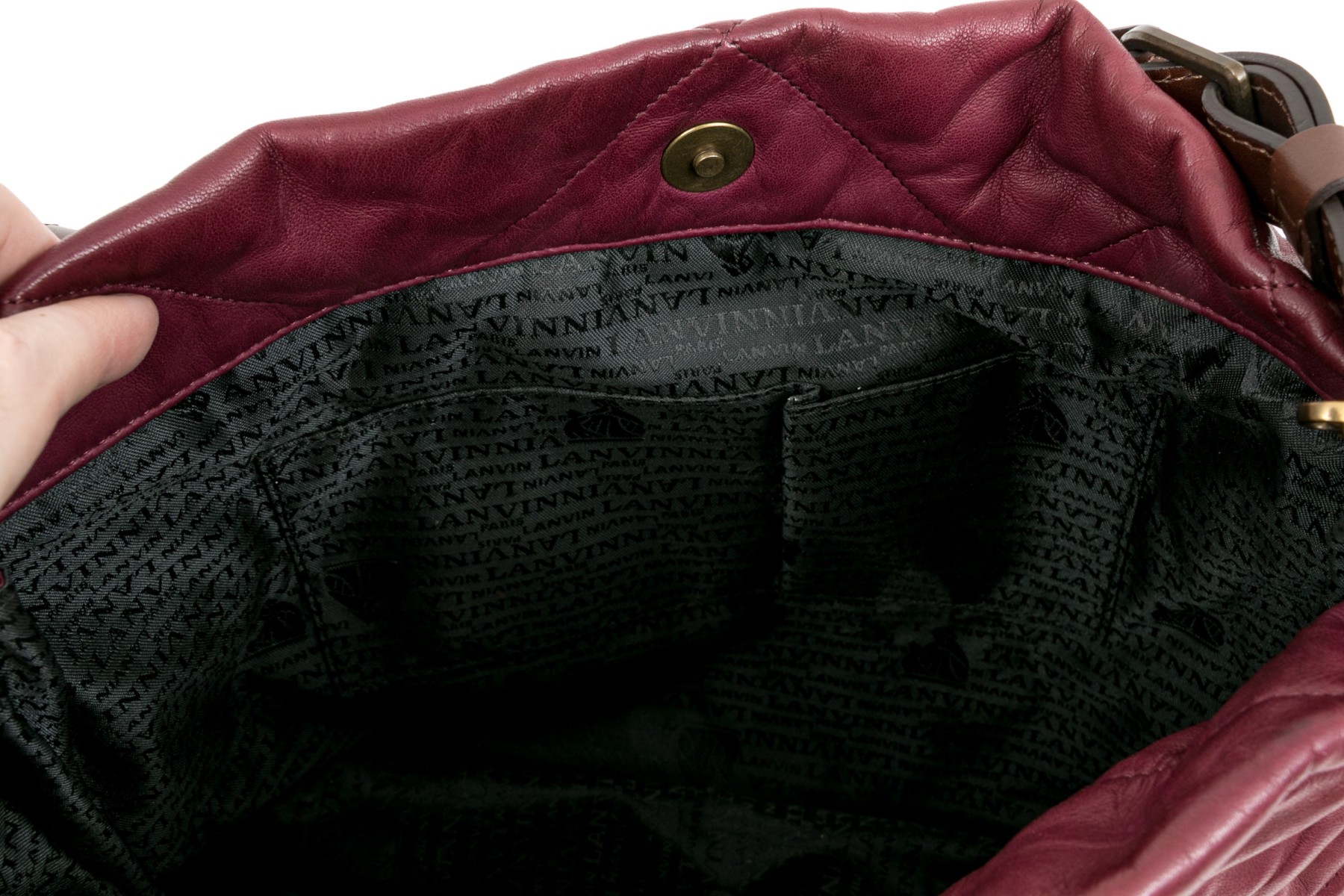 Lanvin beautiful large quilted burgundy leather bag, zip bottom, top handle and shoulder strap