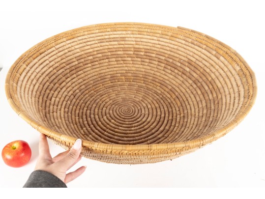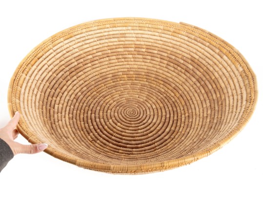 A woven rattan bowl spanning a whopping 27" in diameter.